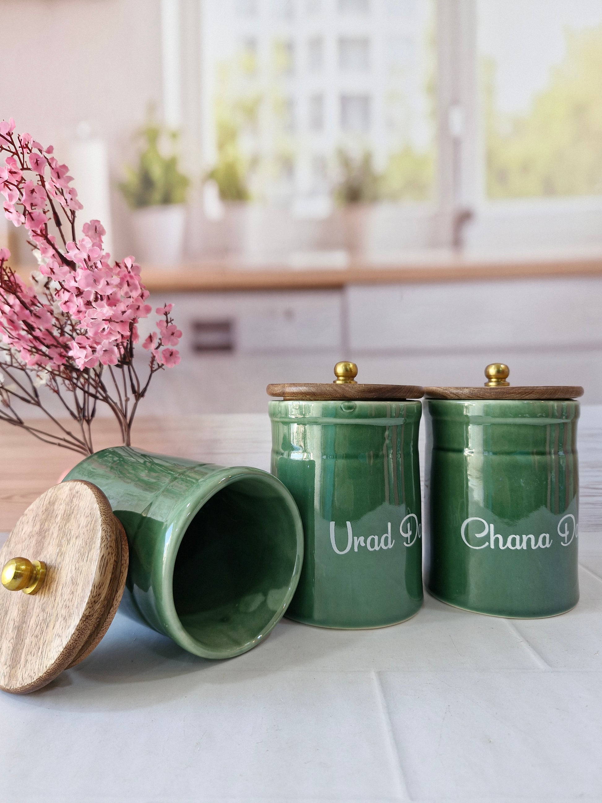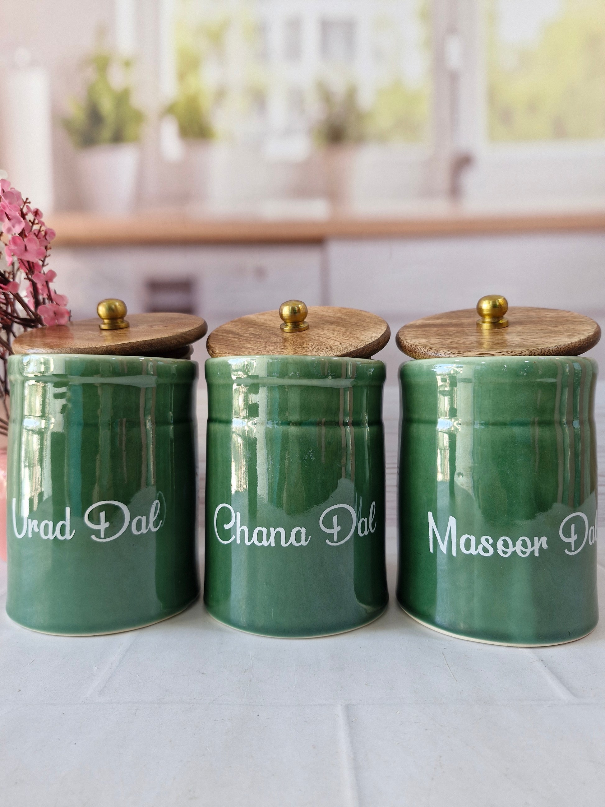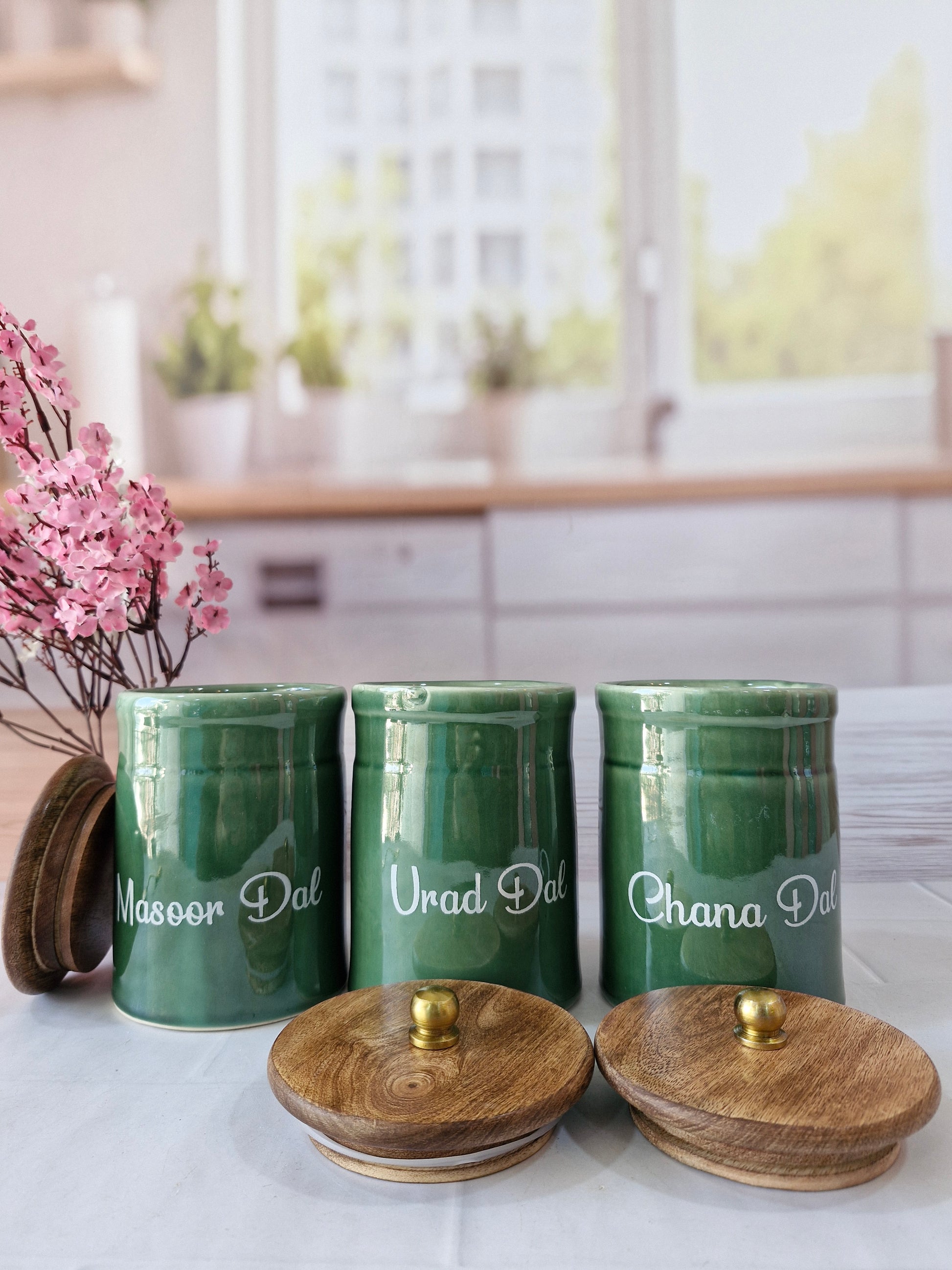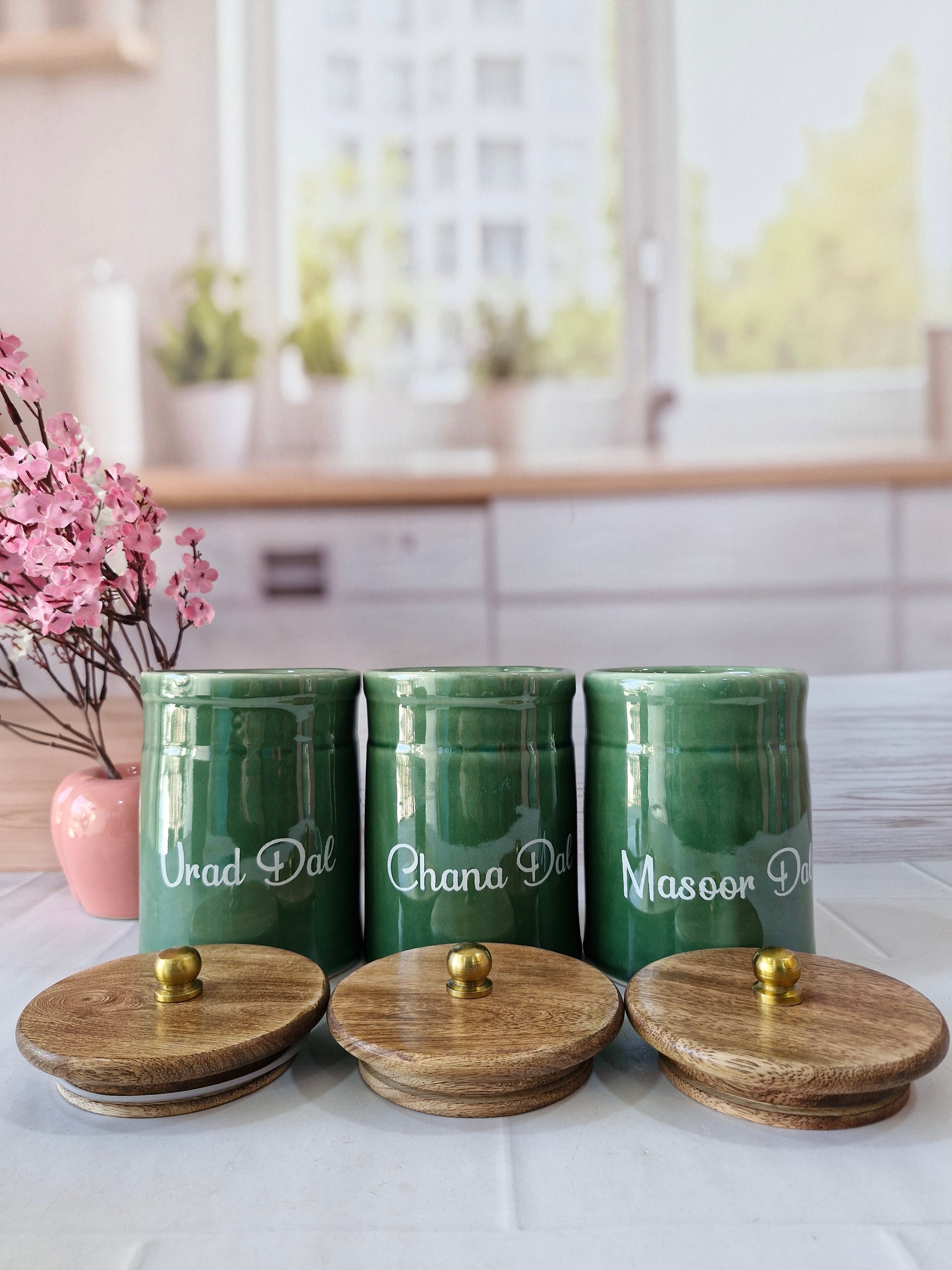 Dals collection Spice Delight Airtight Ceramic Container (1kg) with wooden Lid