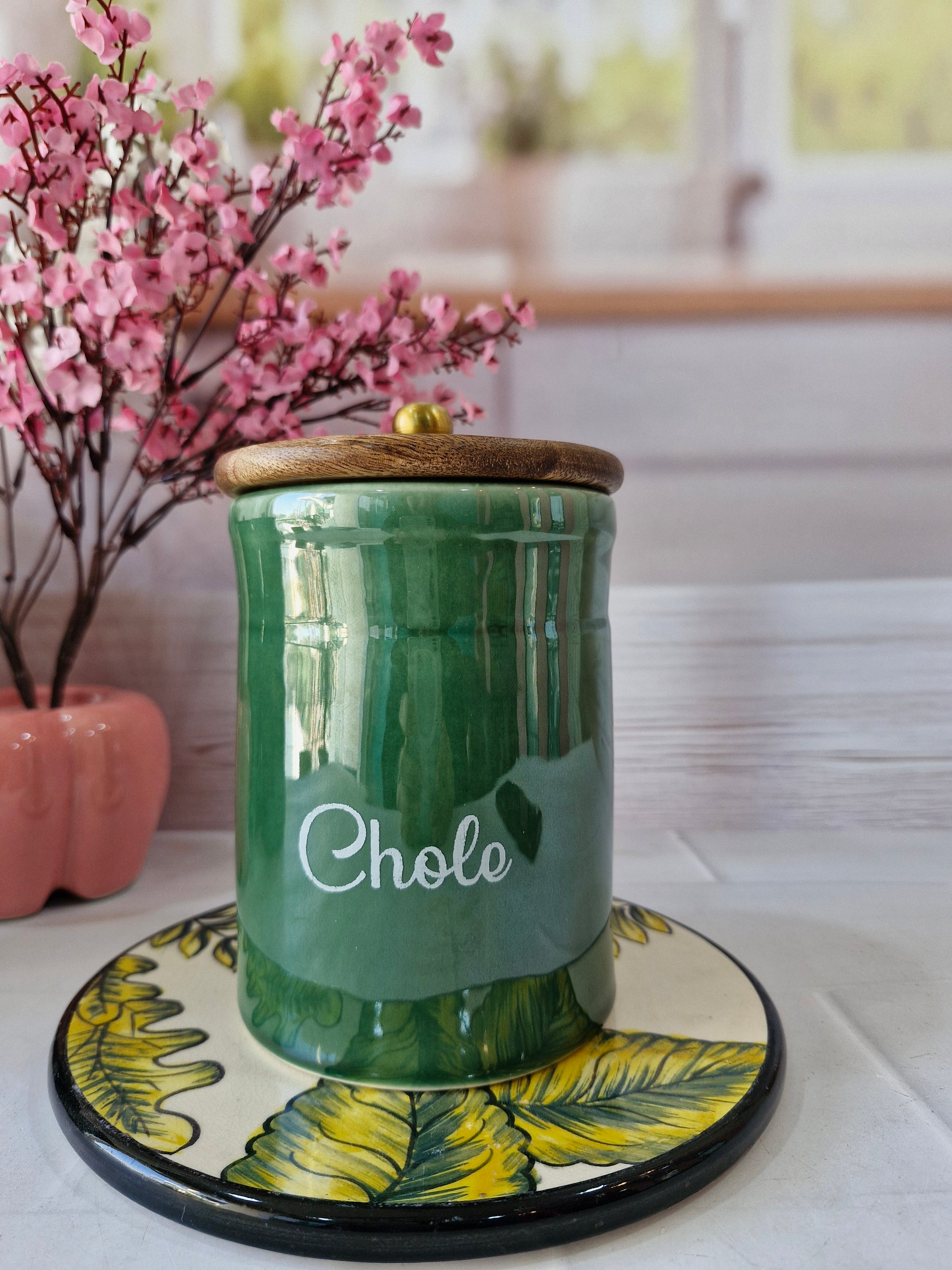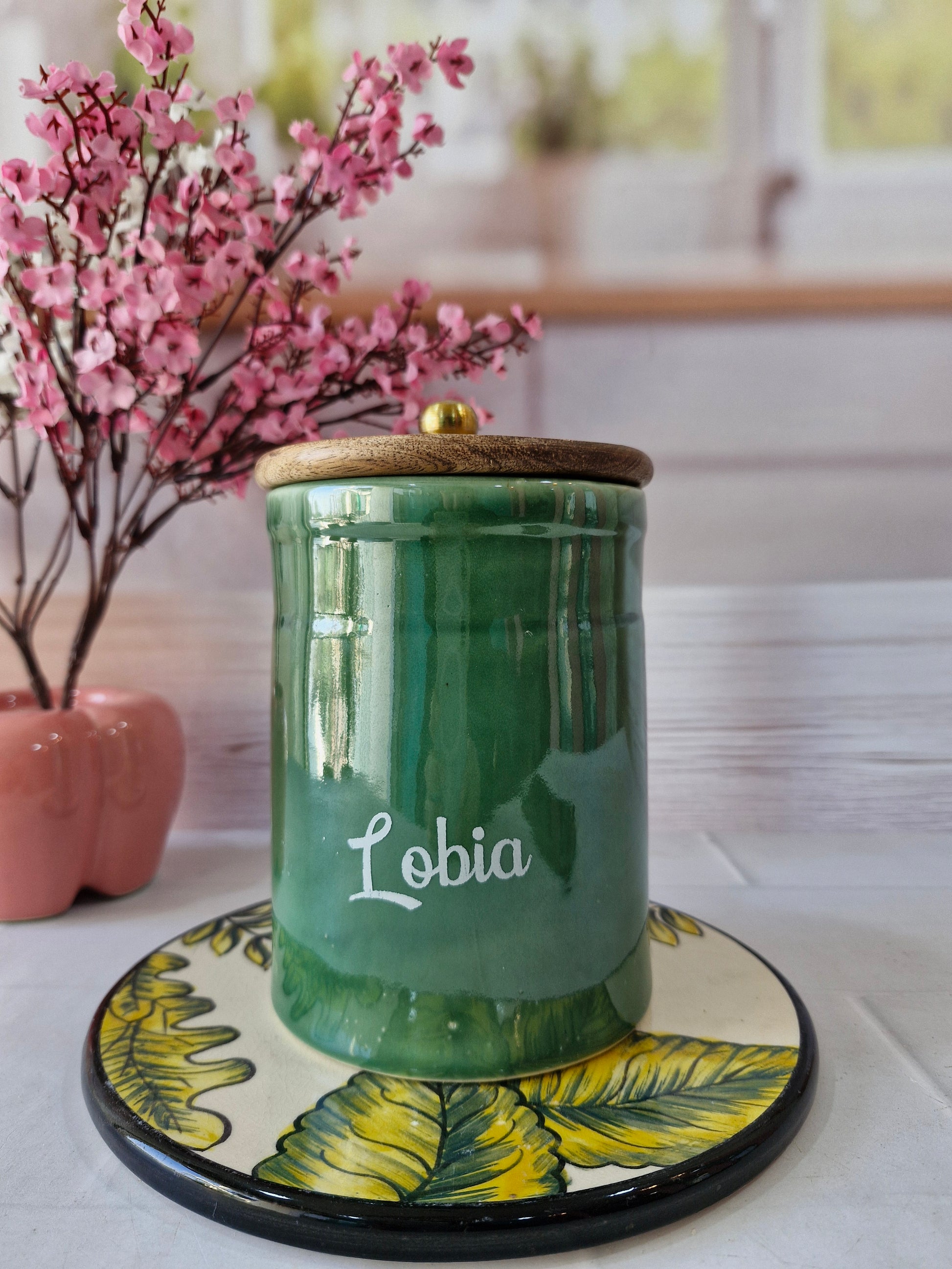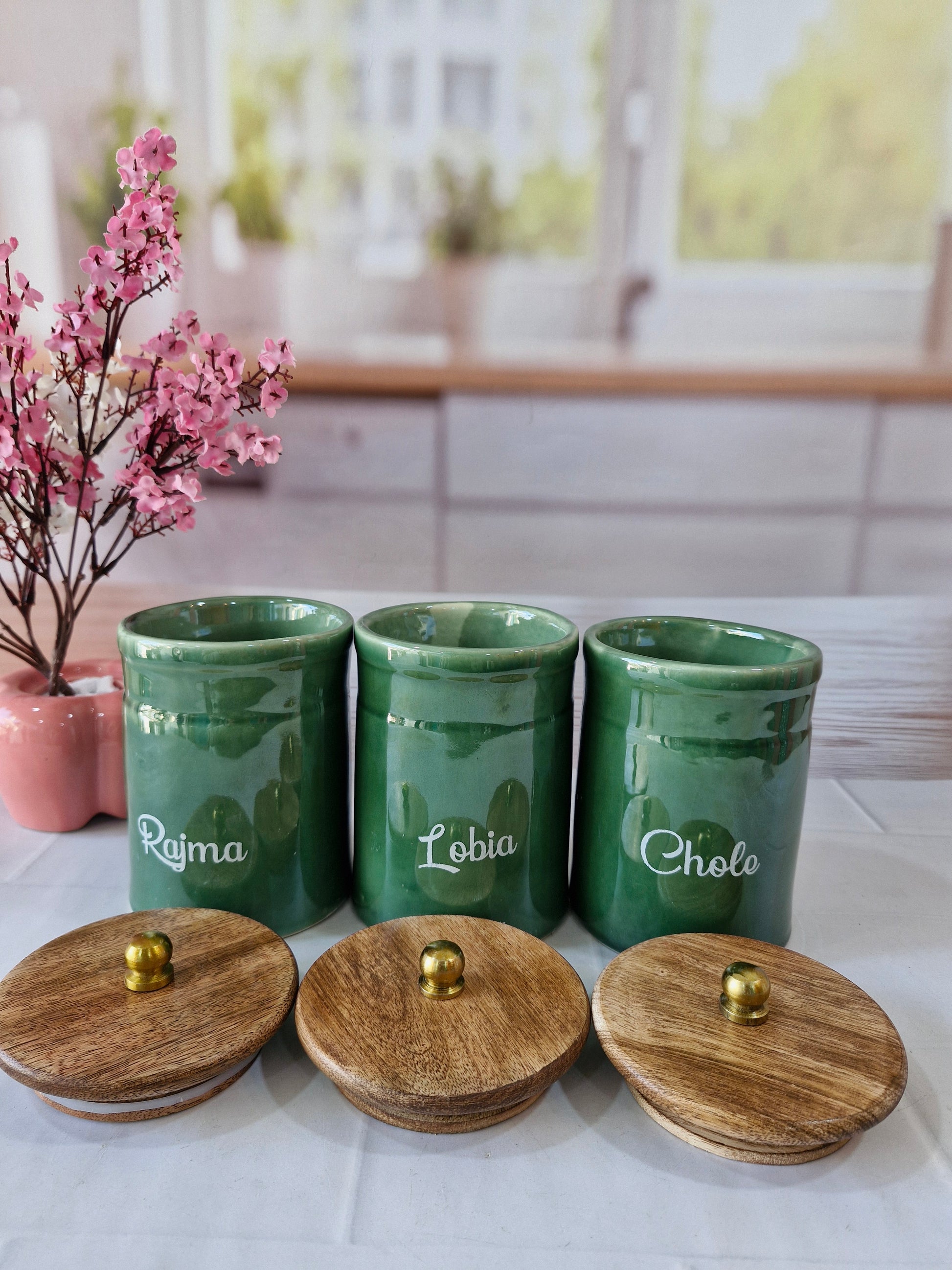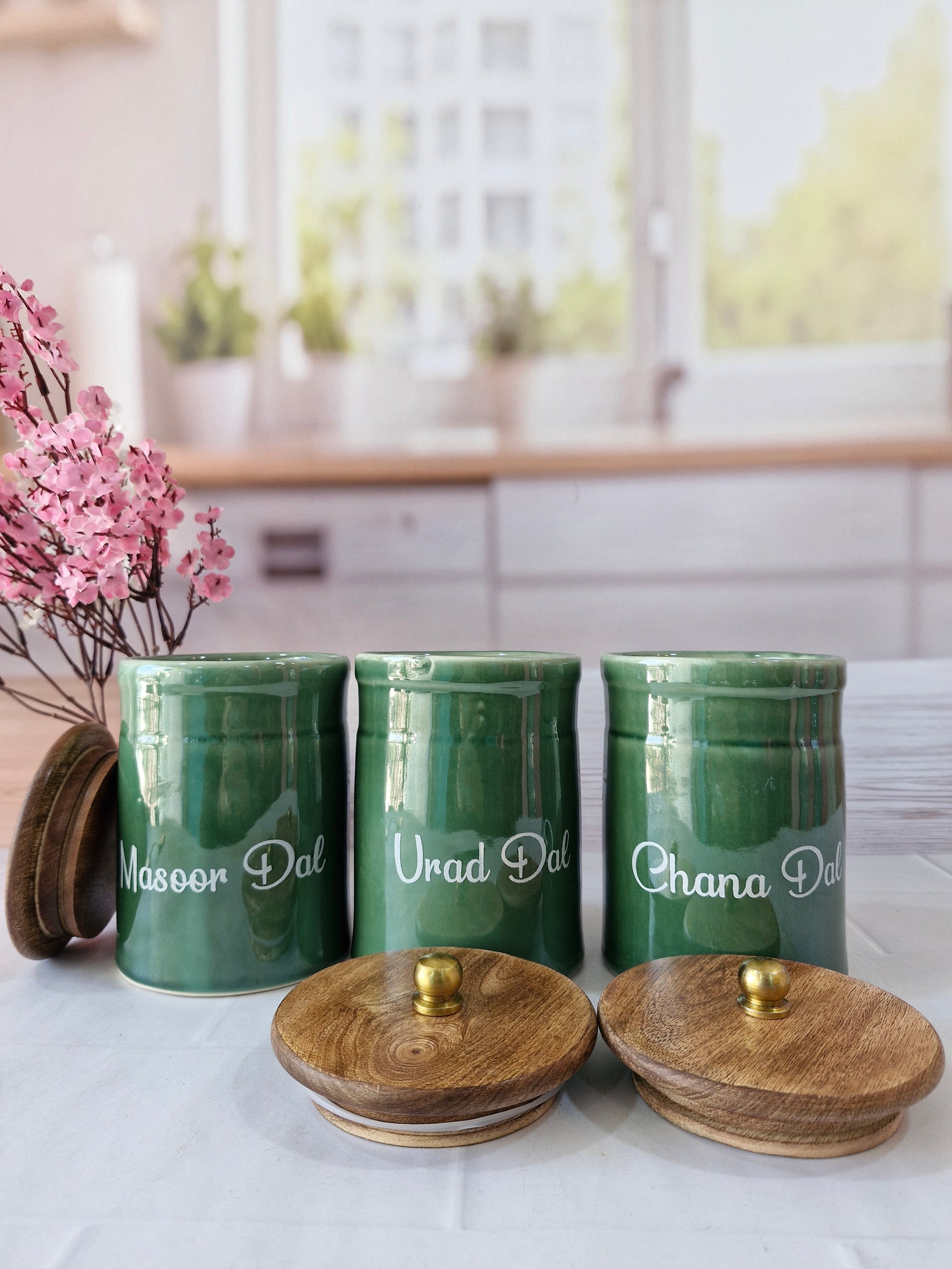 Happy Home Green Royal kitchen Spice Delight Airtight Ceramic Container (1kg) with wooden Lid
