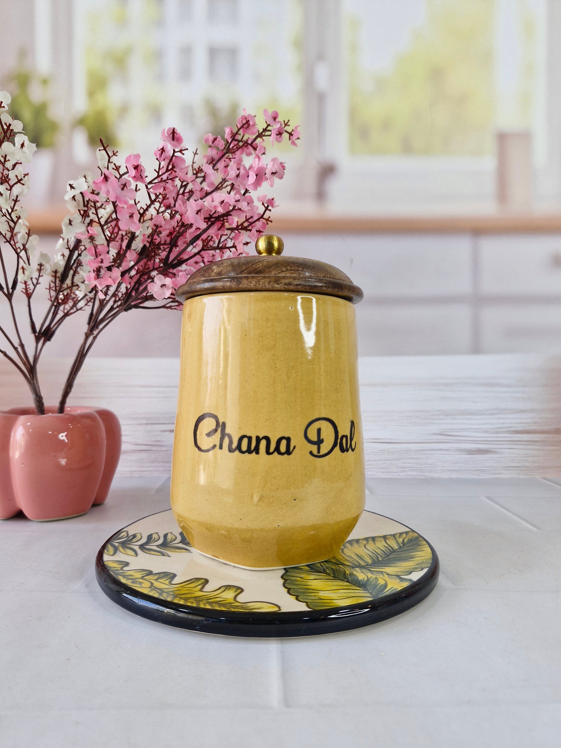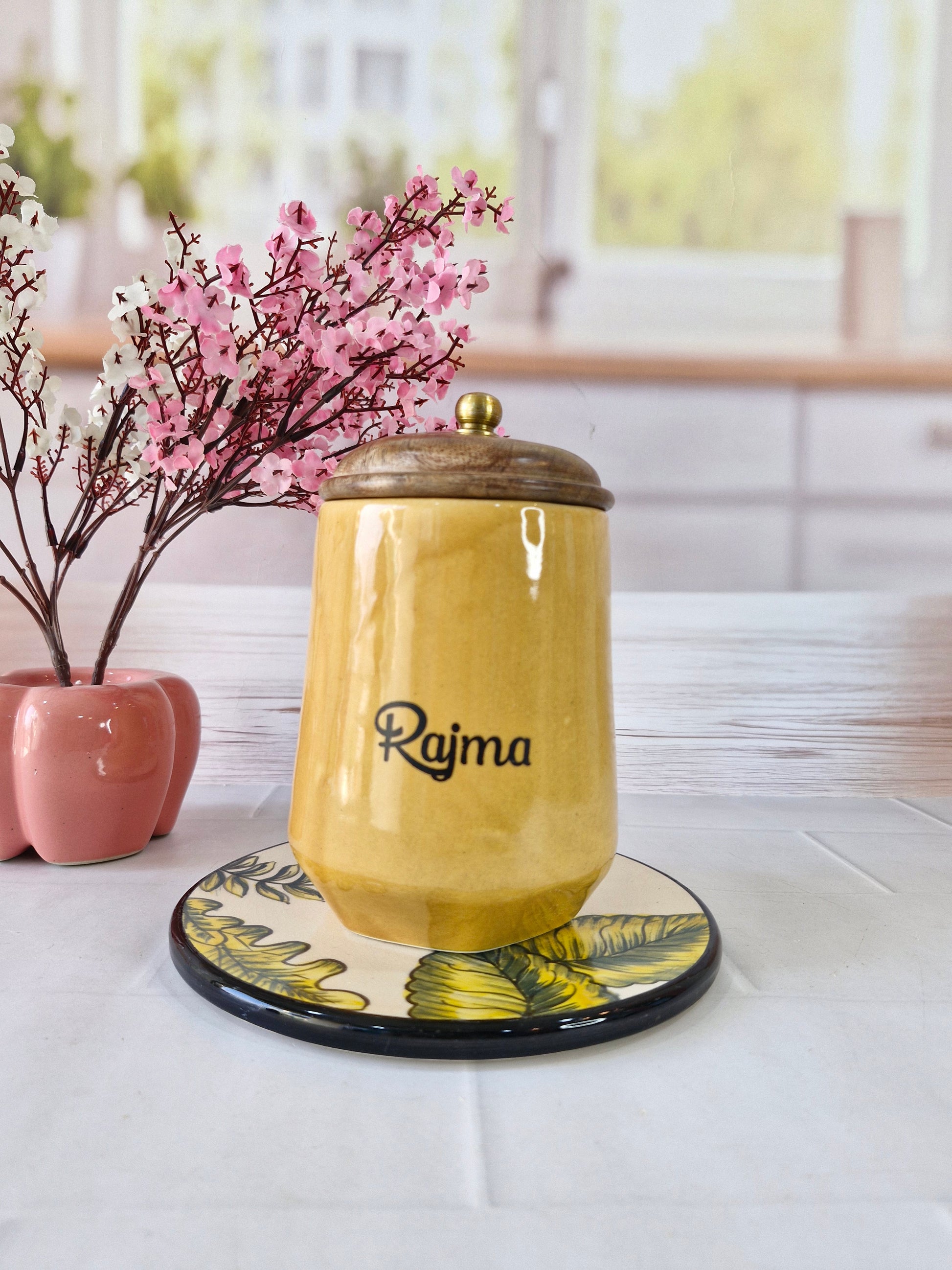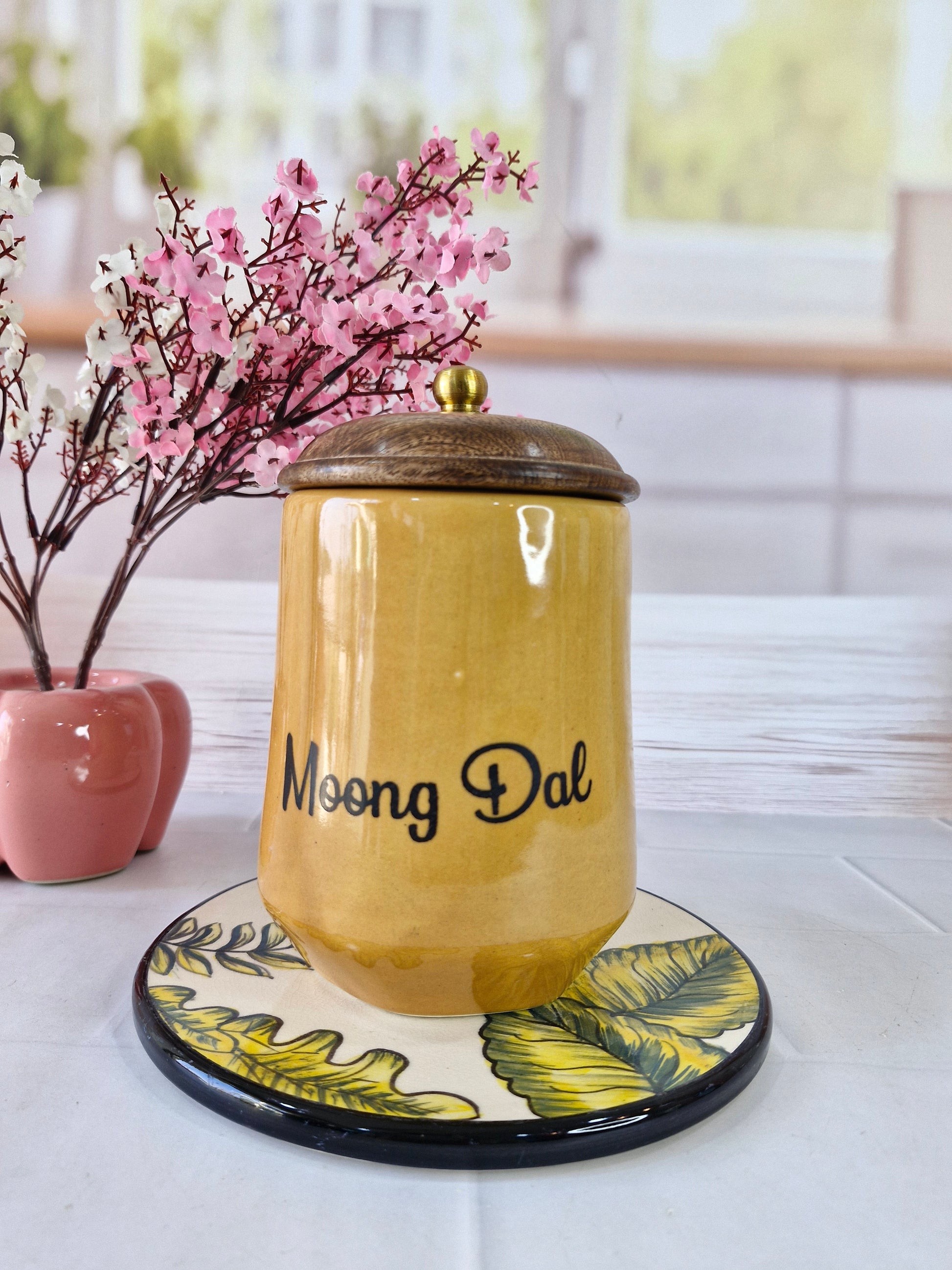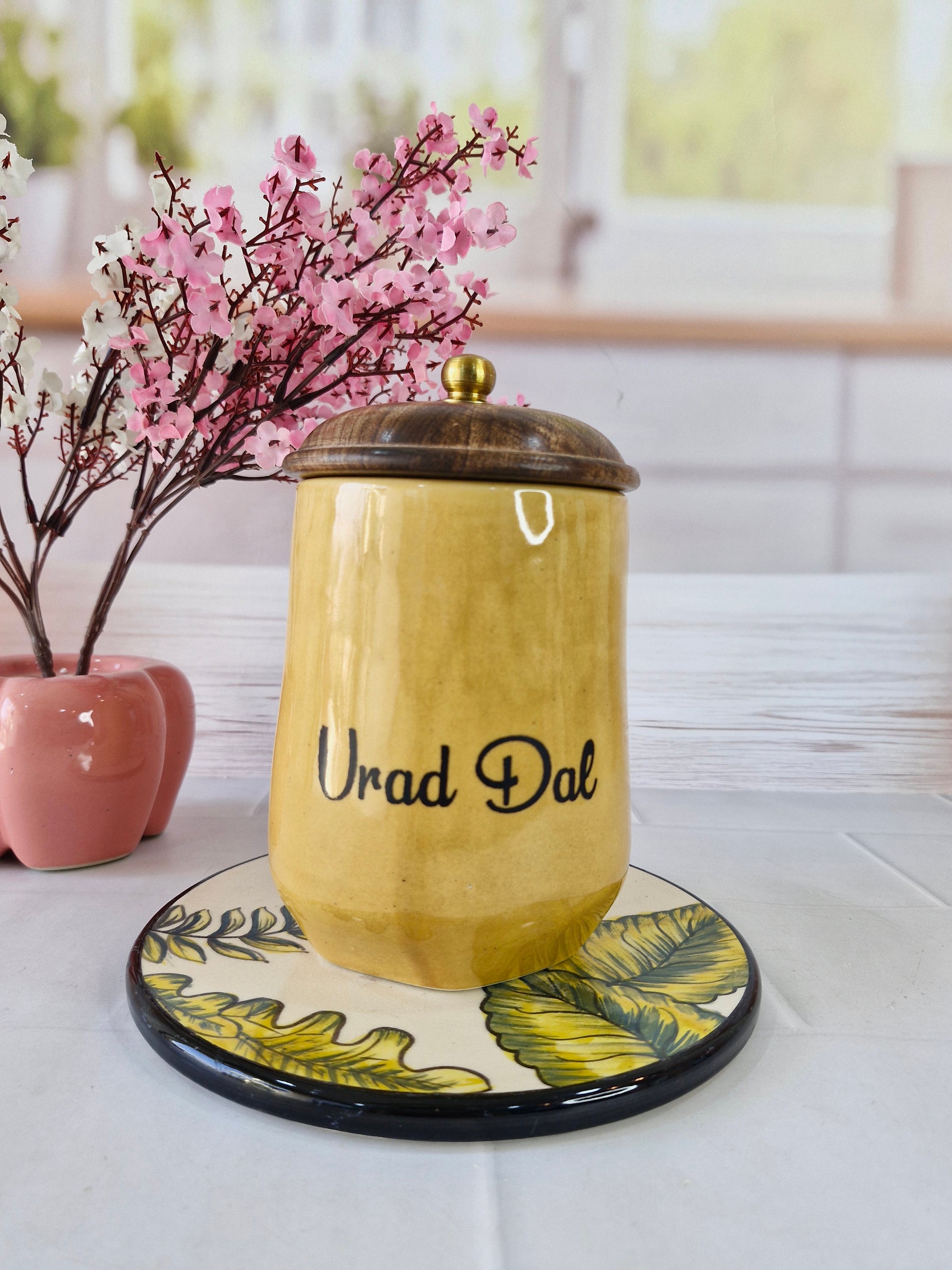 Flavorful Kitchen Companions Dal Delight Airtight Ceramic Container (1kg) with wooden Lid