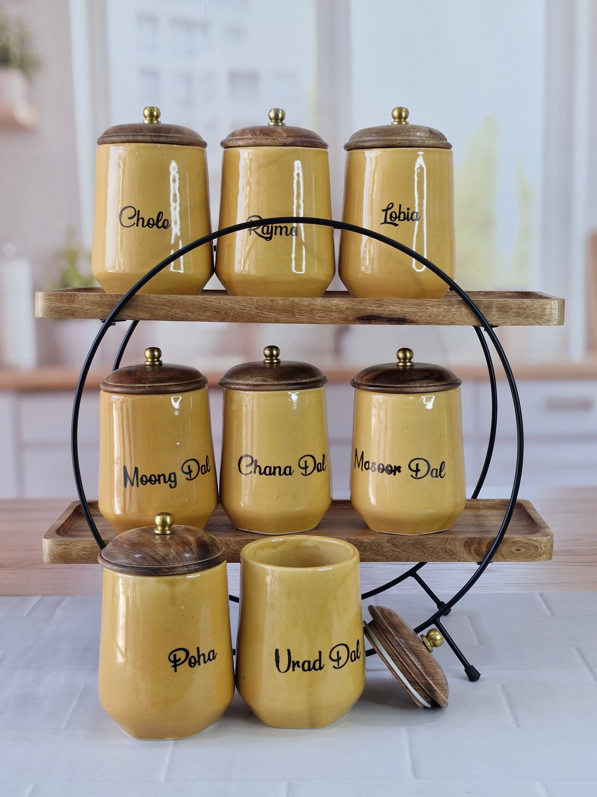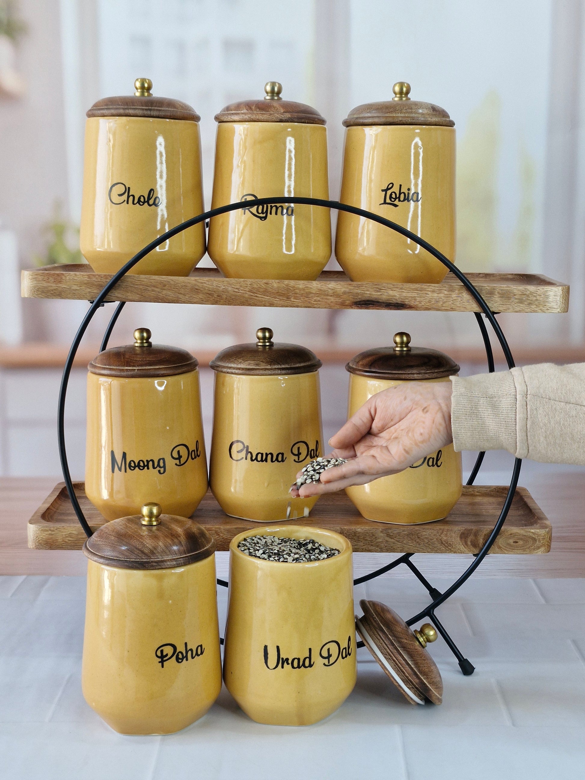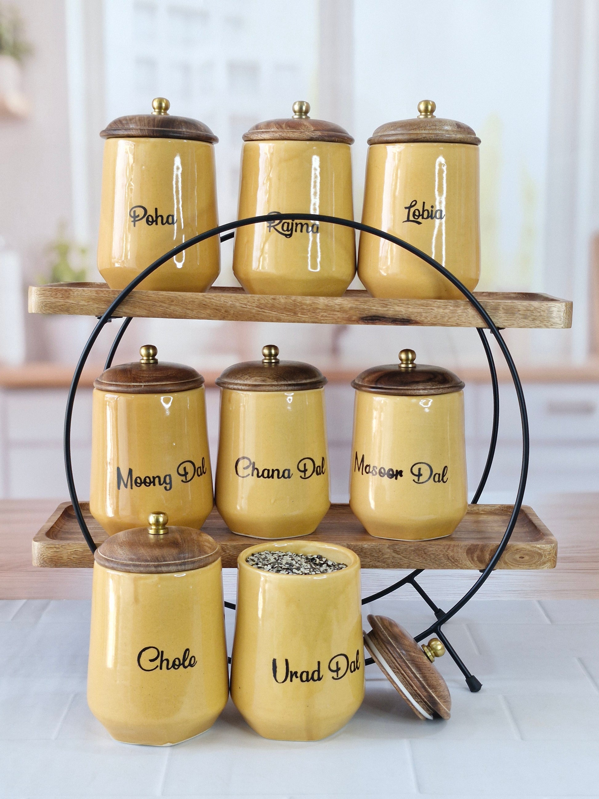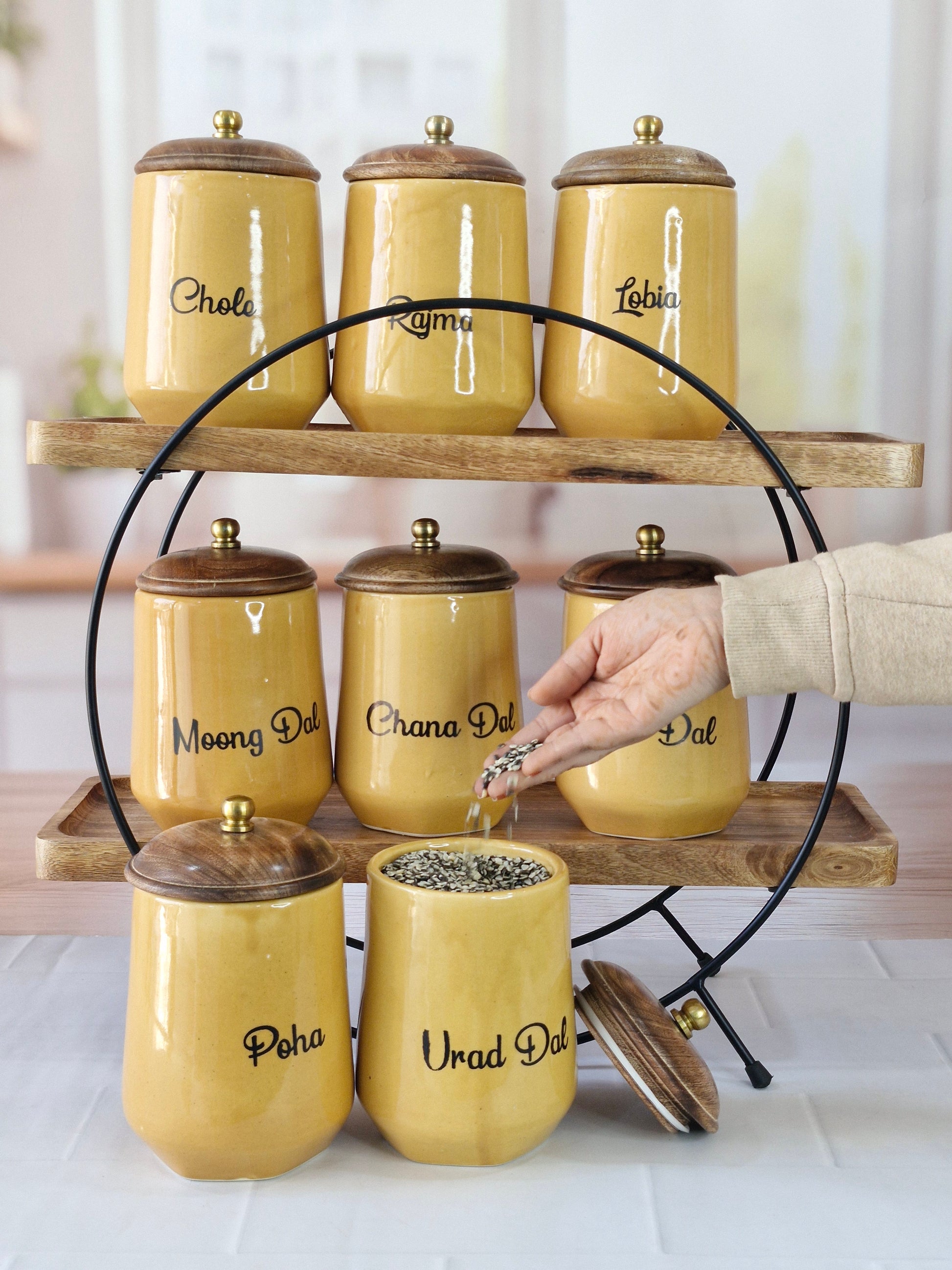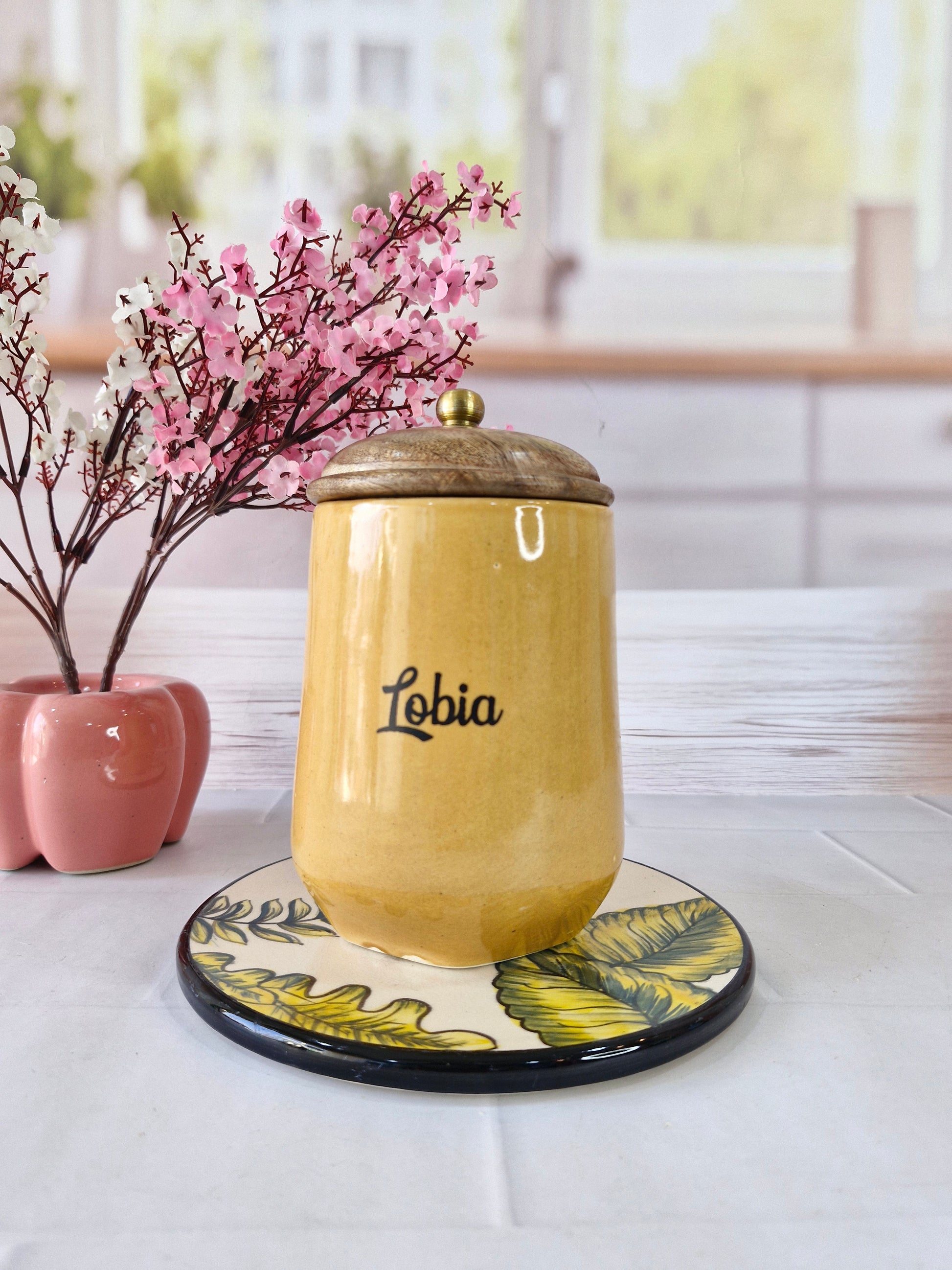 Flavorful Kitchen Companions Dal Delight Airtight Ceramic Container (1kg) with wooden Lid