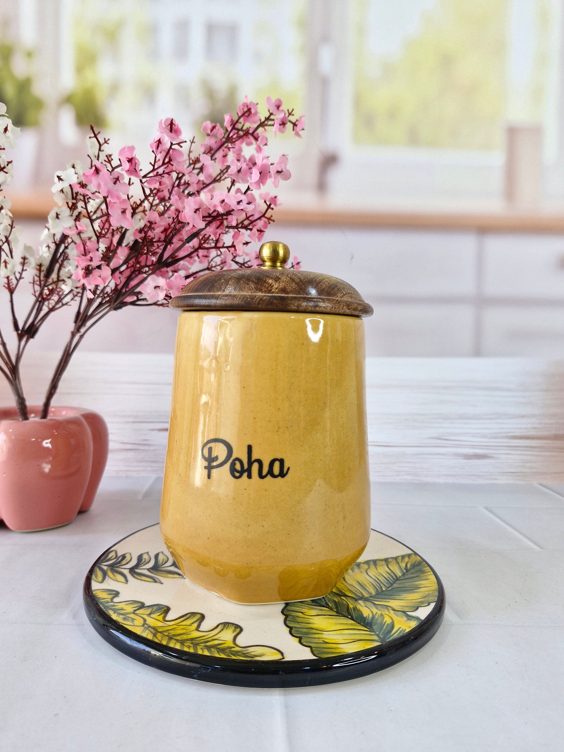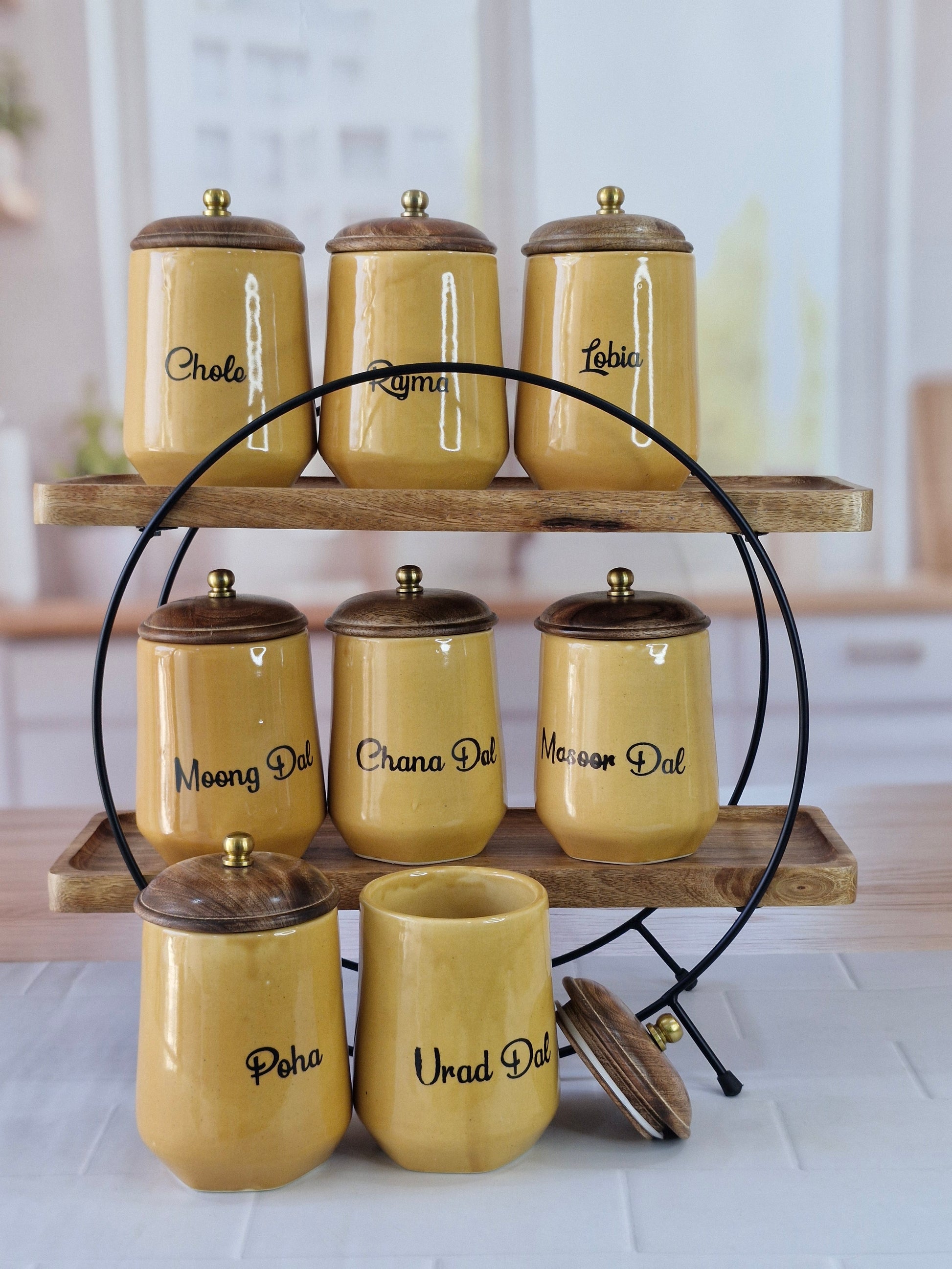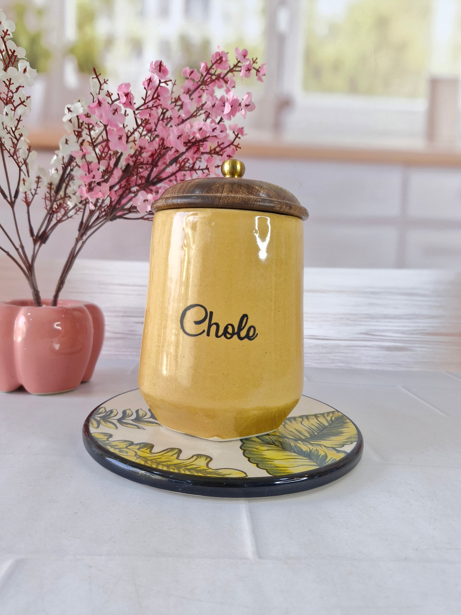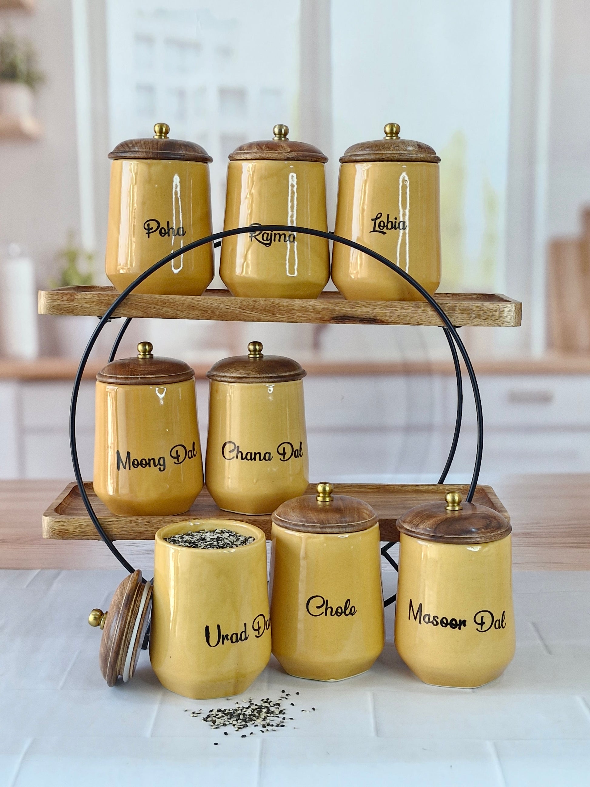 Flavorful Kitchen Companions Dal Delight Airtight Ceramic Container (1kg) with wooden Lid