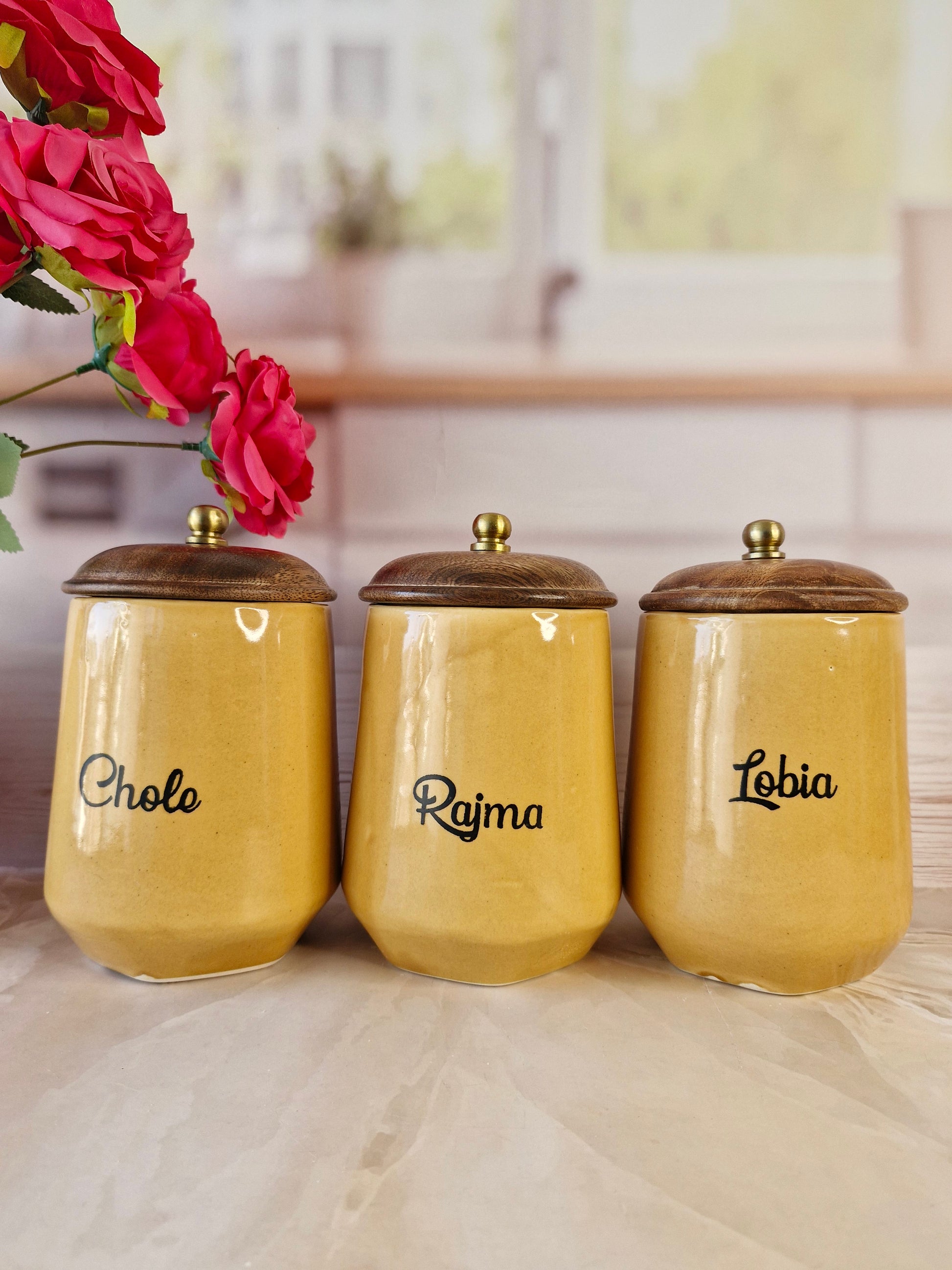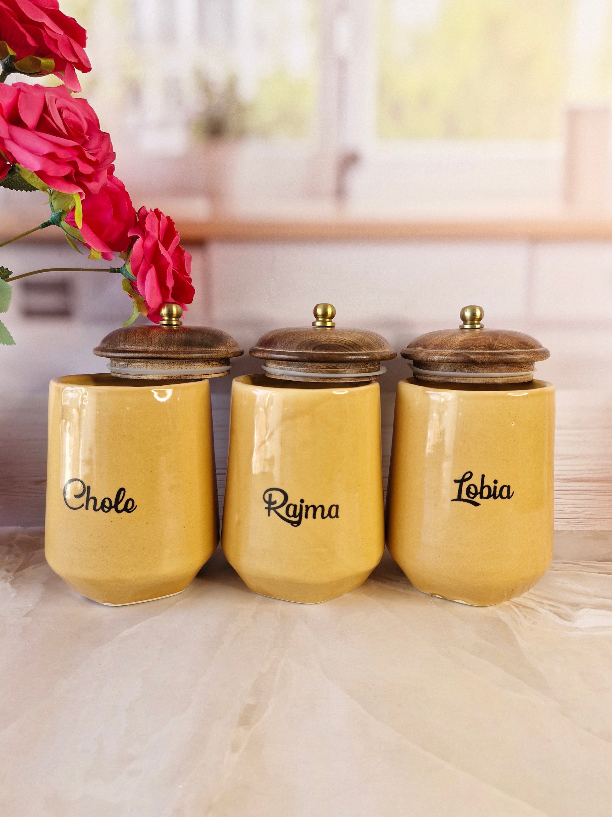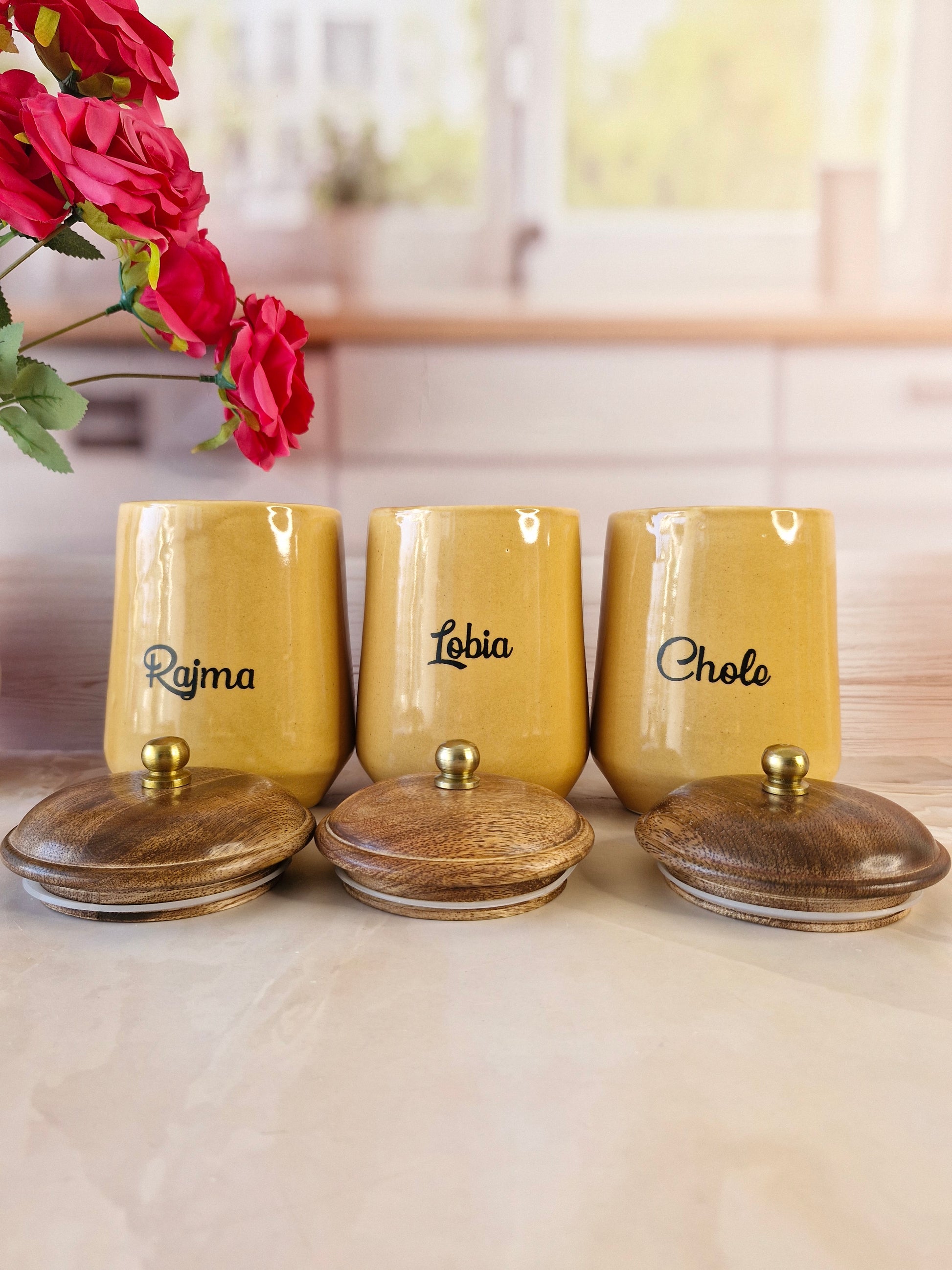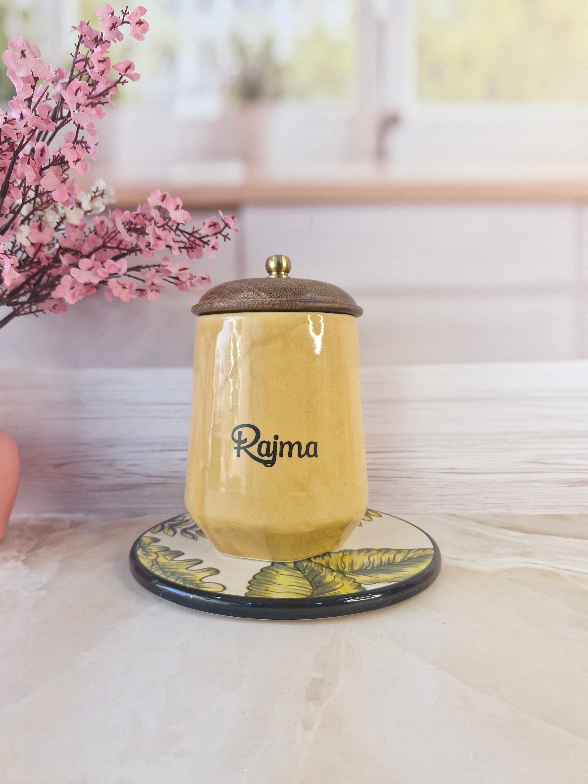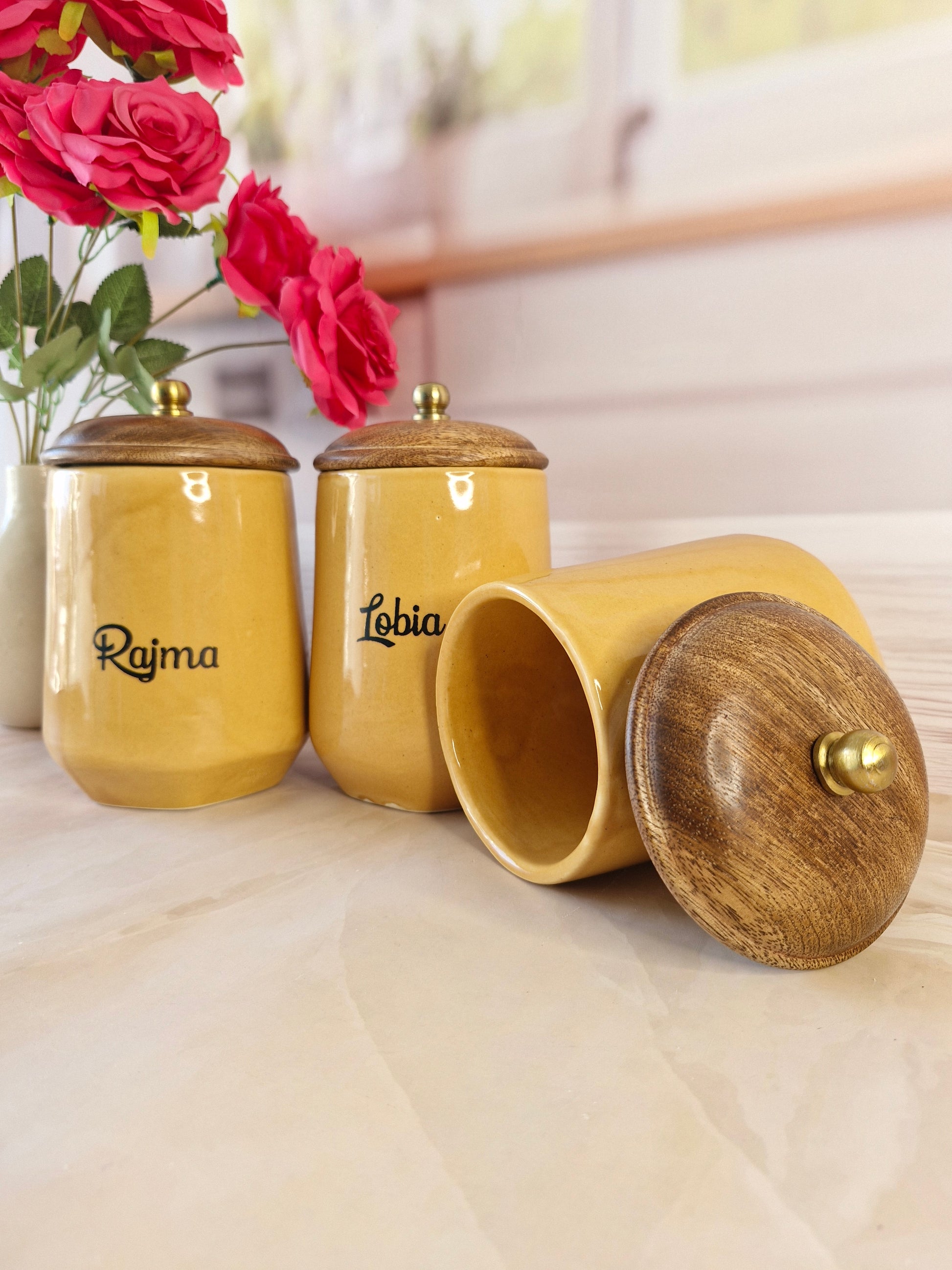 Foodie Friend Spice Delight Honey Airtight Ceramic Container (1kg) with wooden Lid