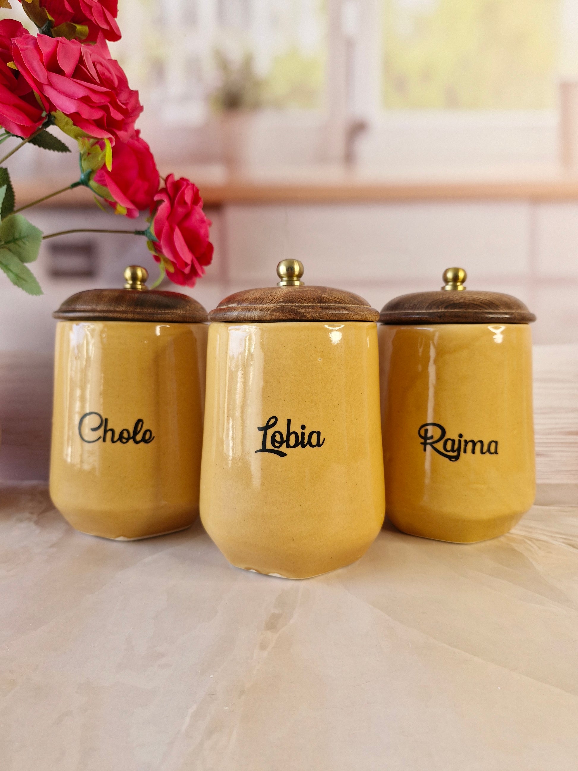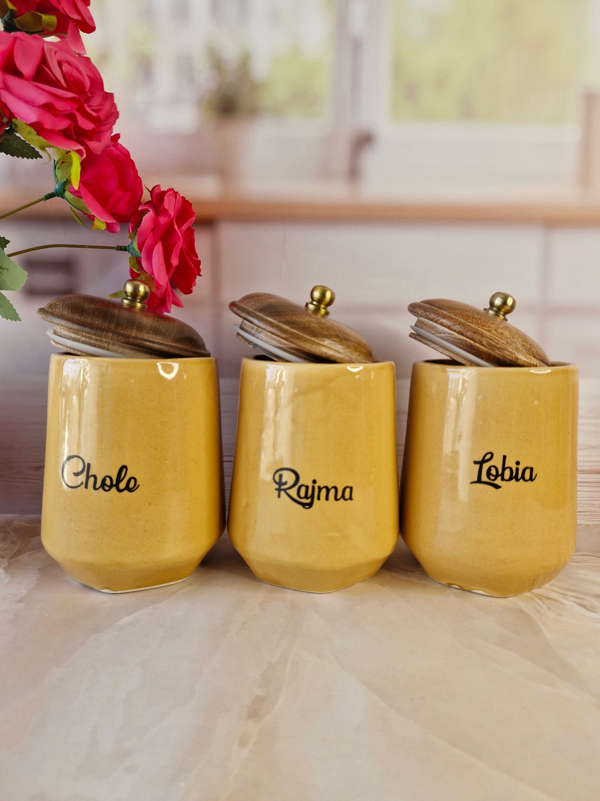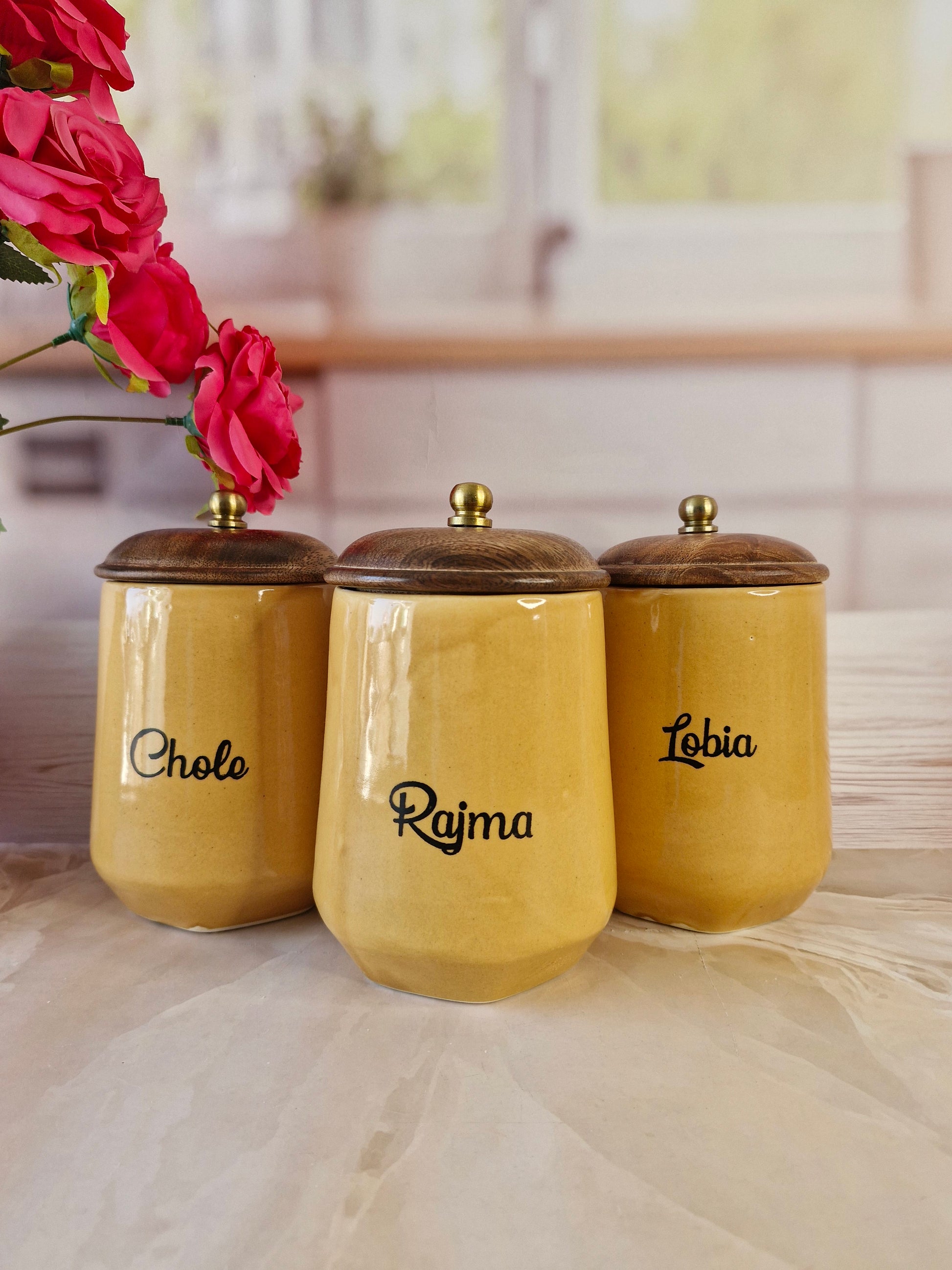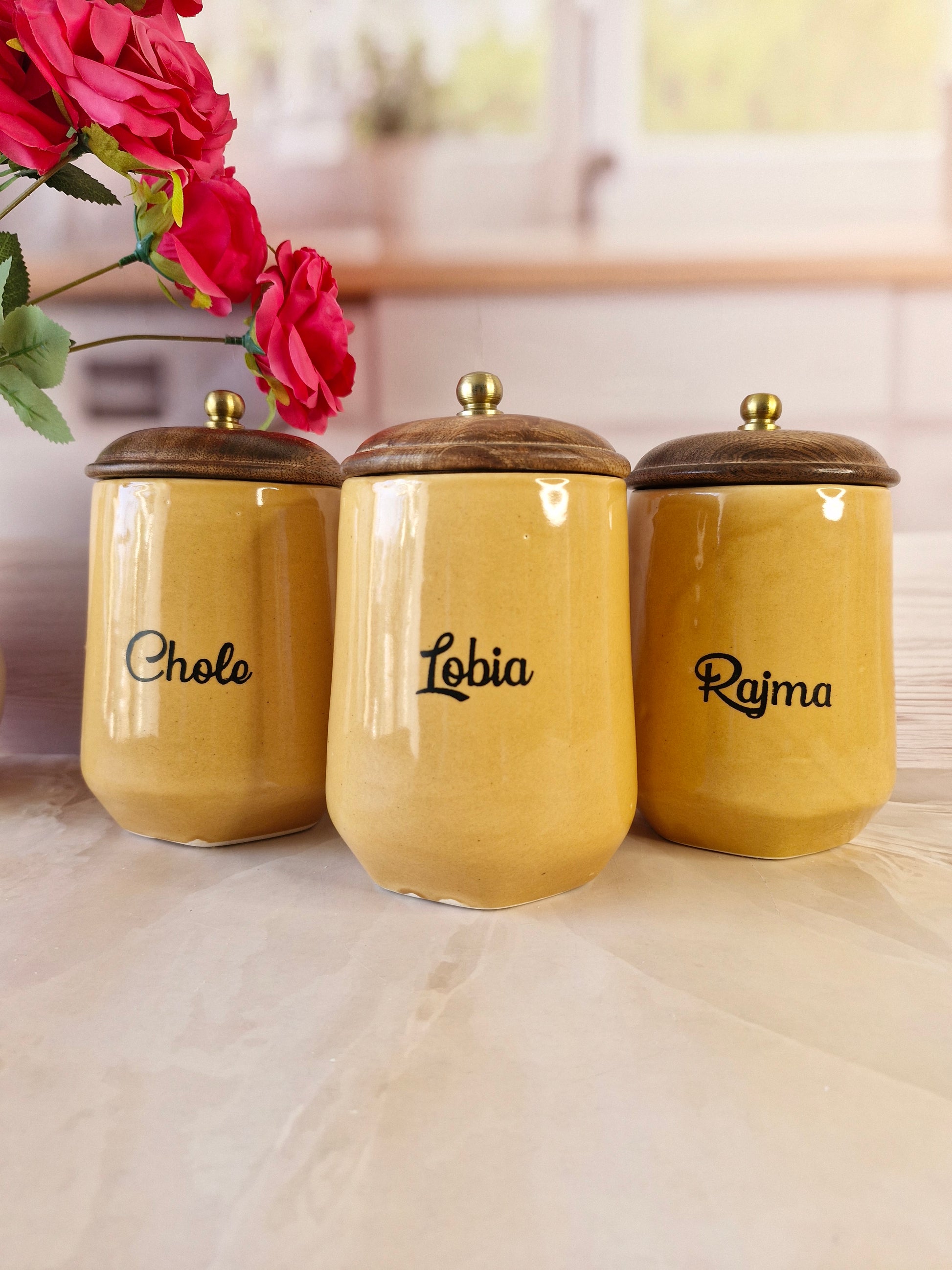 Foodie Friend Spice Delight Honey Airtight Ceramic Container (1kg) with wooden Lid