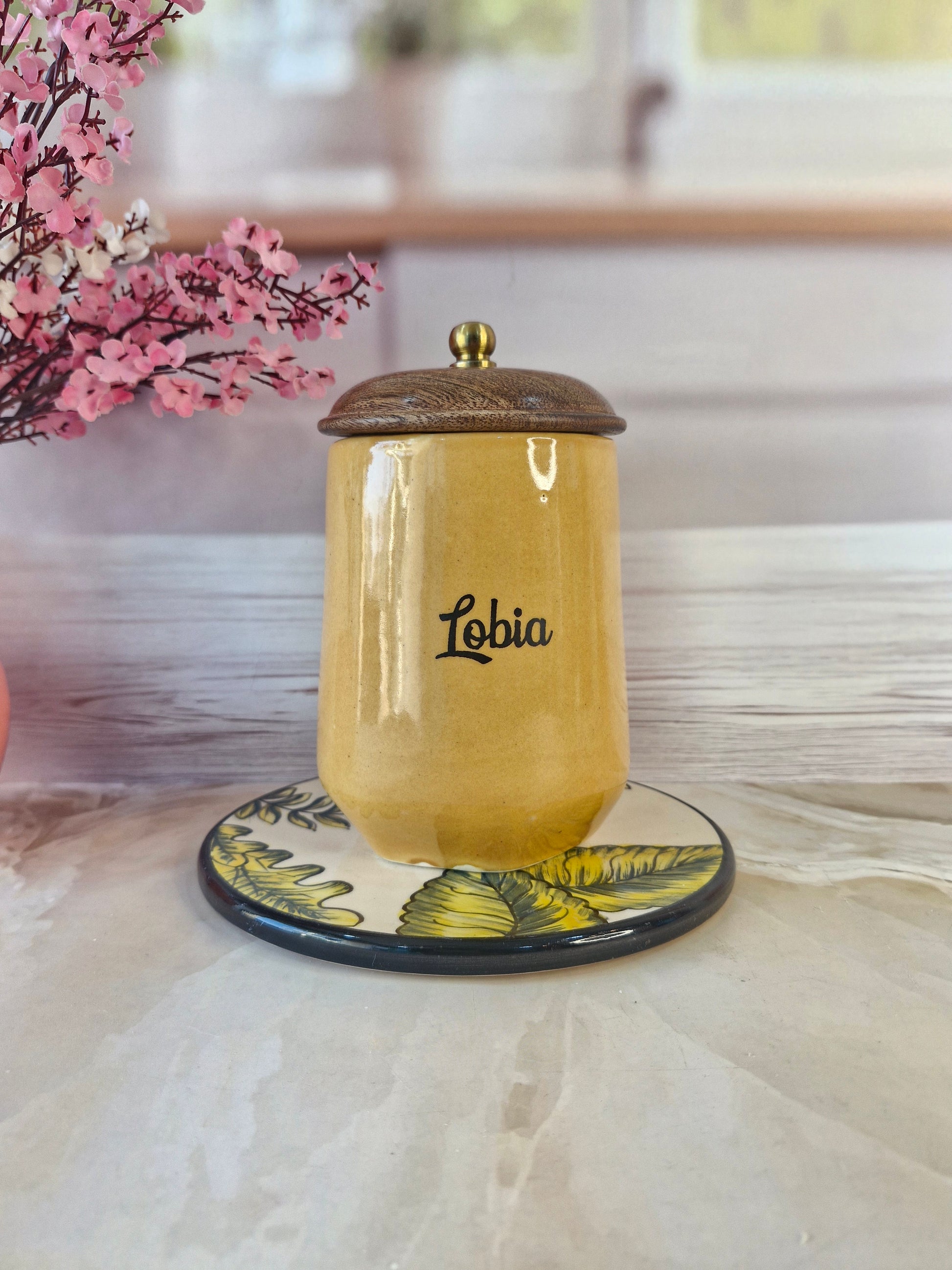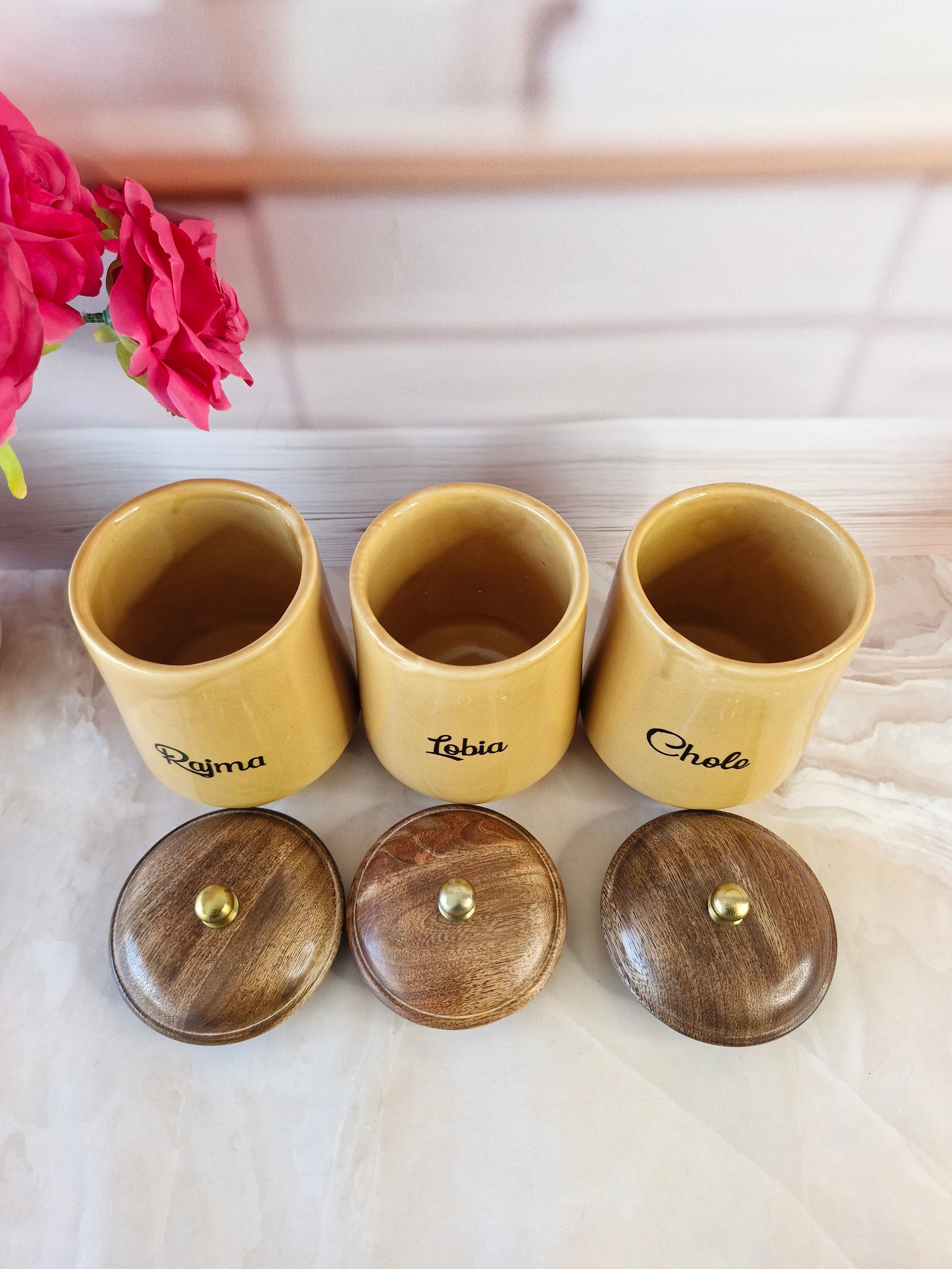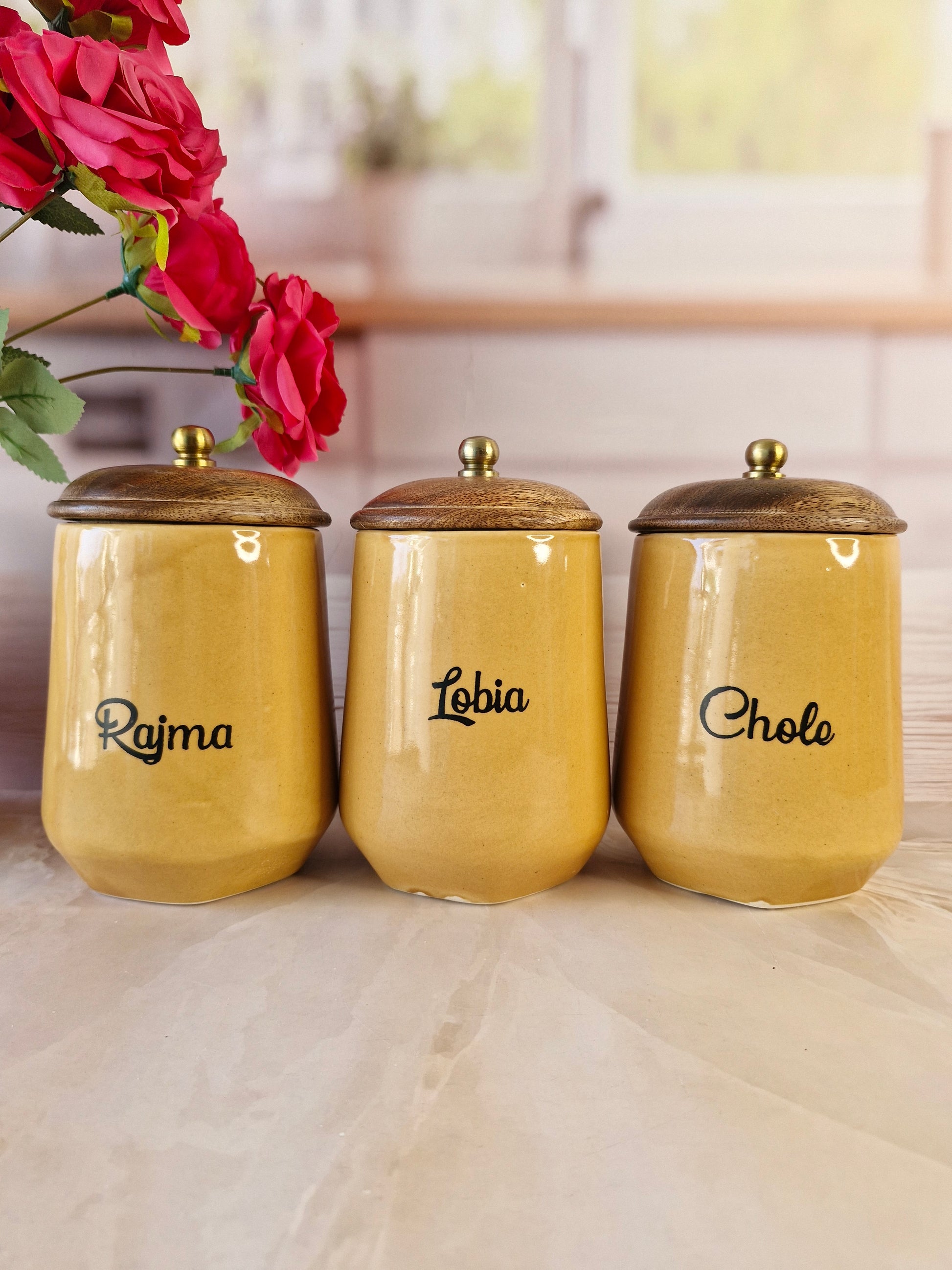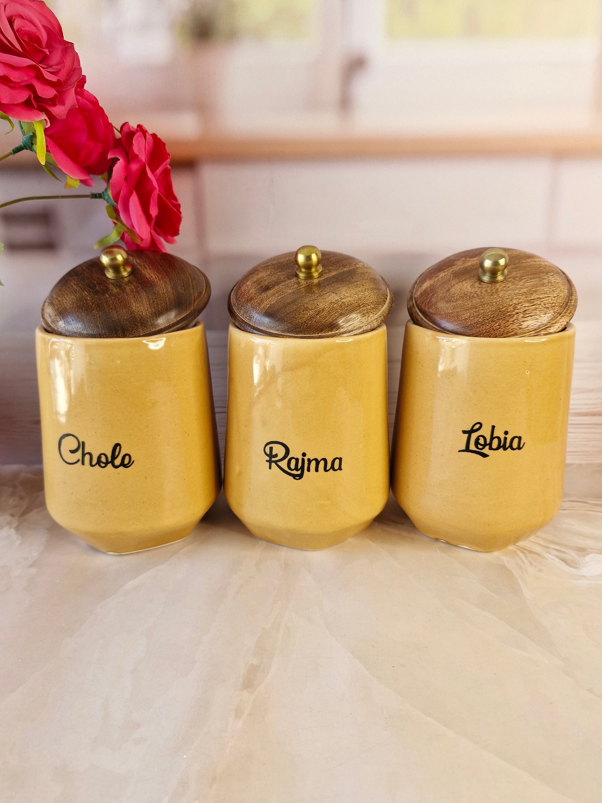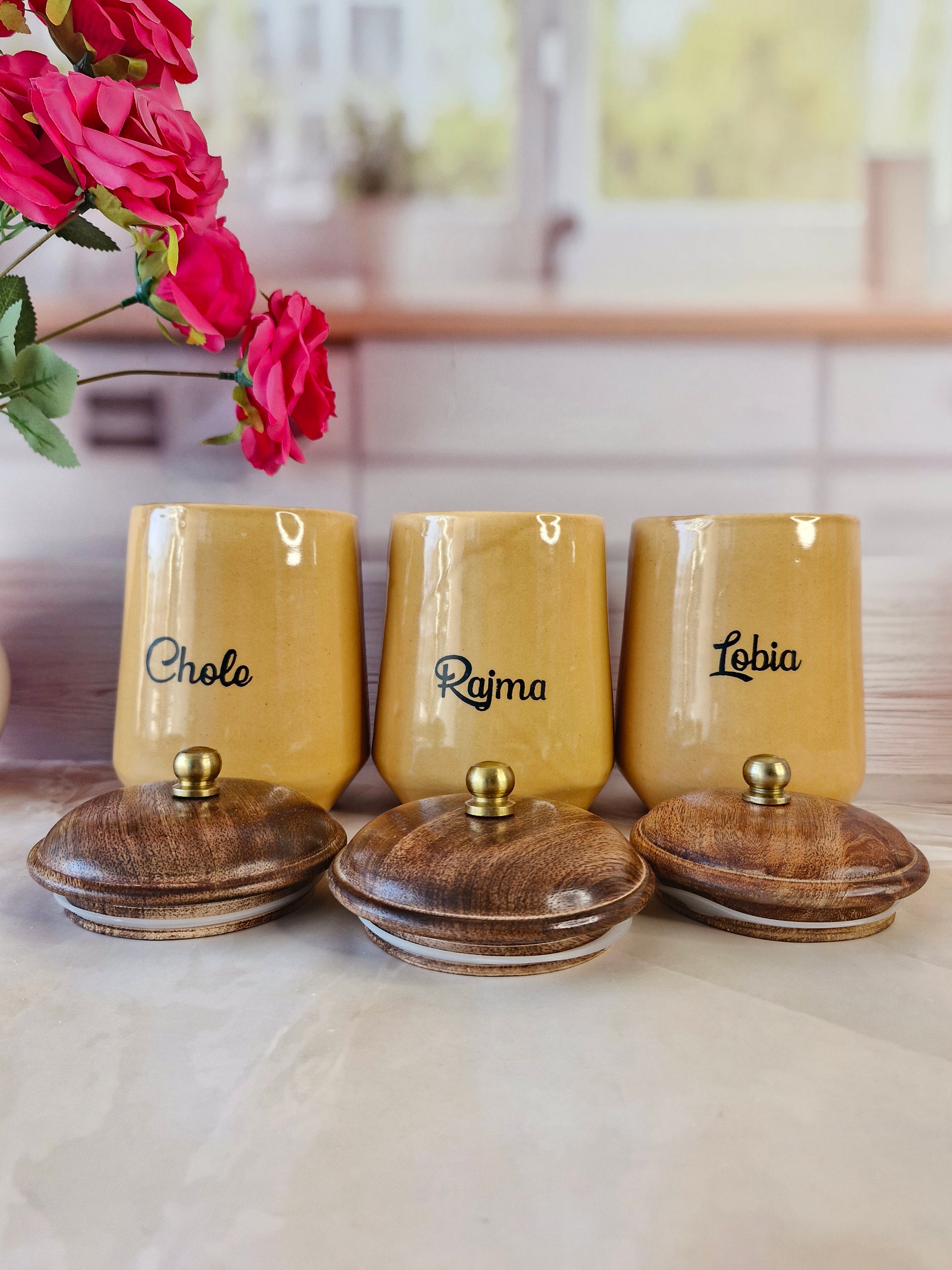 Foodie Friend Spice Delight Honey Airtight Ceramic Container (1kg) with wooden Lid