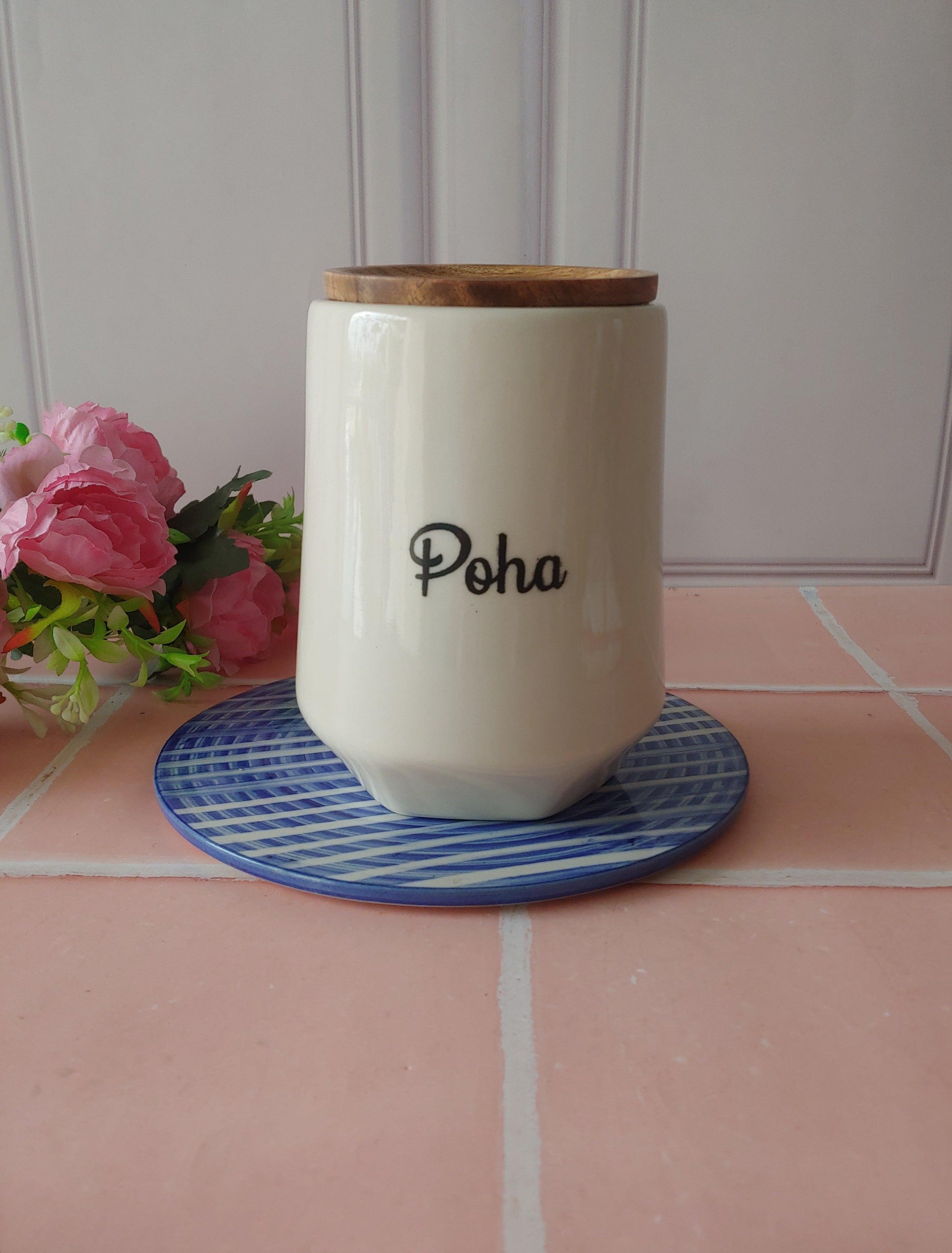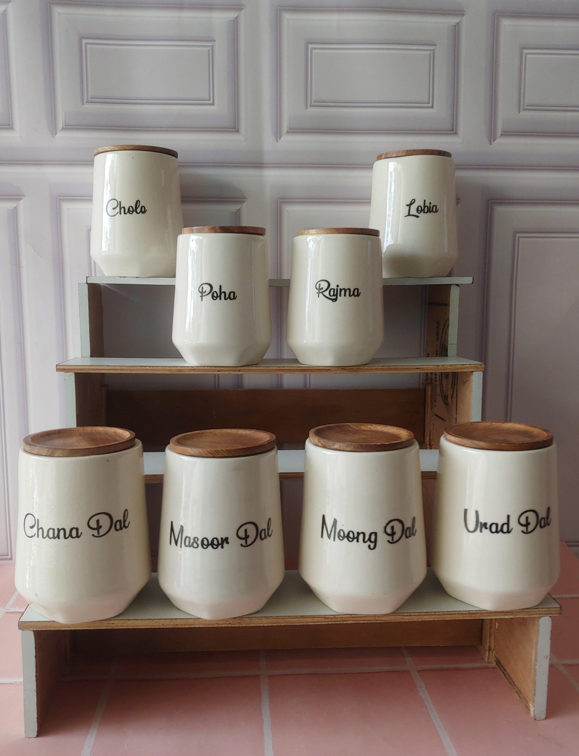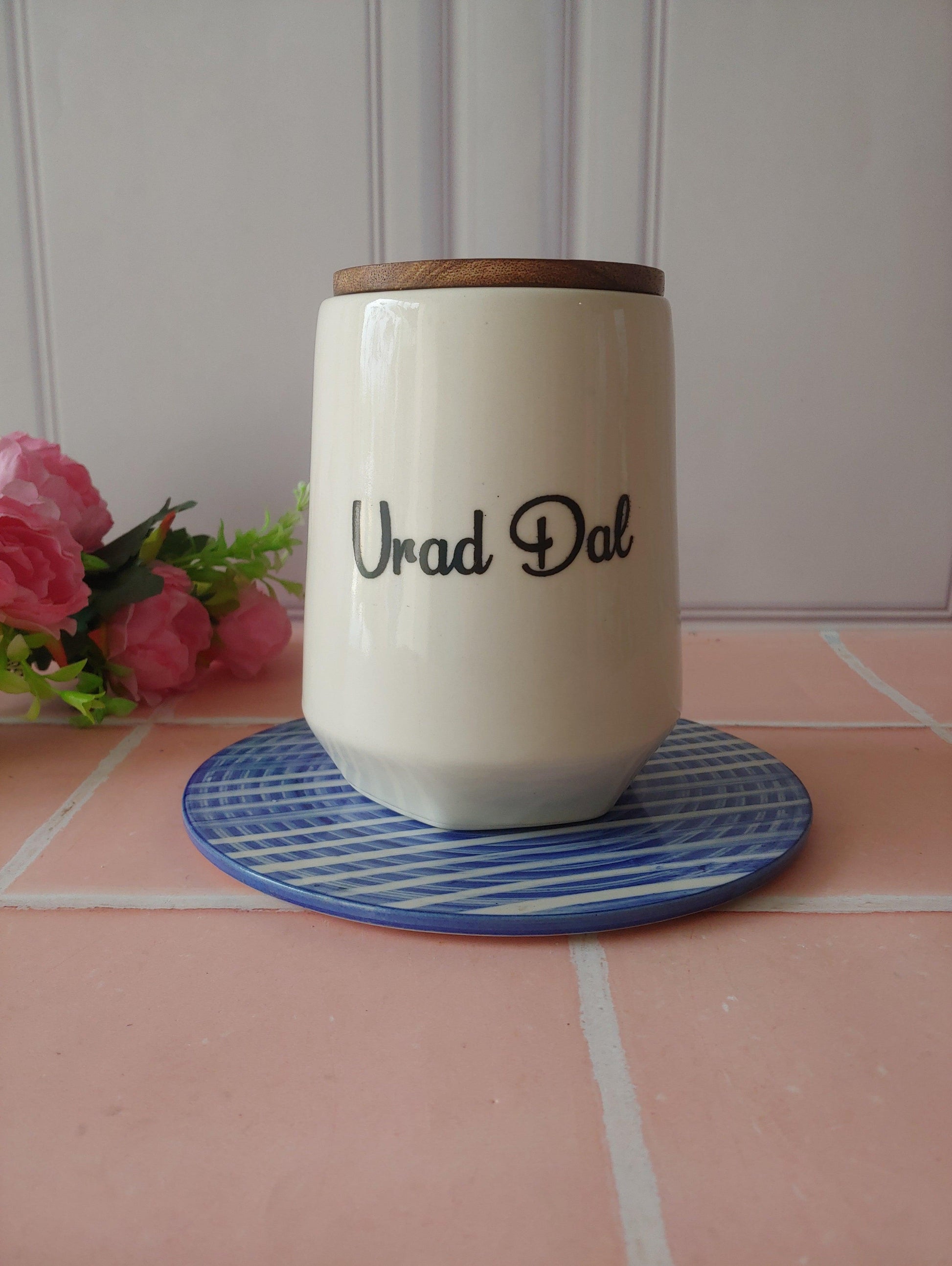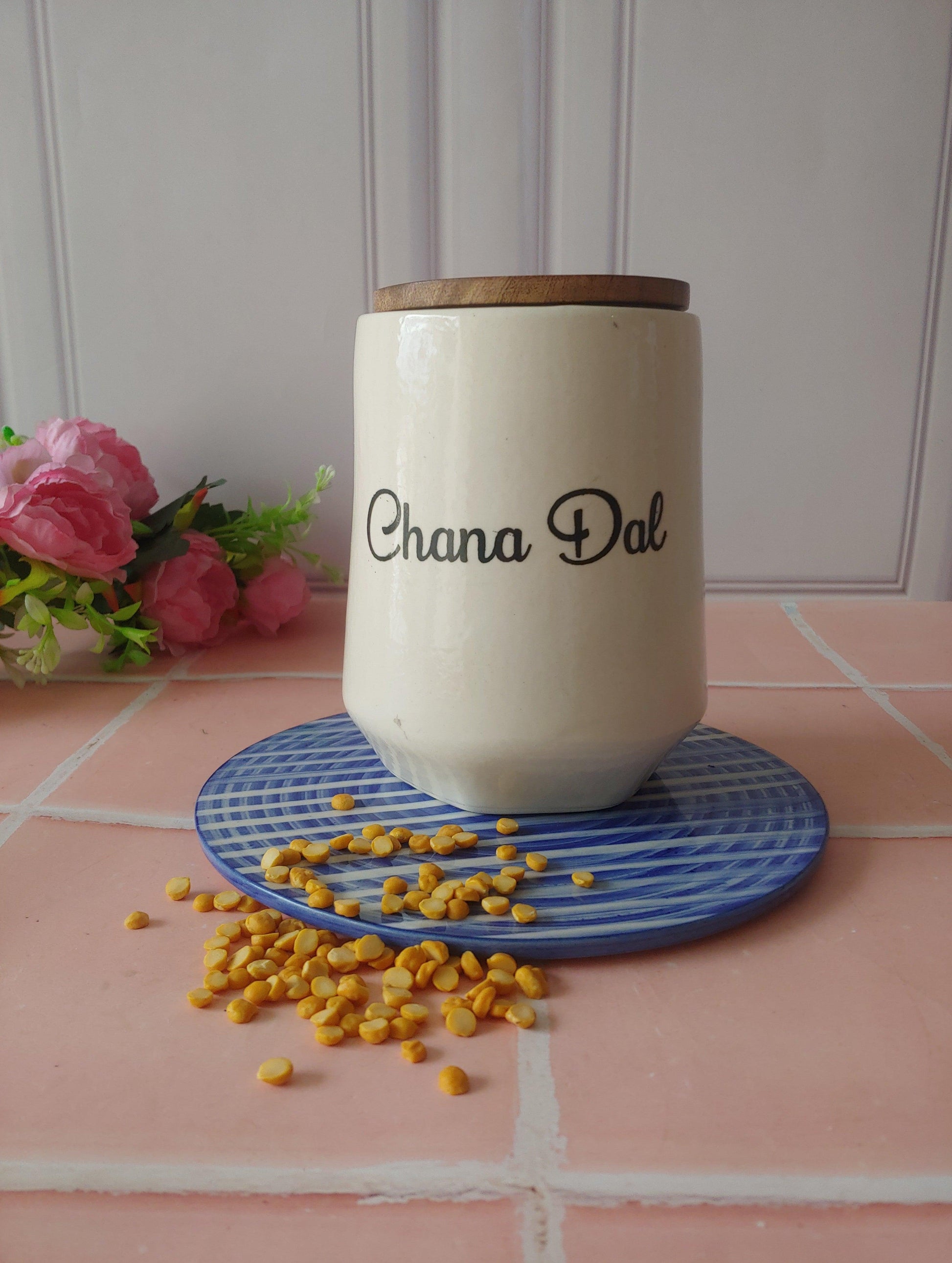 Global Flavor Fusion Dal Delight Airtight Ceramic Container (1kg) with wooden Lid