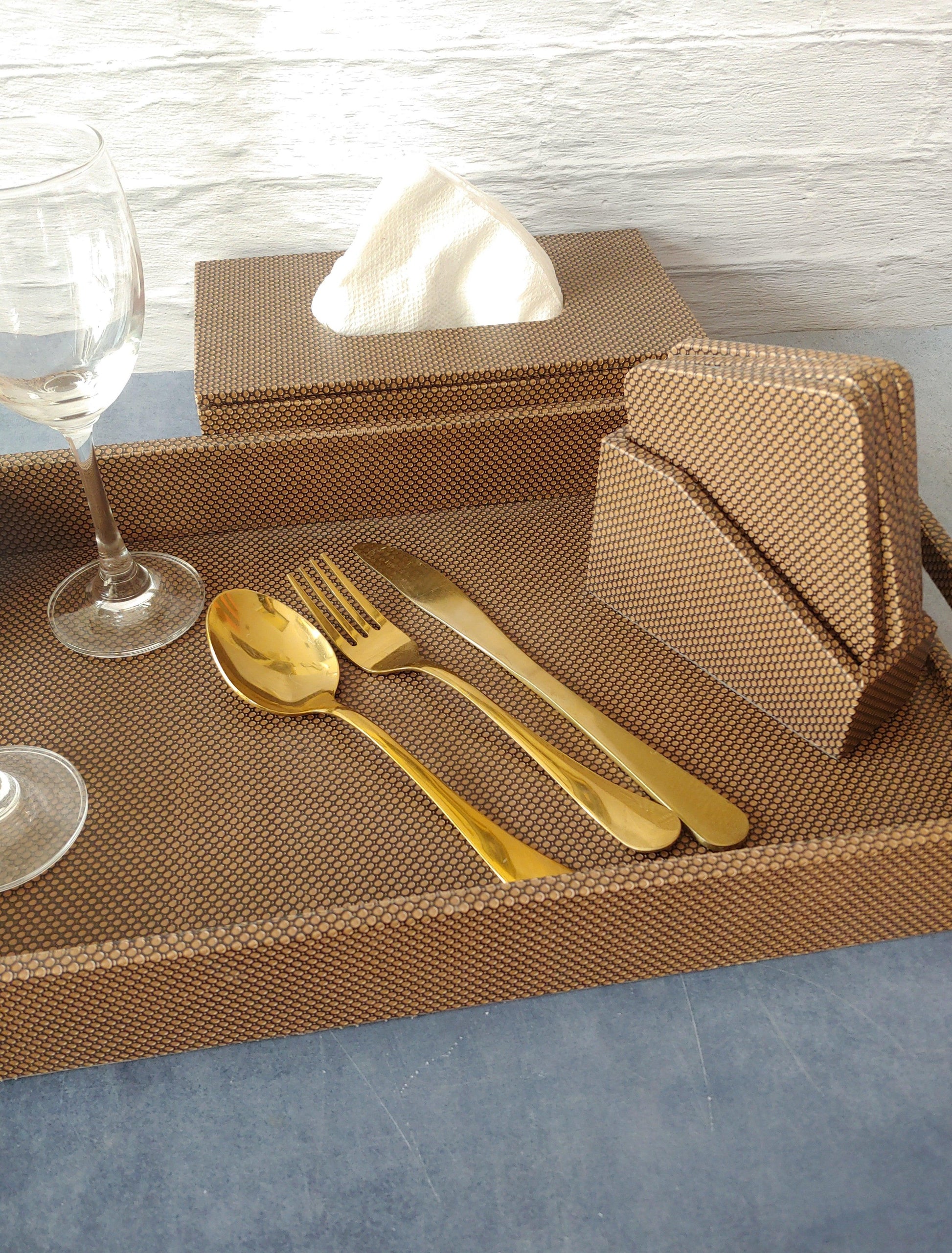 Brown HoneyComb Premium Leather Serving Tray with handle