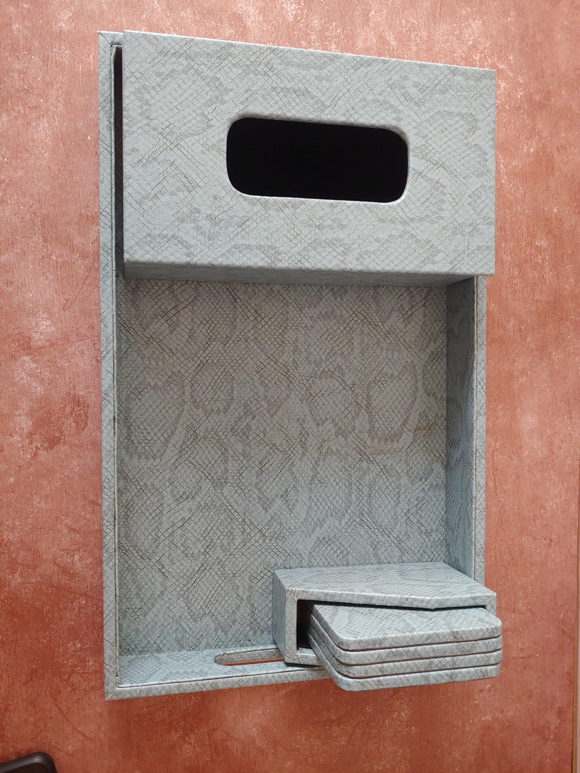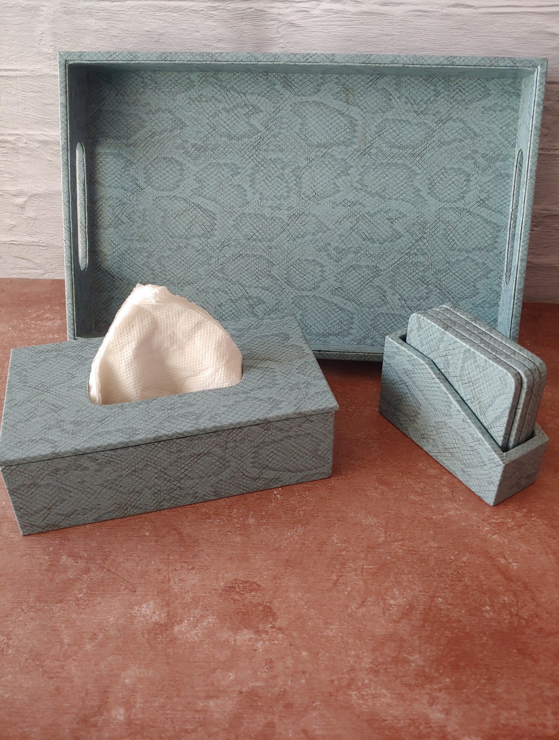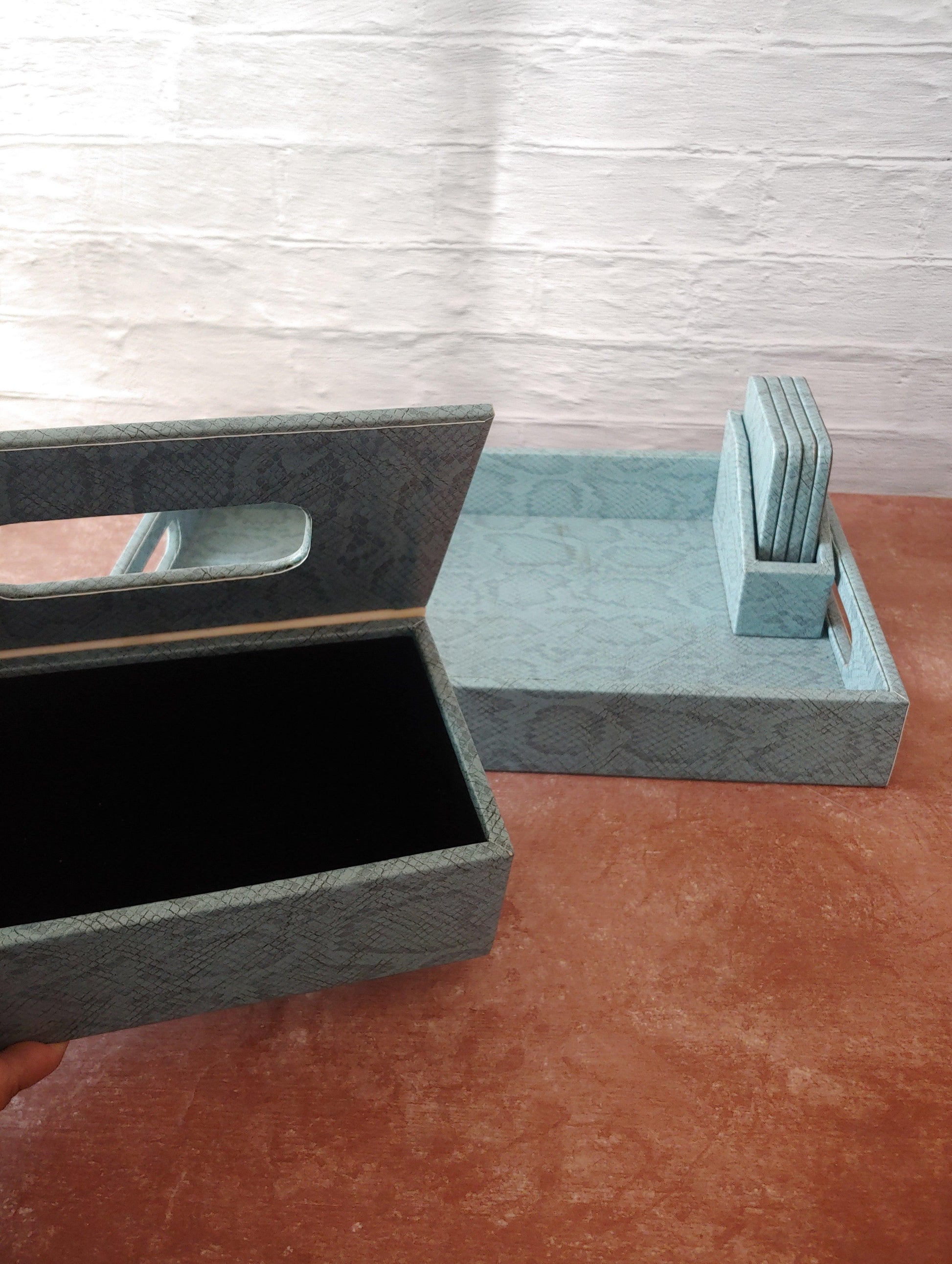 Earthy Blue Premium Leather Serving Tray with Handle