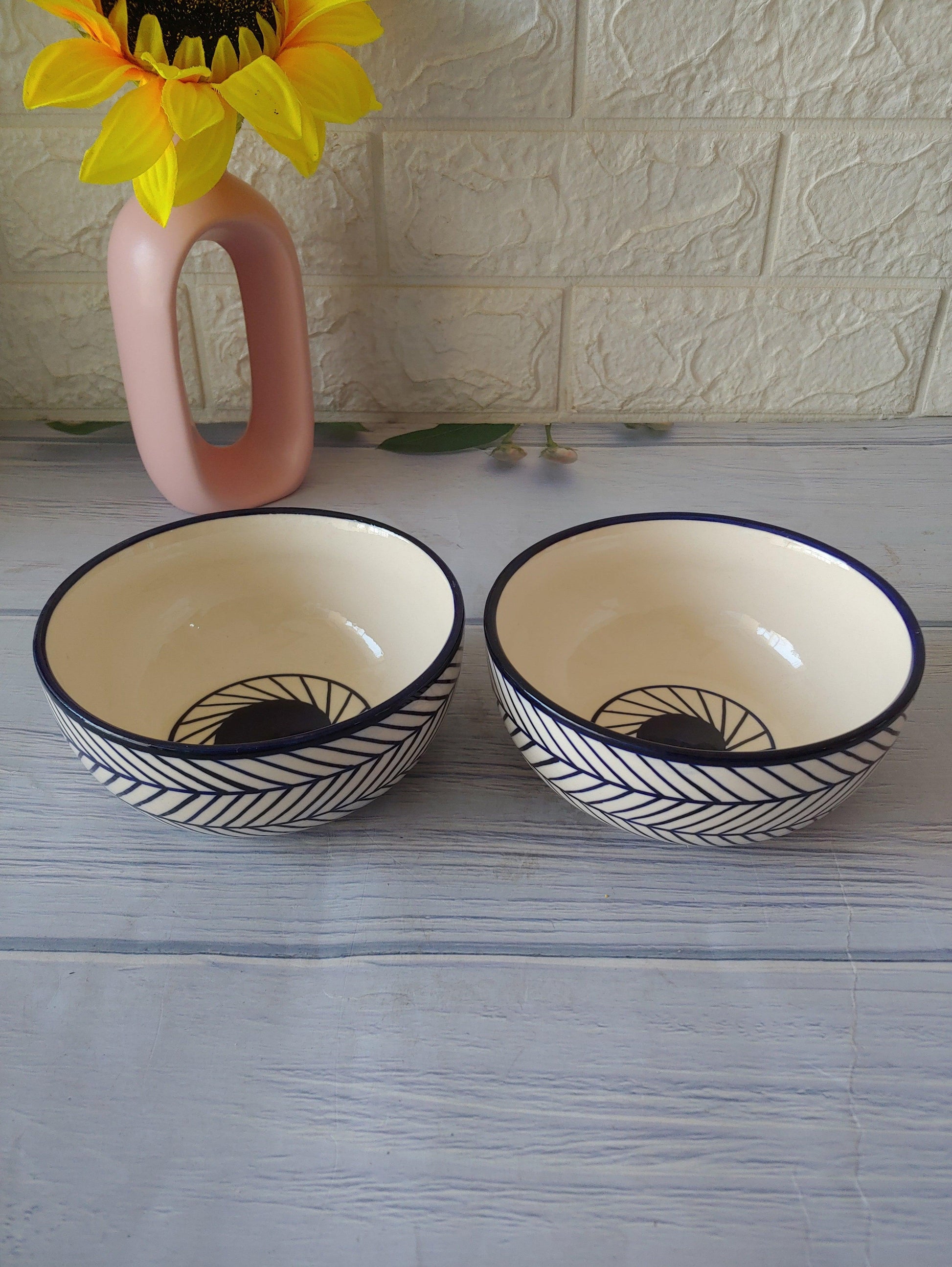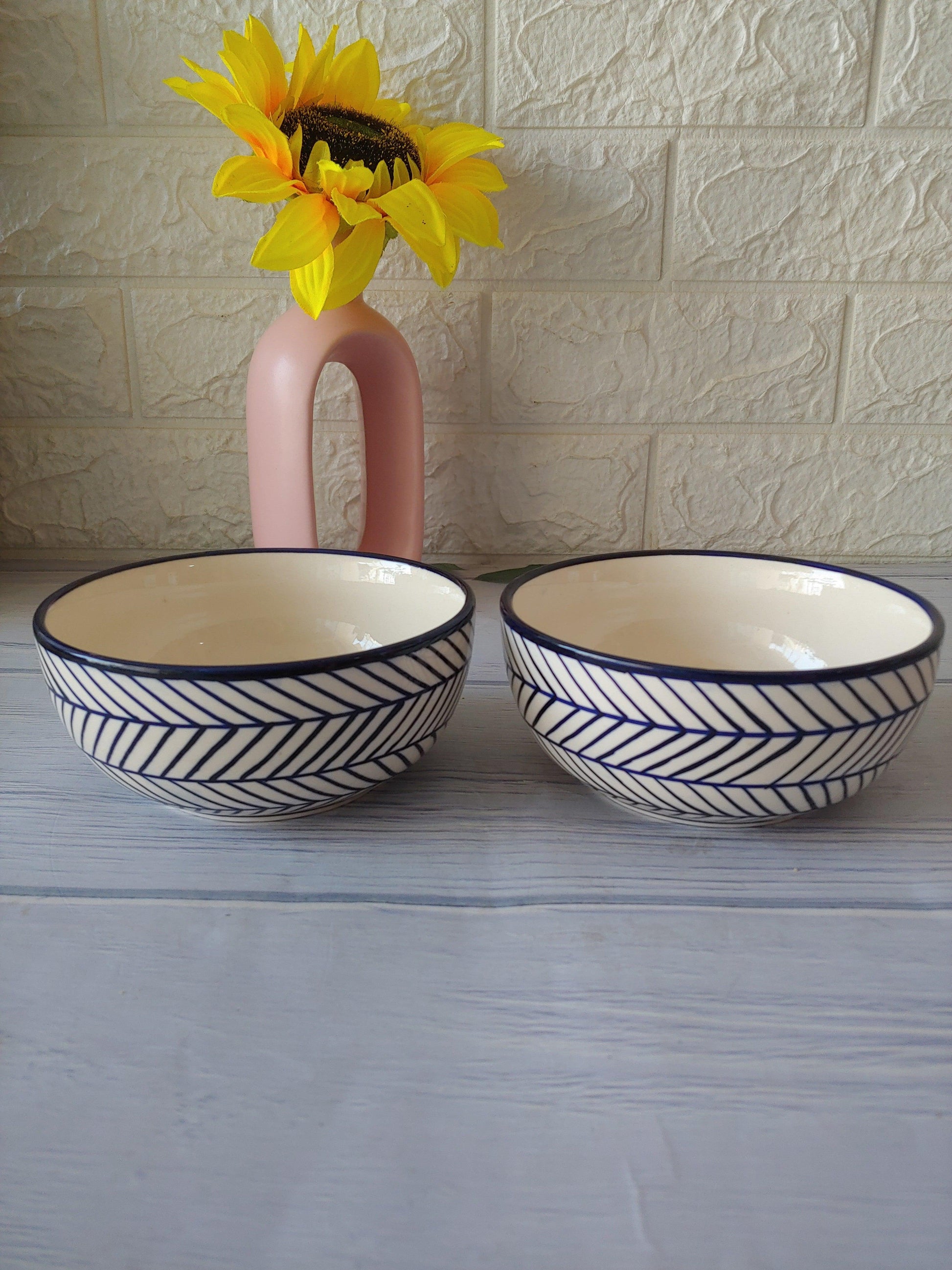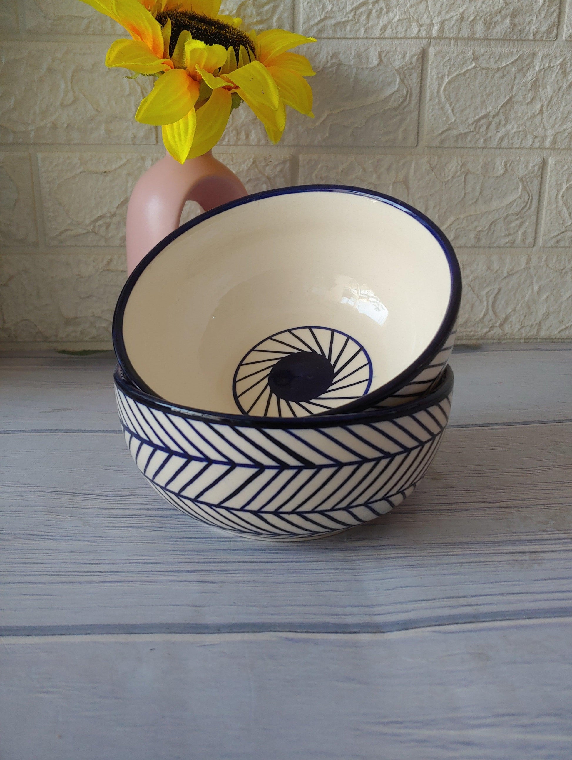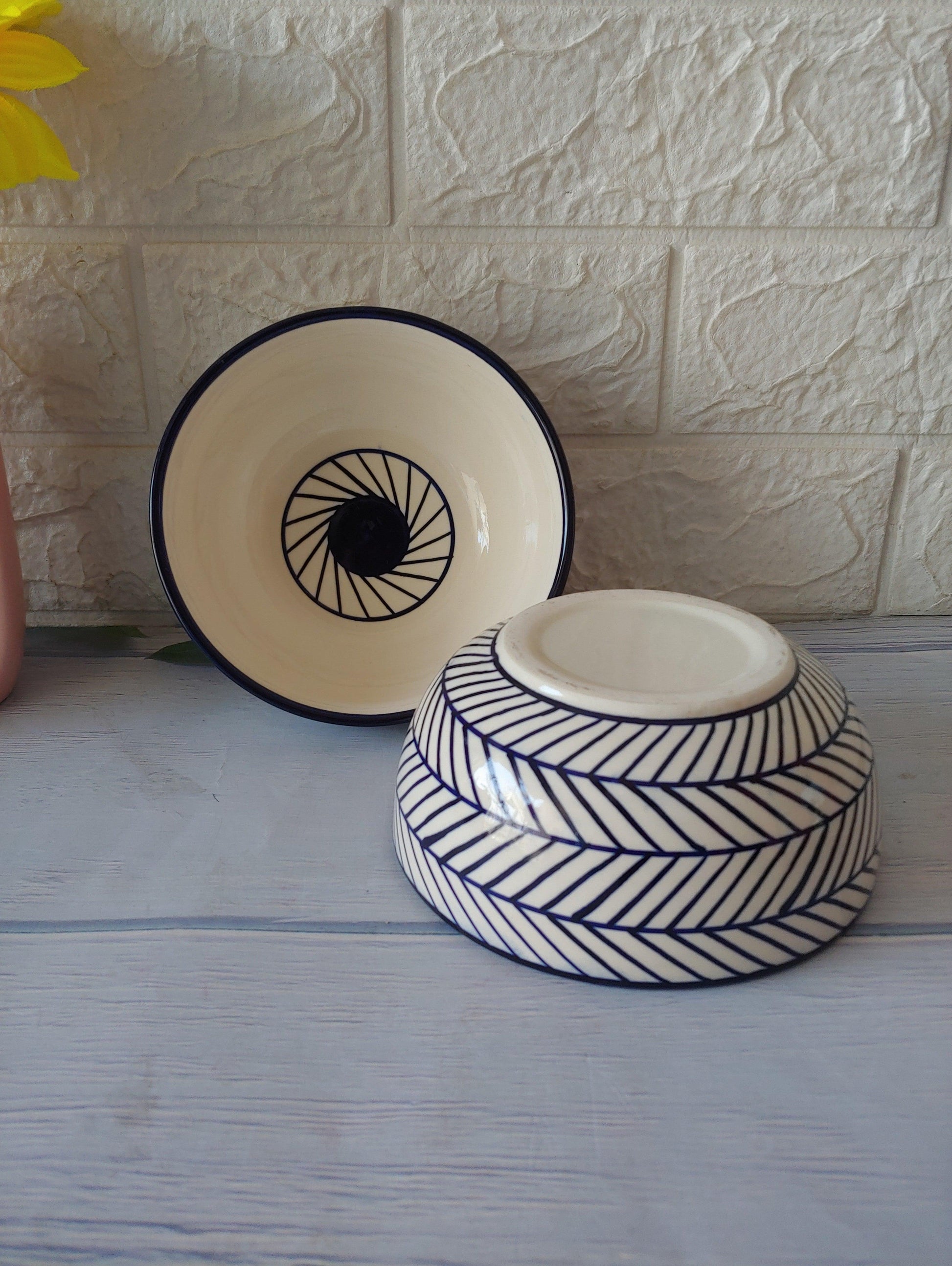 Ceremic Blue Round Abstract Bowls set of 2 : 400 ml
