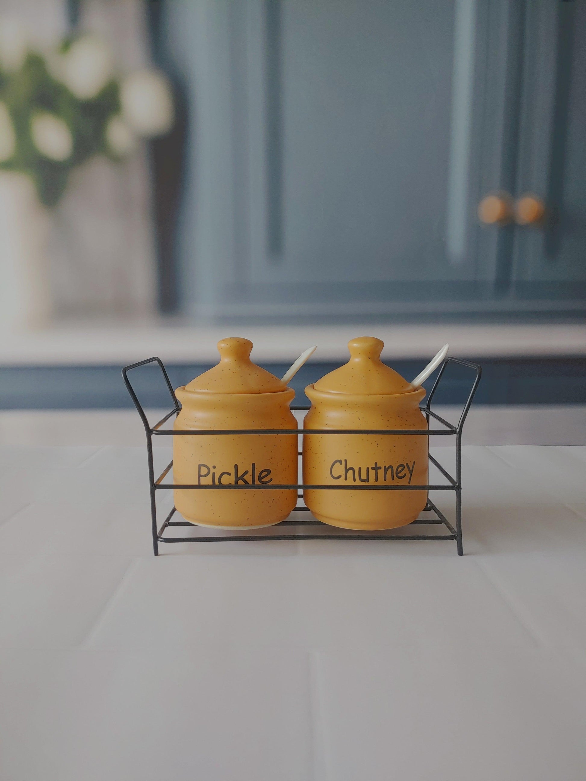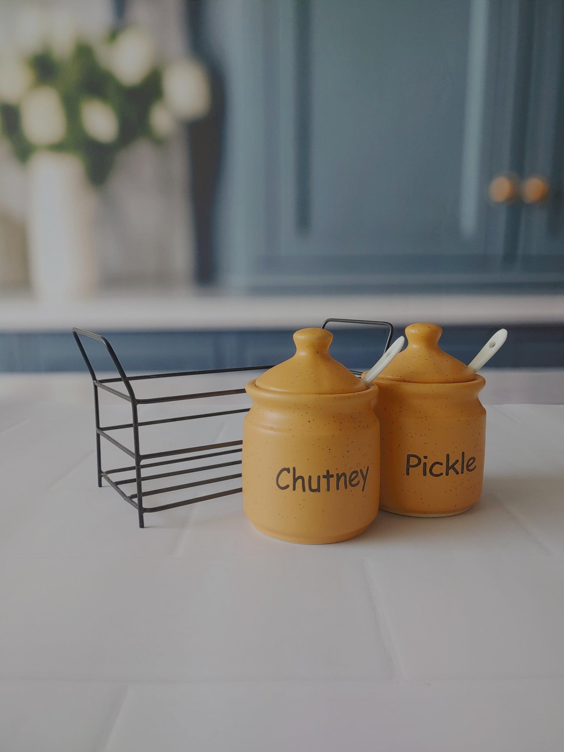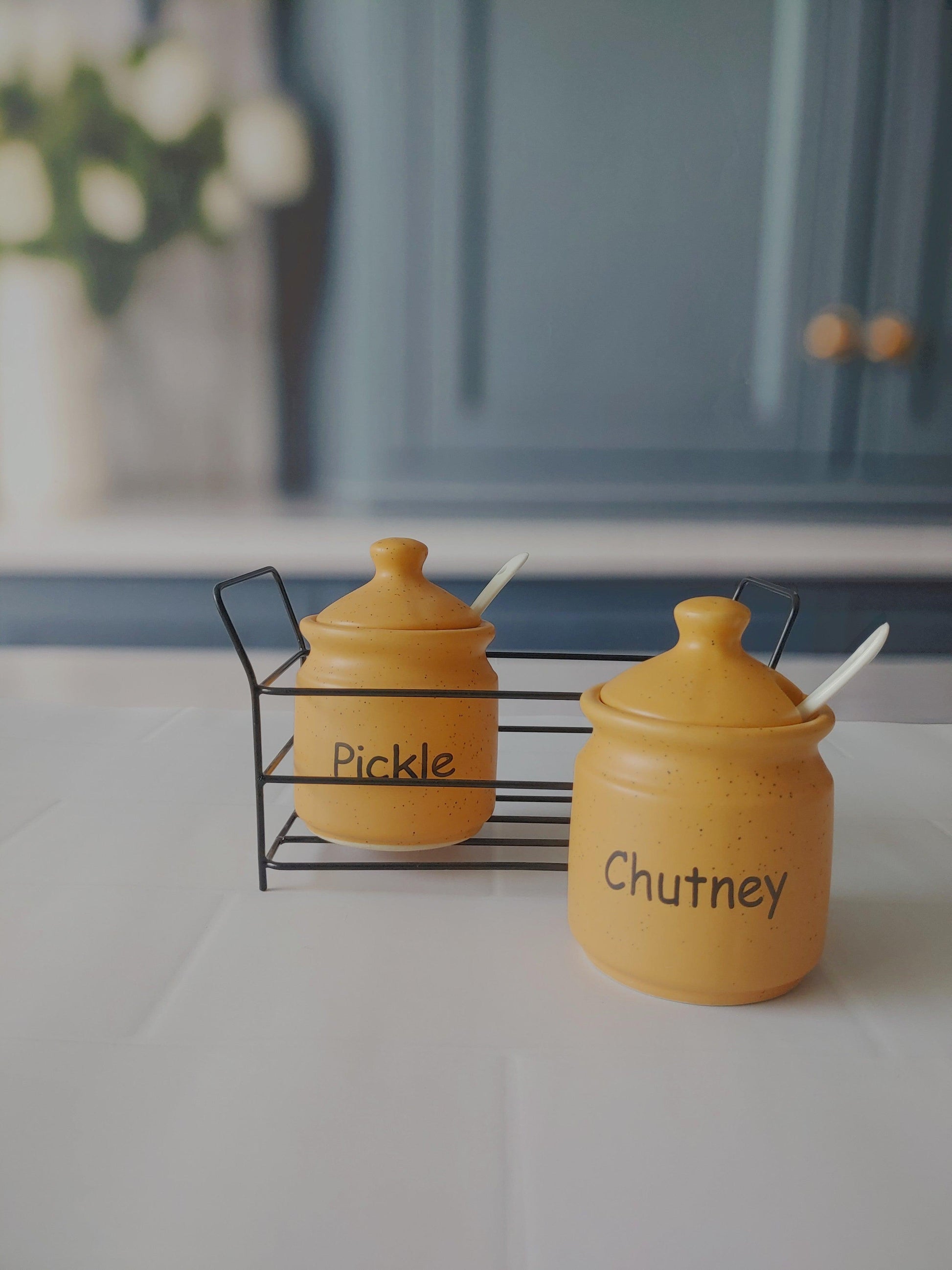 Spice Haven Ceramic Kimchi Pickle and Chutney Jar with Metal stand