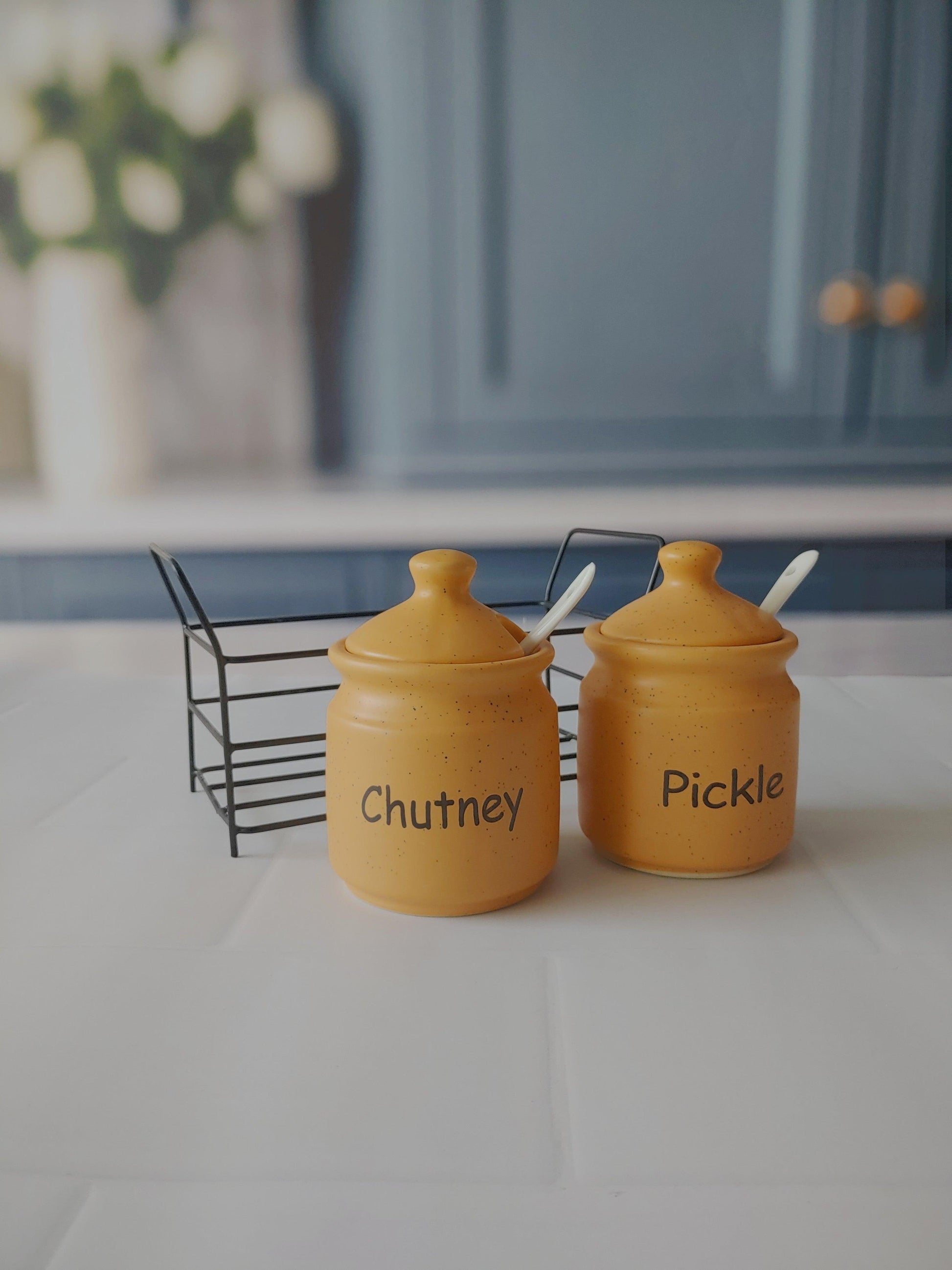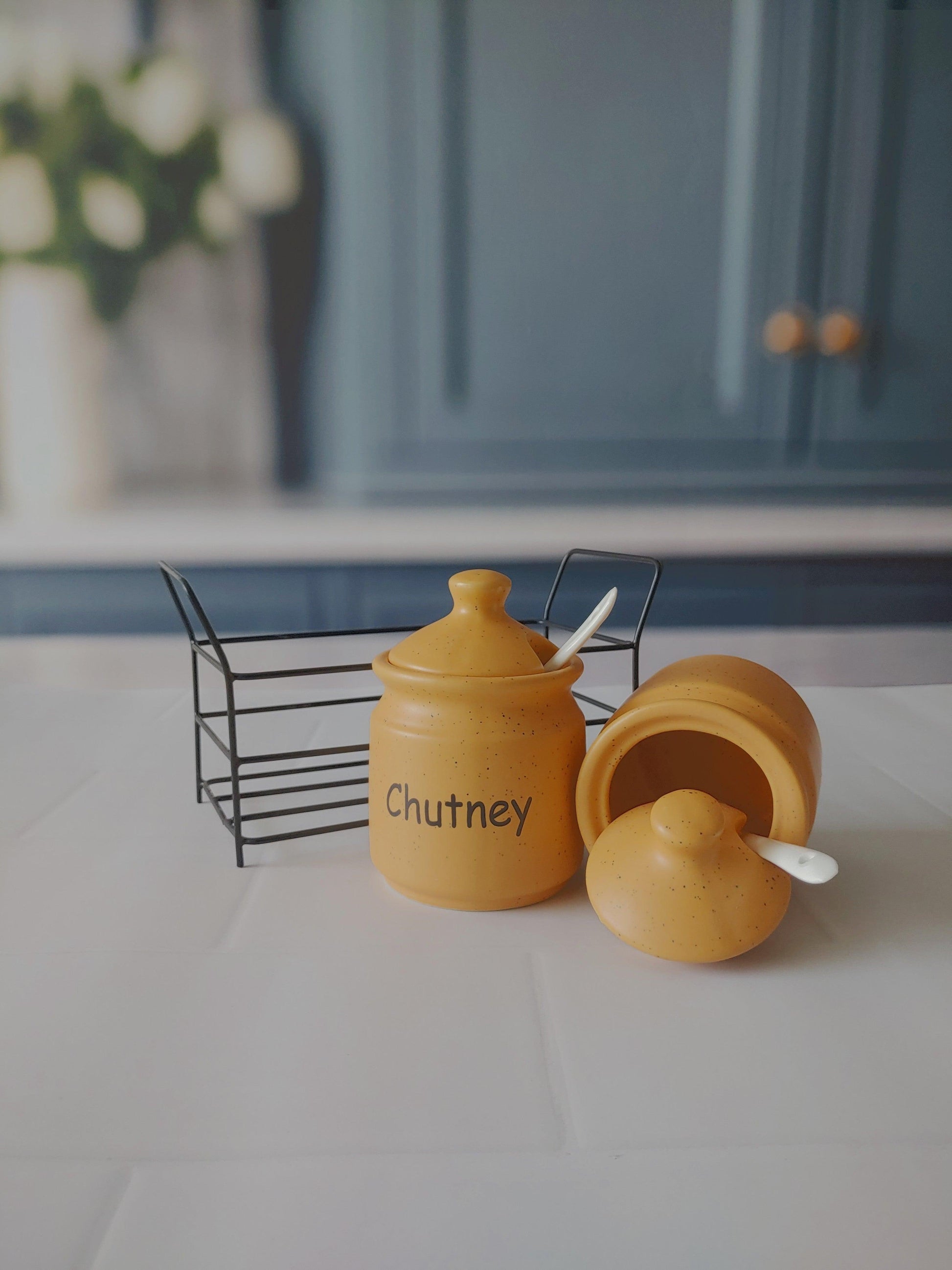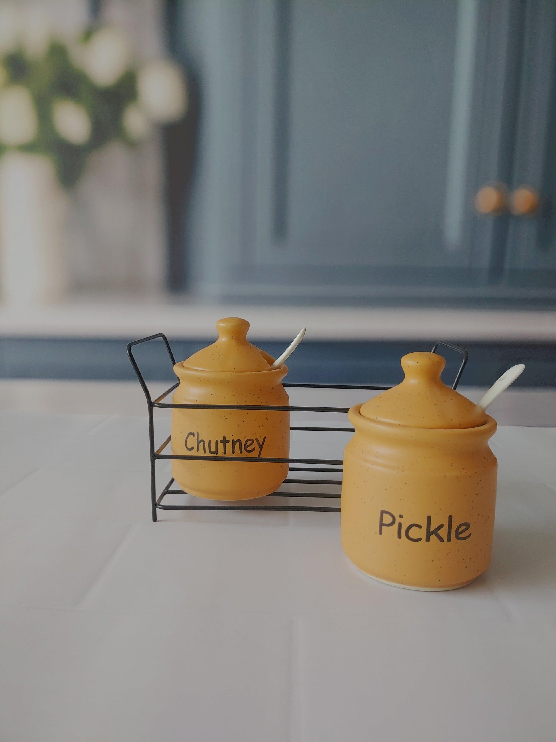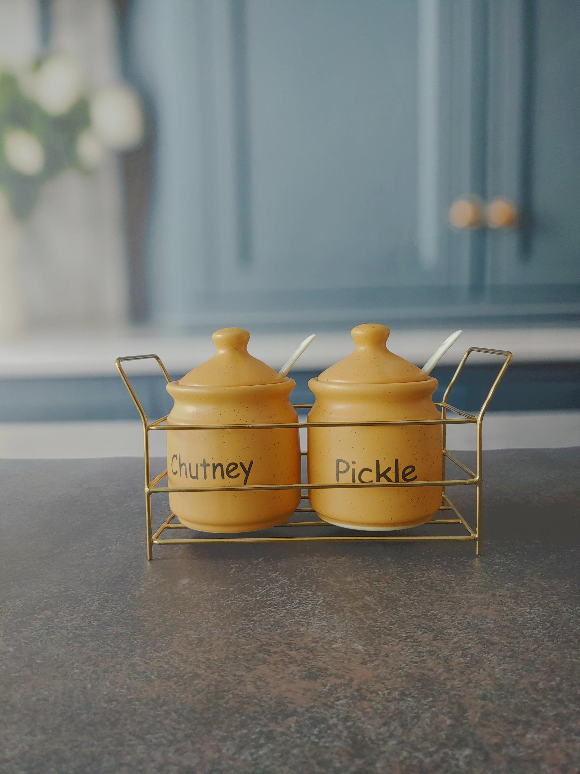 Spice Haven Ceramic Kimchi Pickle and Chutney Jar with Metal stand
