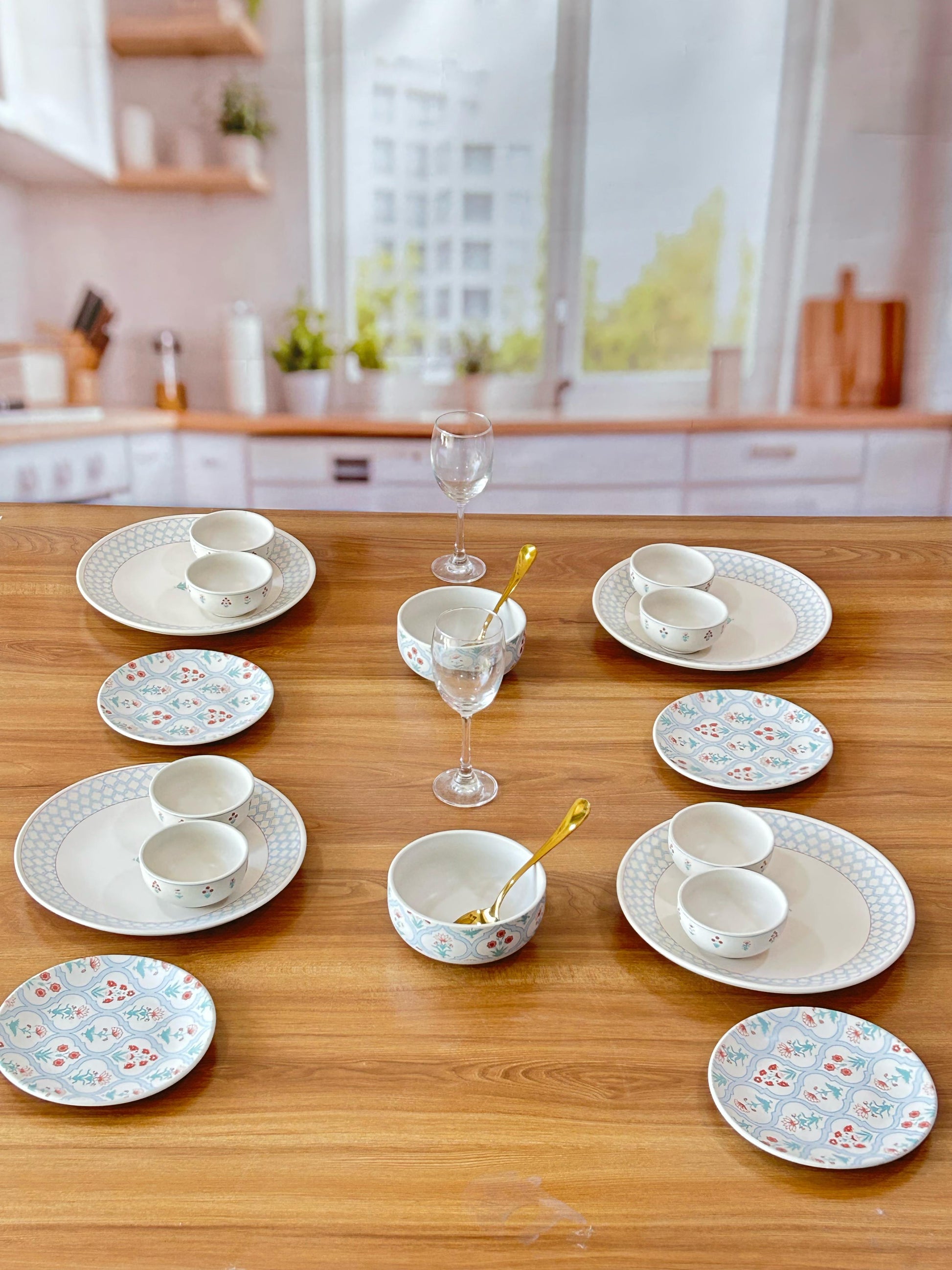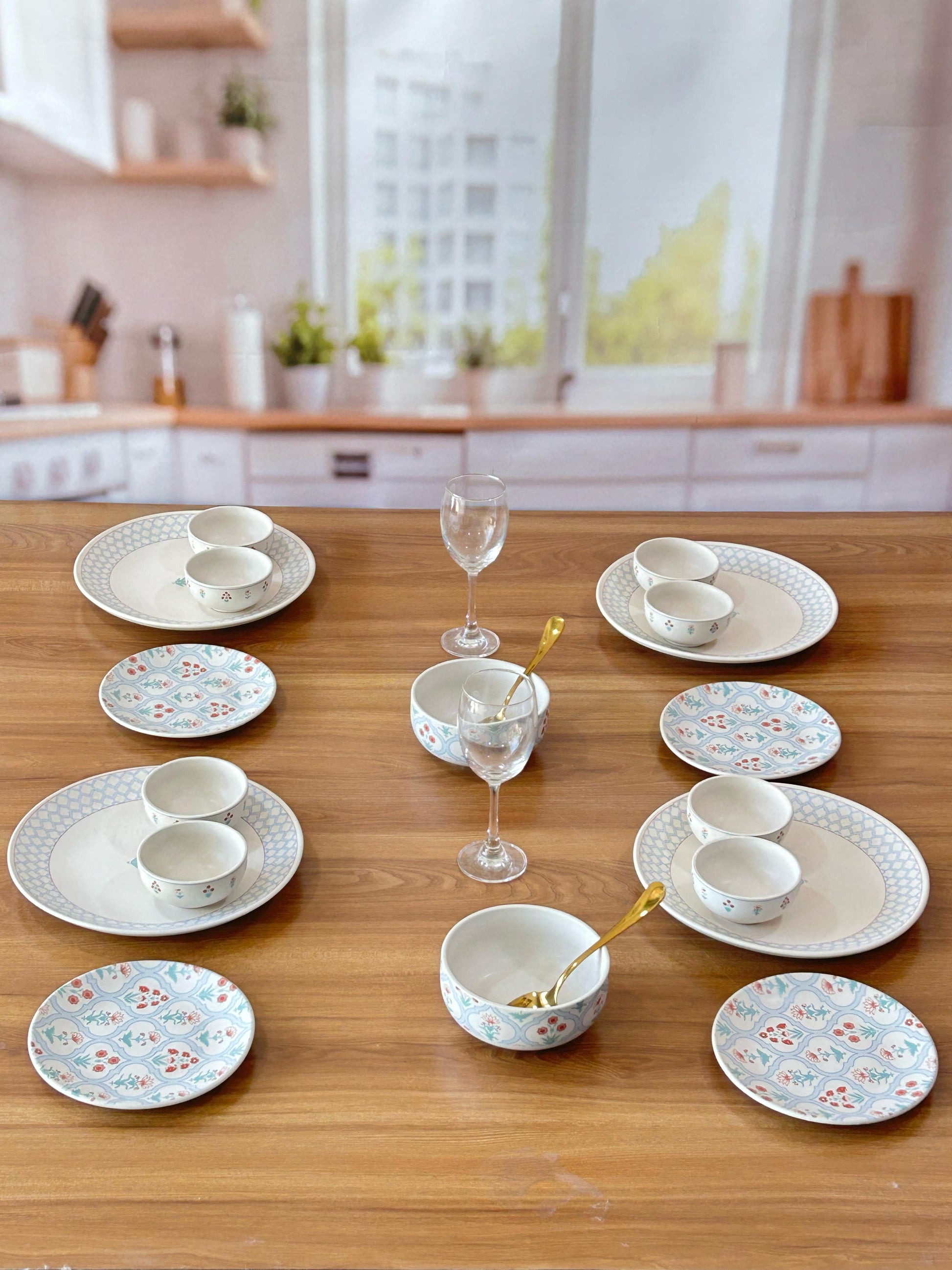 This exquisite set features two-tone ceramic bowls and plates in calming pastel hues, adding a touch of modern elegance to every meal.....