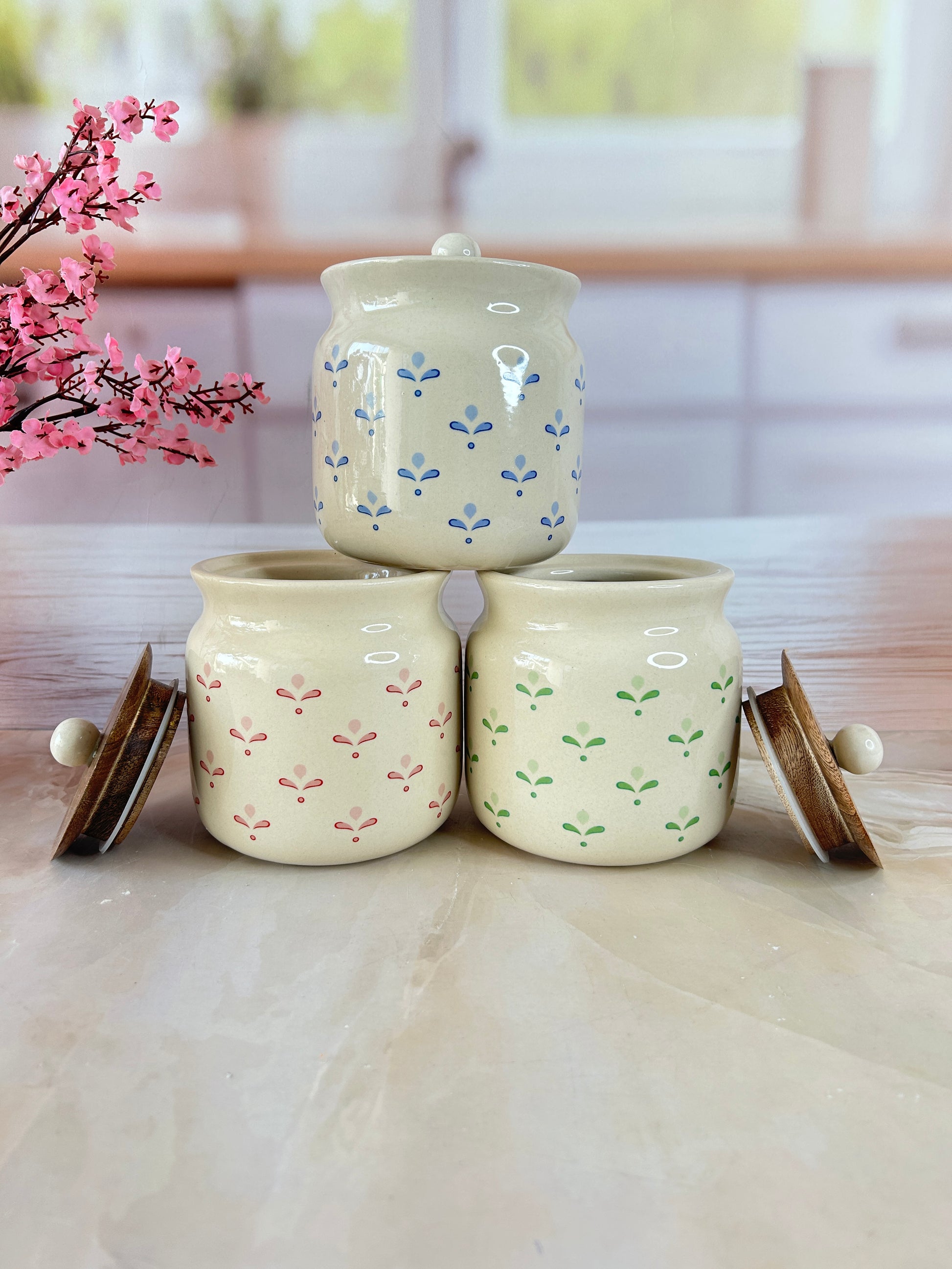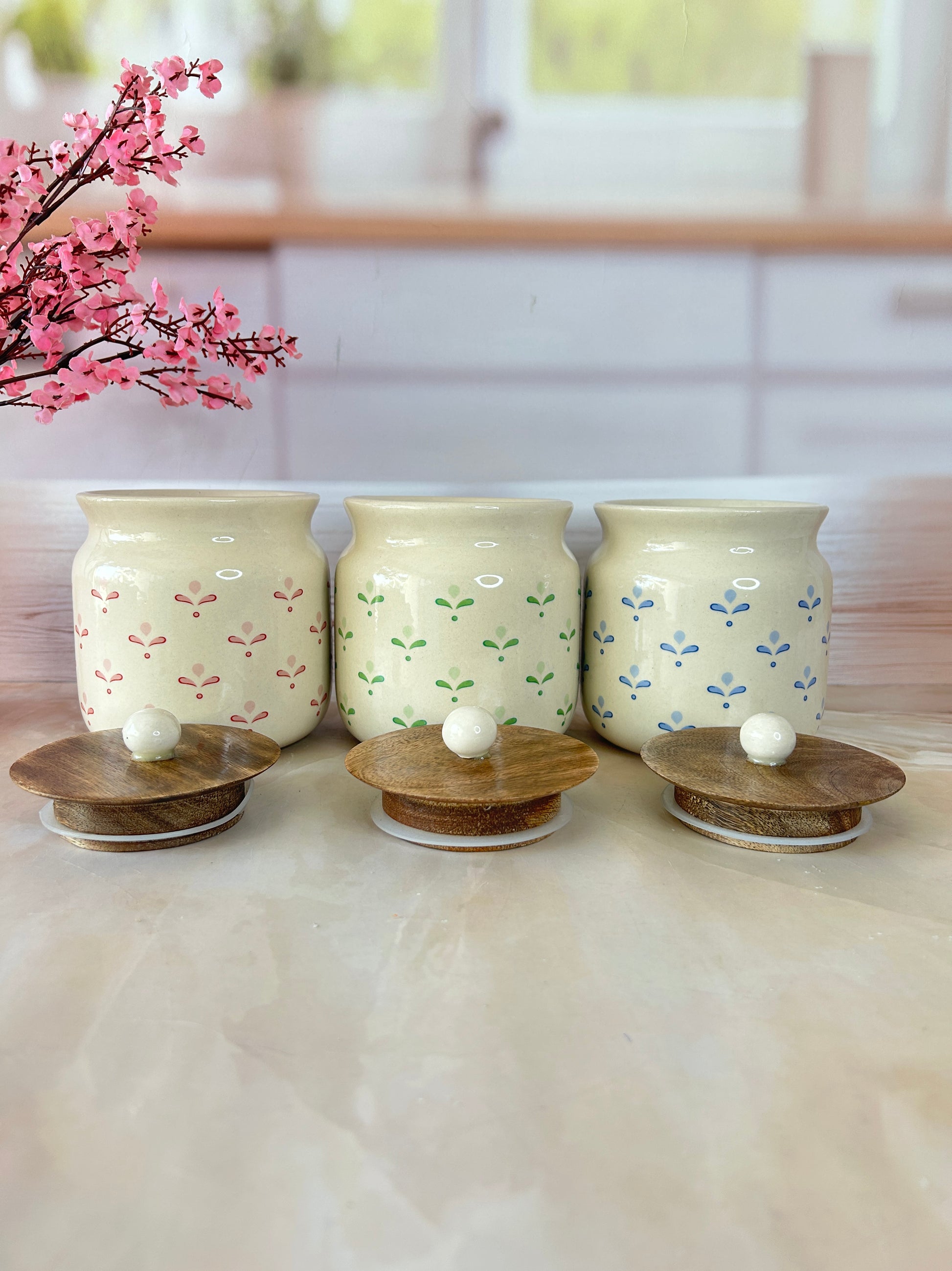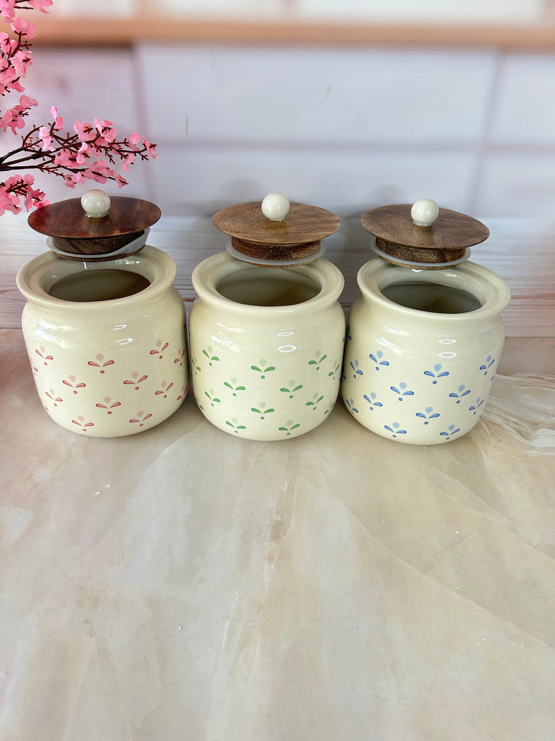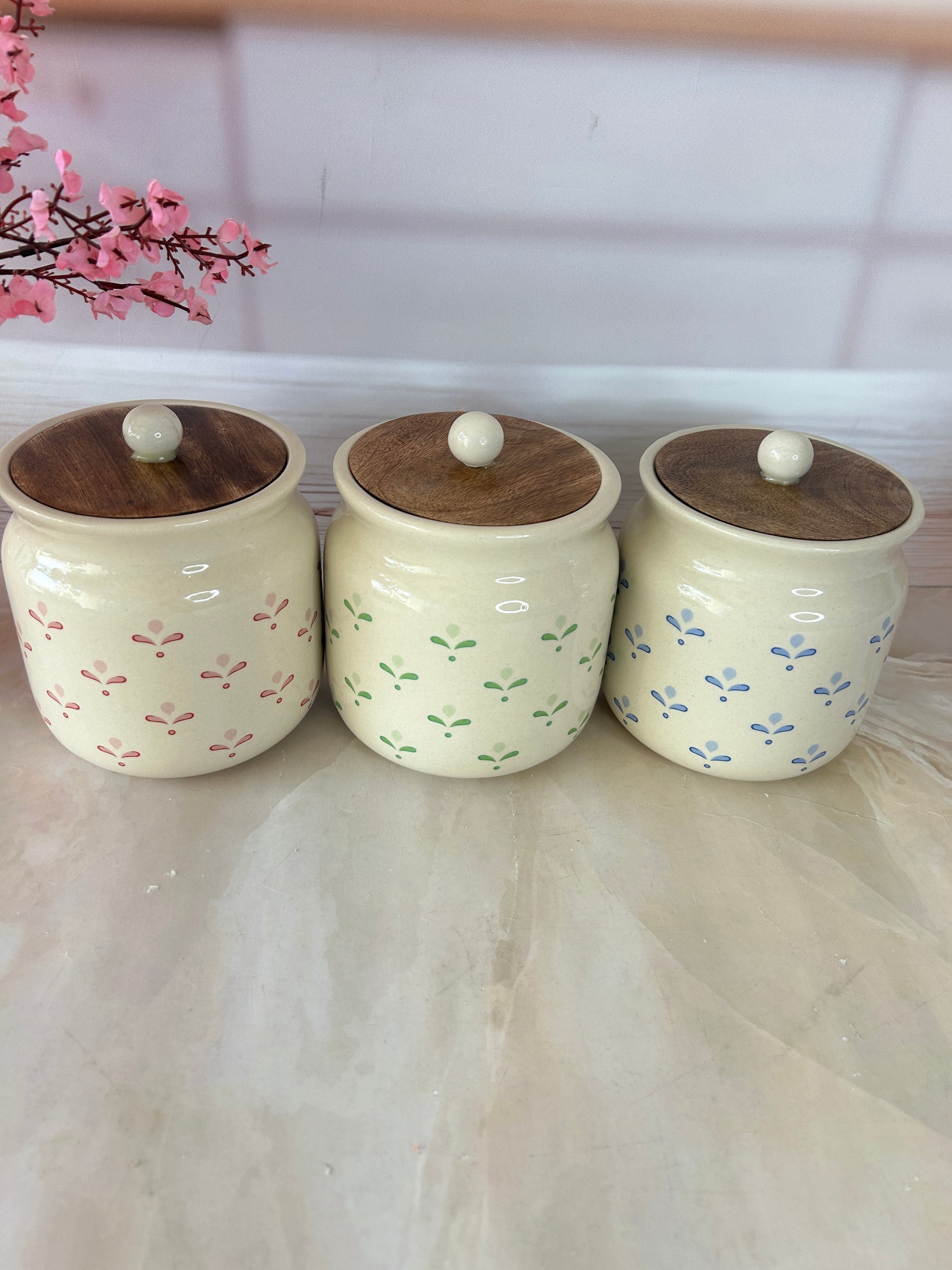 Daisy Flower Colour Sweet Home Airtight Matka Solid Ceremic Canisters (500ml)