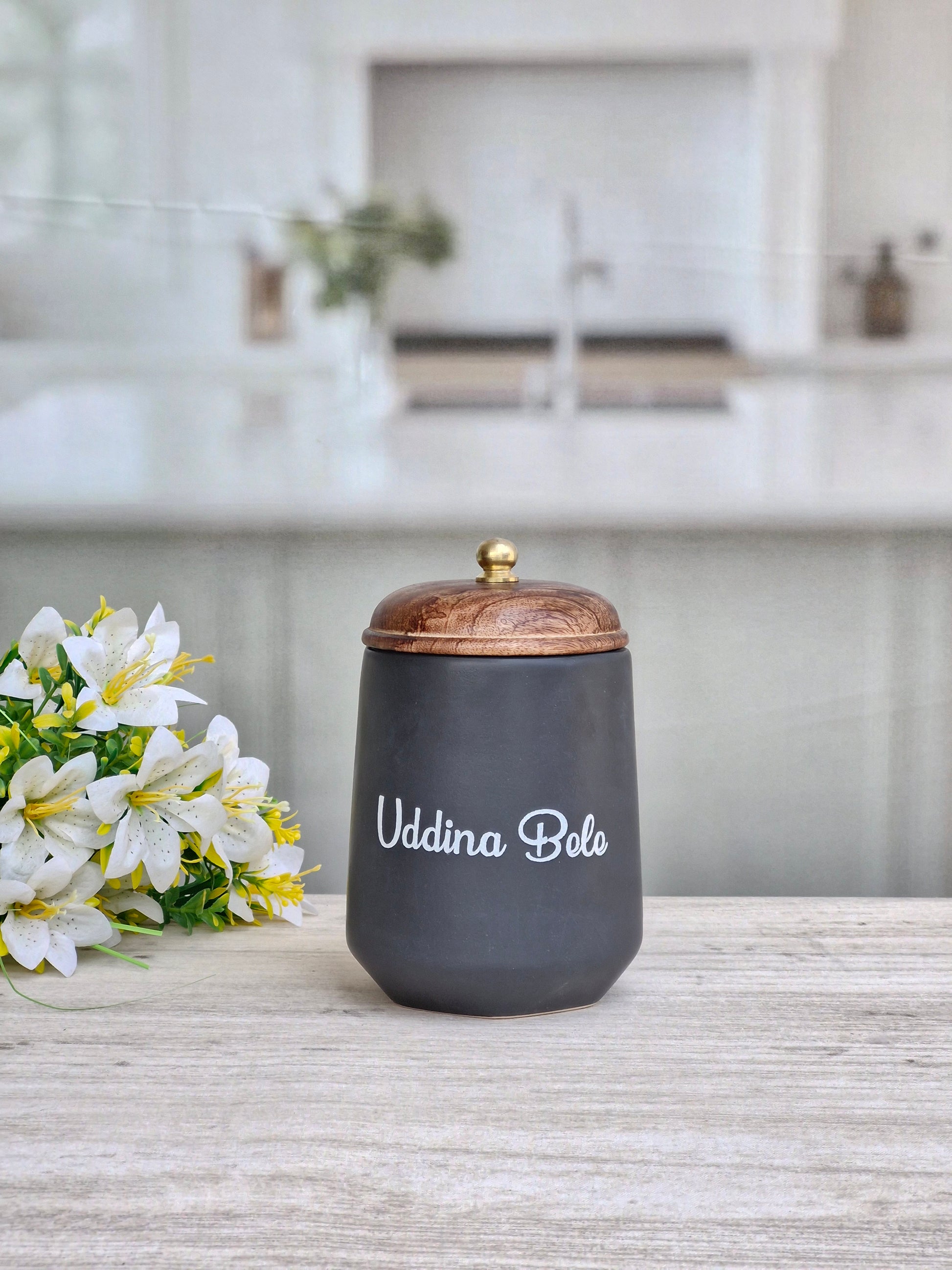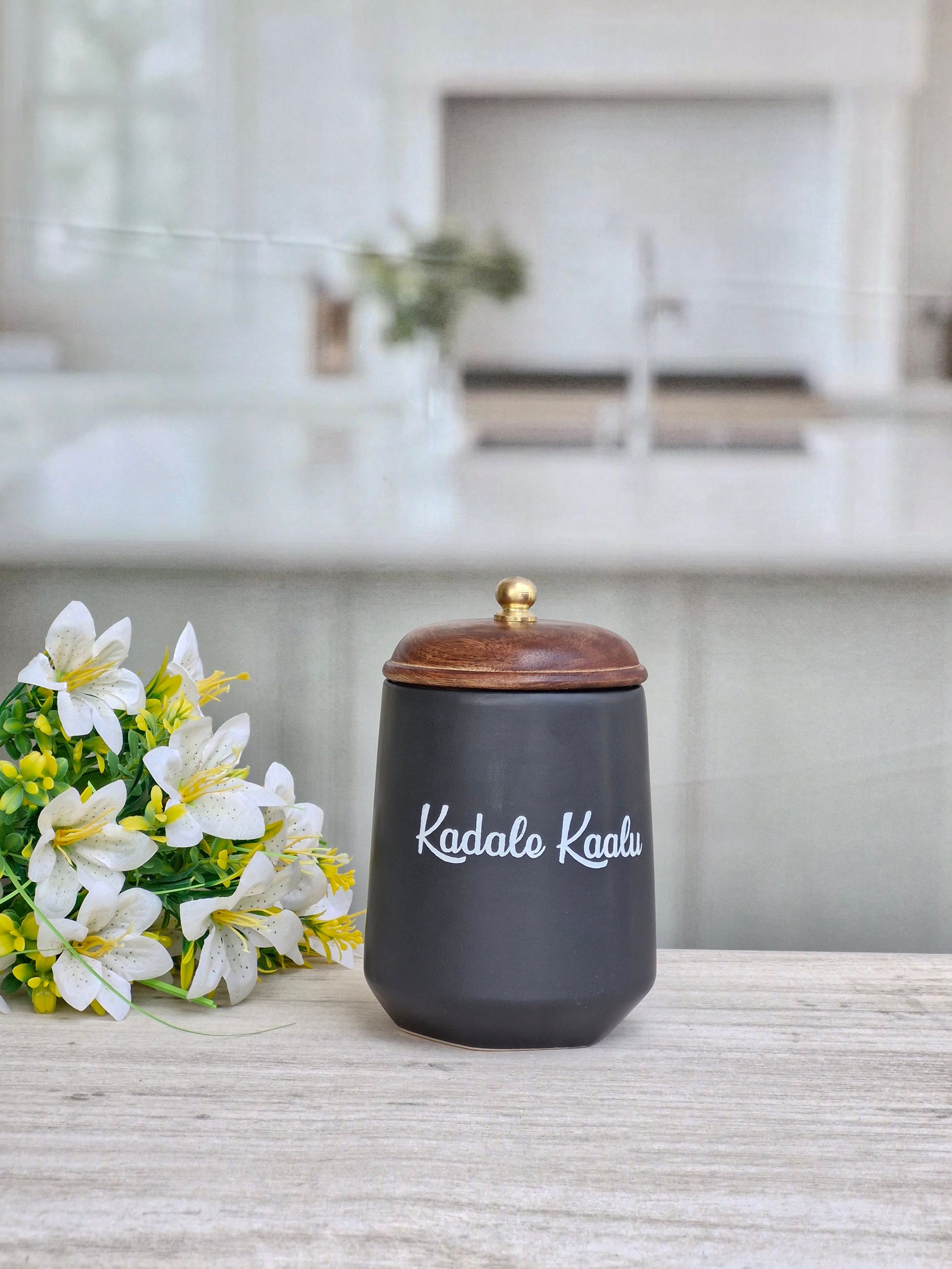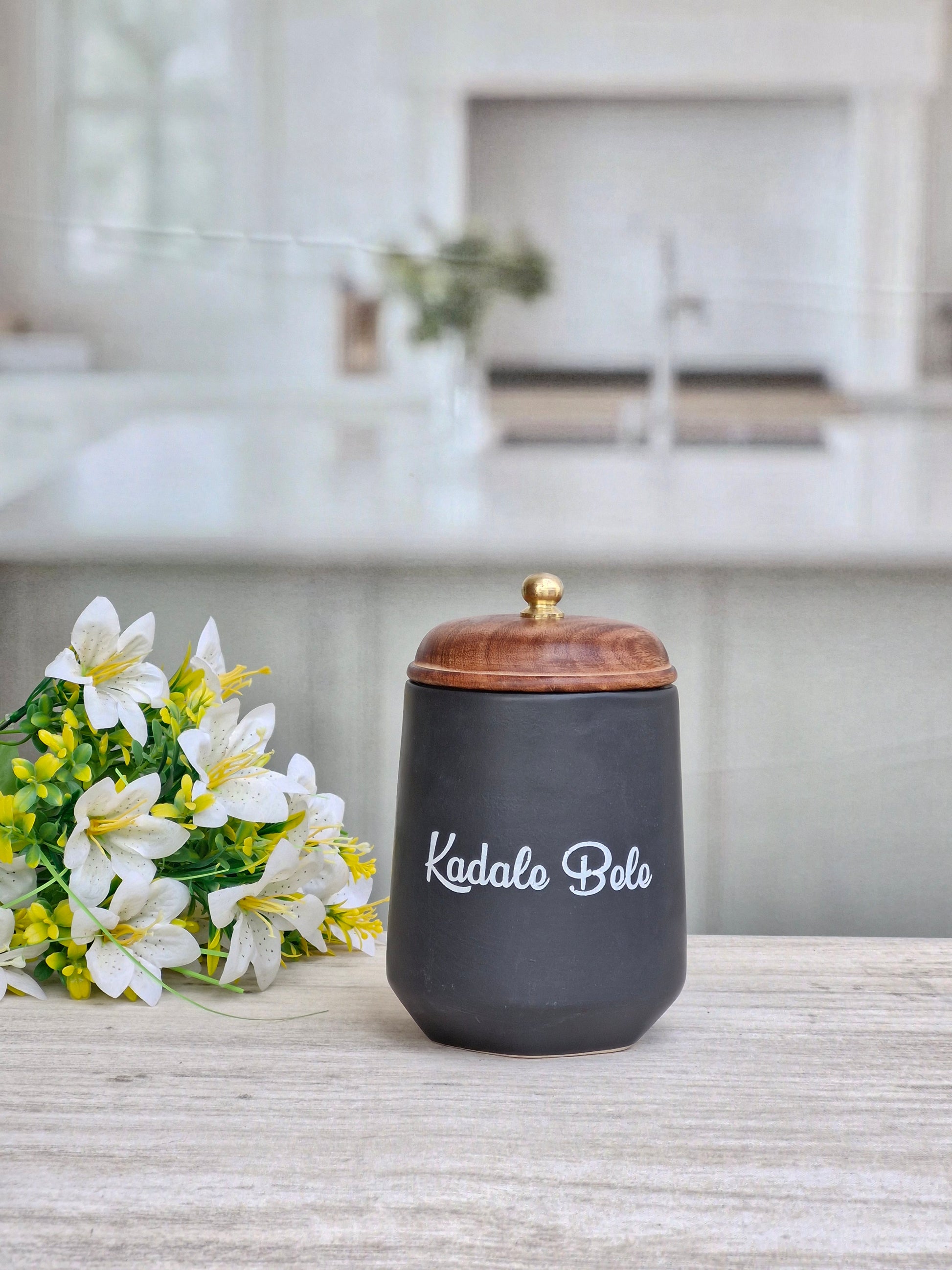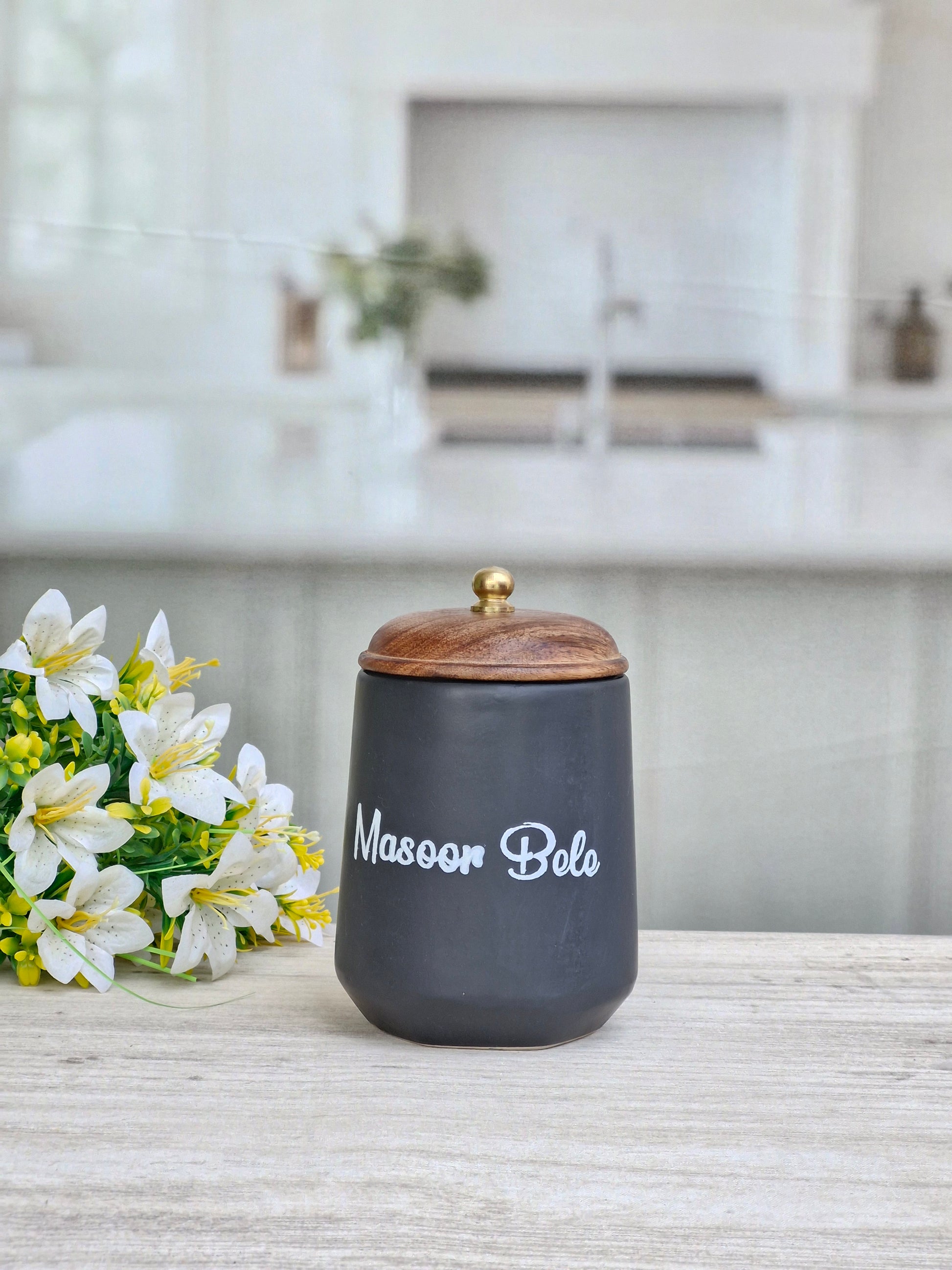 Flavor Spice Family Fusion Dal Delight Airtight Ceramic(1kg) Container with wooden Lid- Kannada