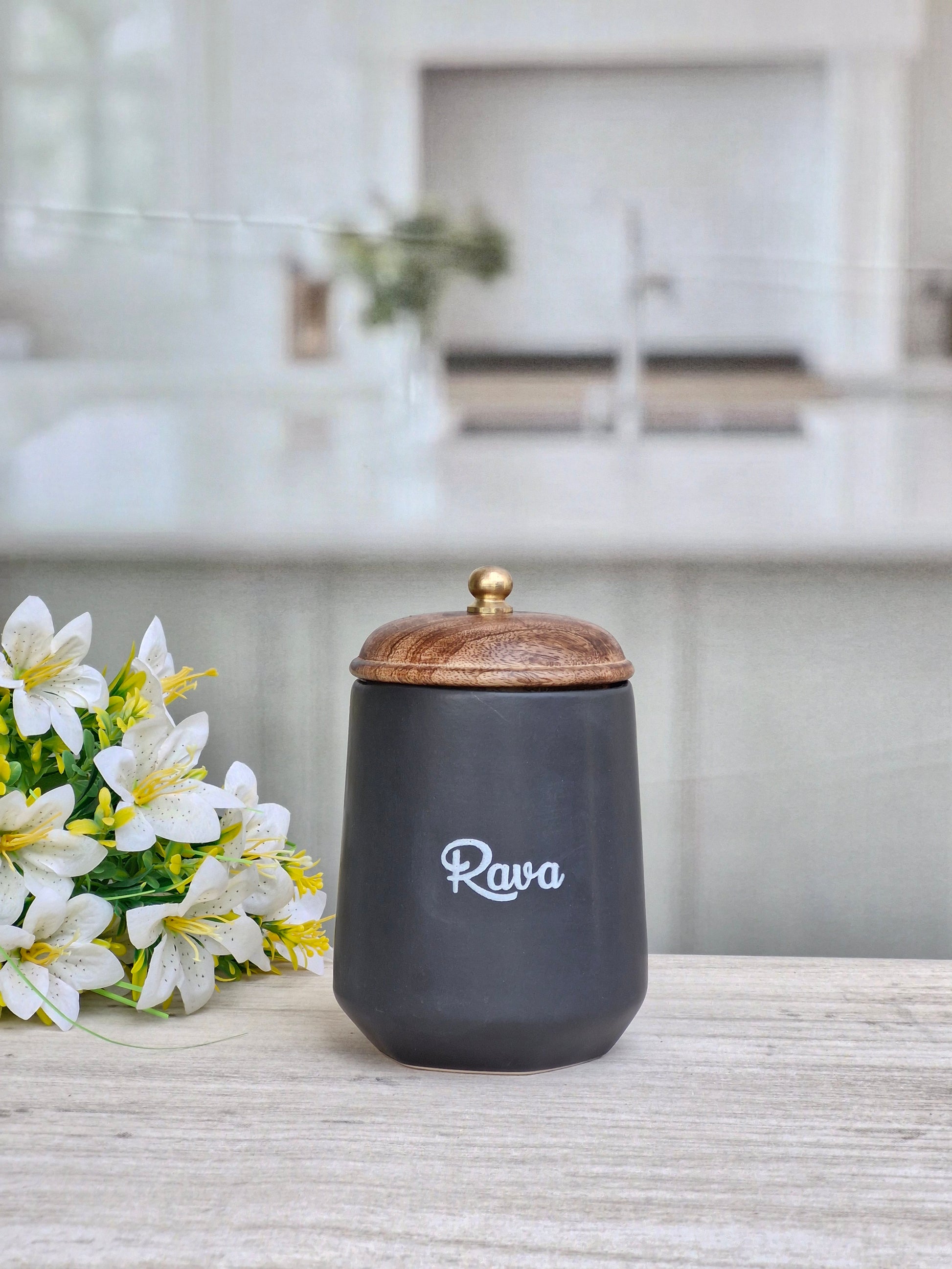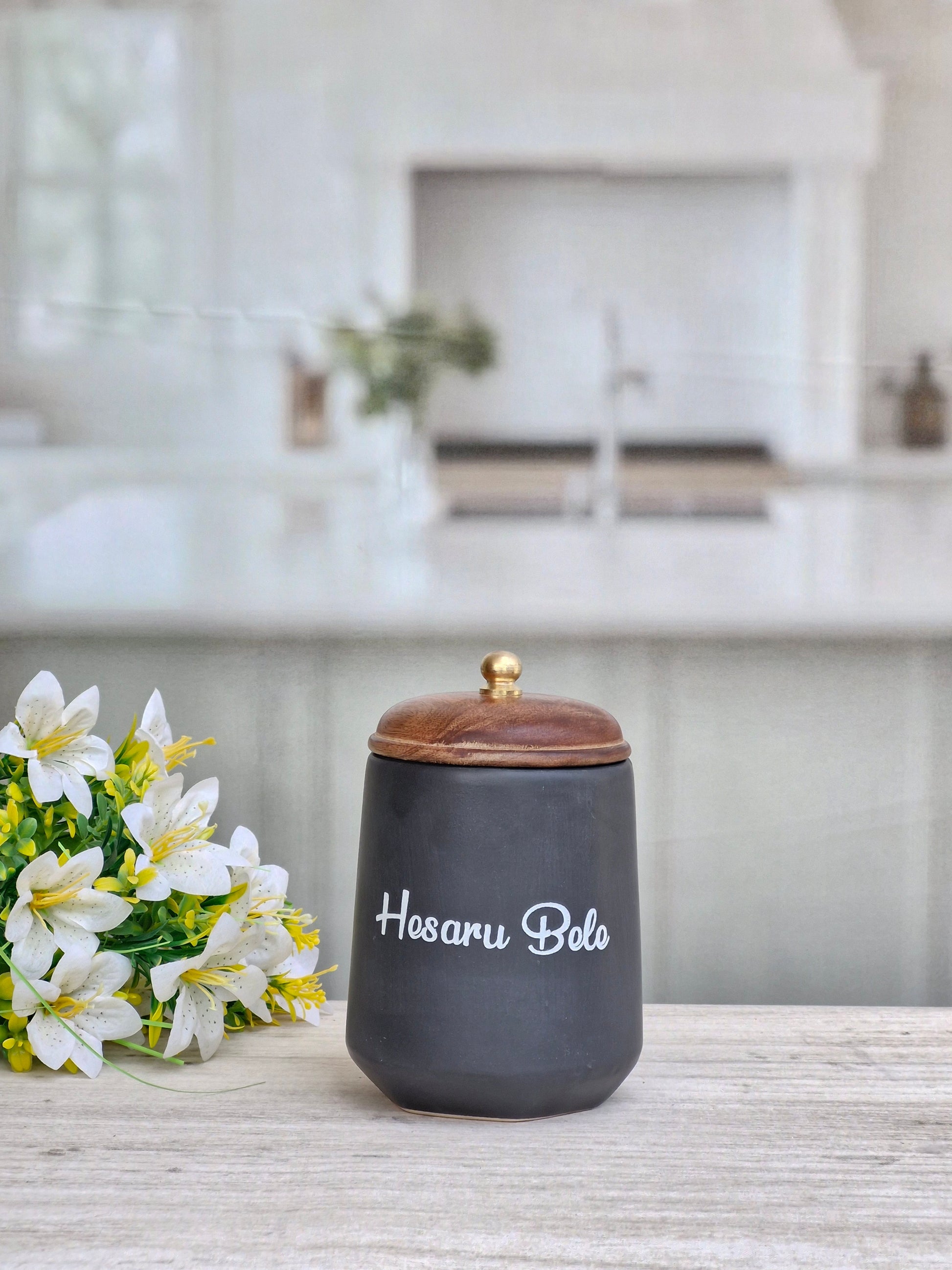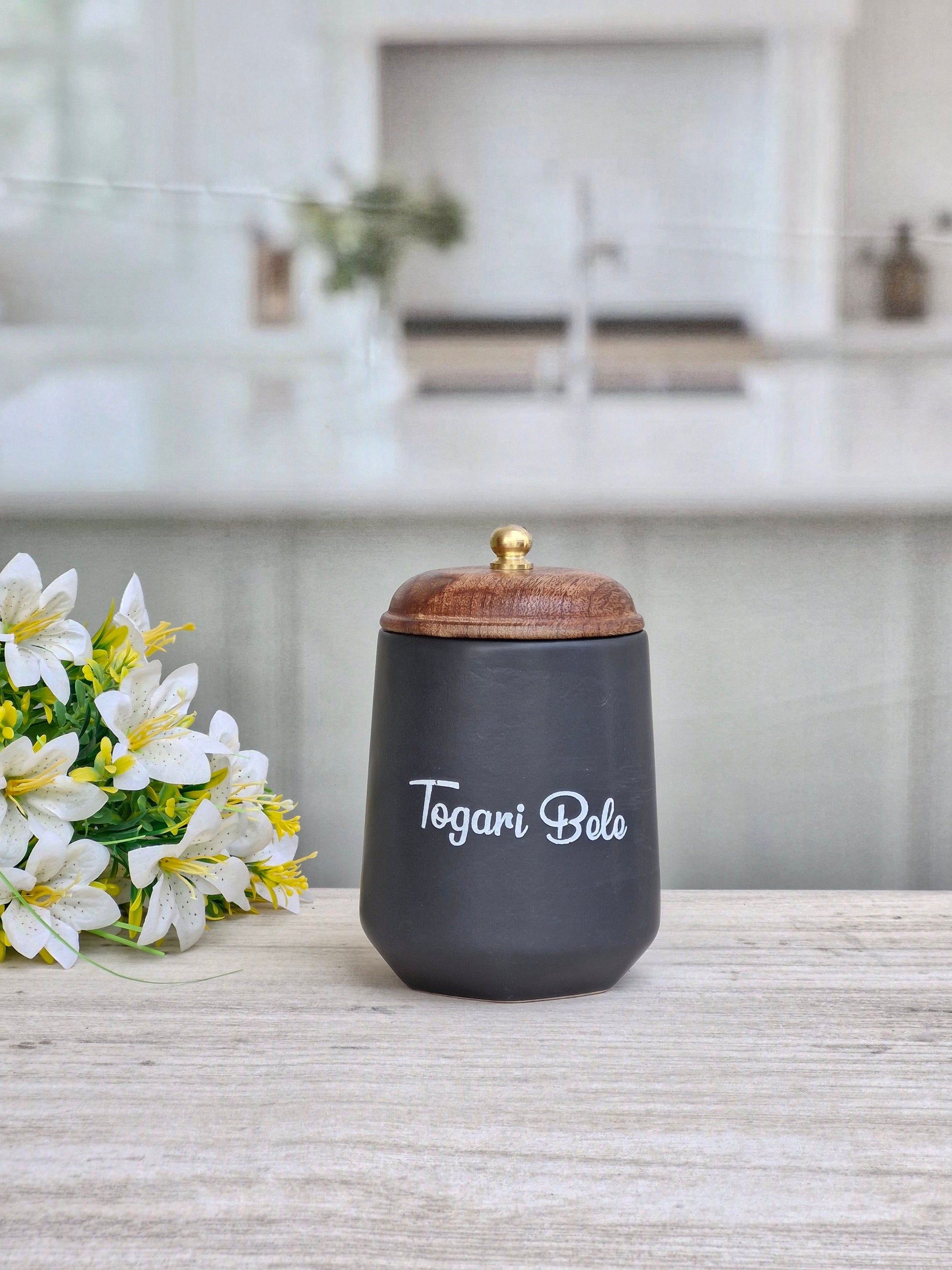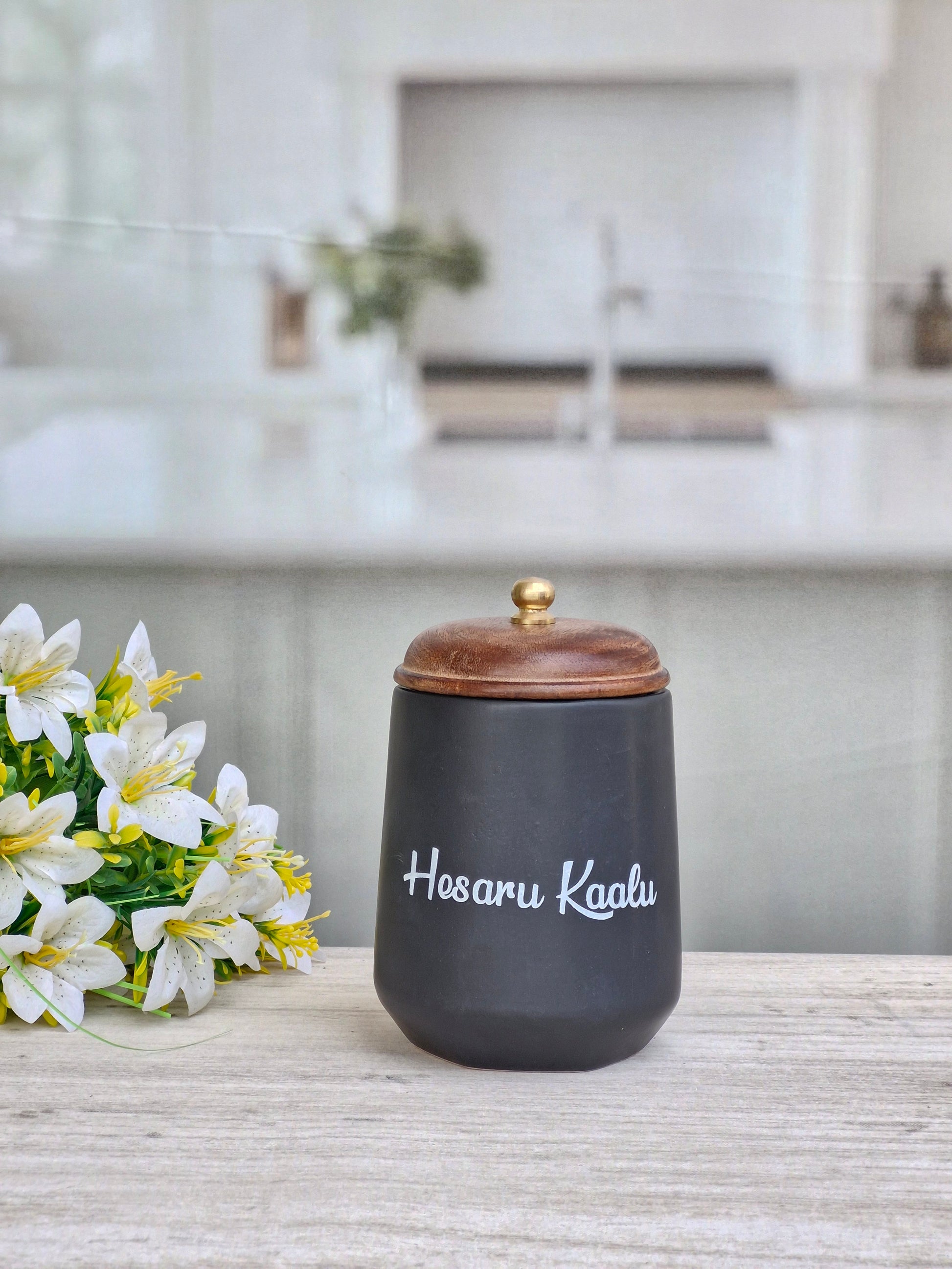 Flavor Spice Family Fusion Dal Delight Airtight Ceramic(1kg) Container with wooden Lid- Kannada