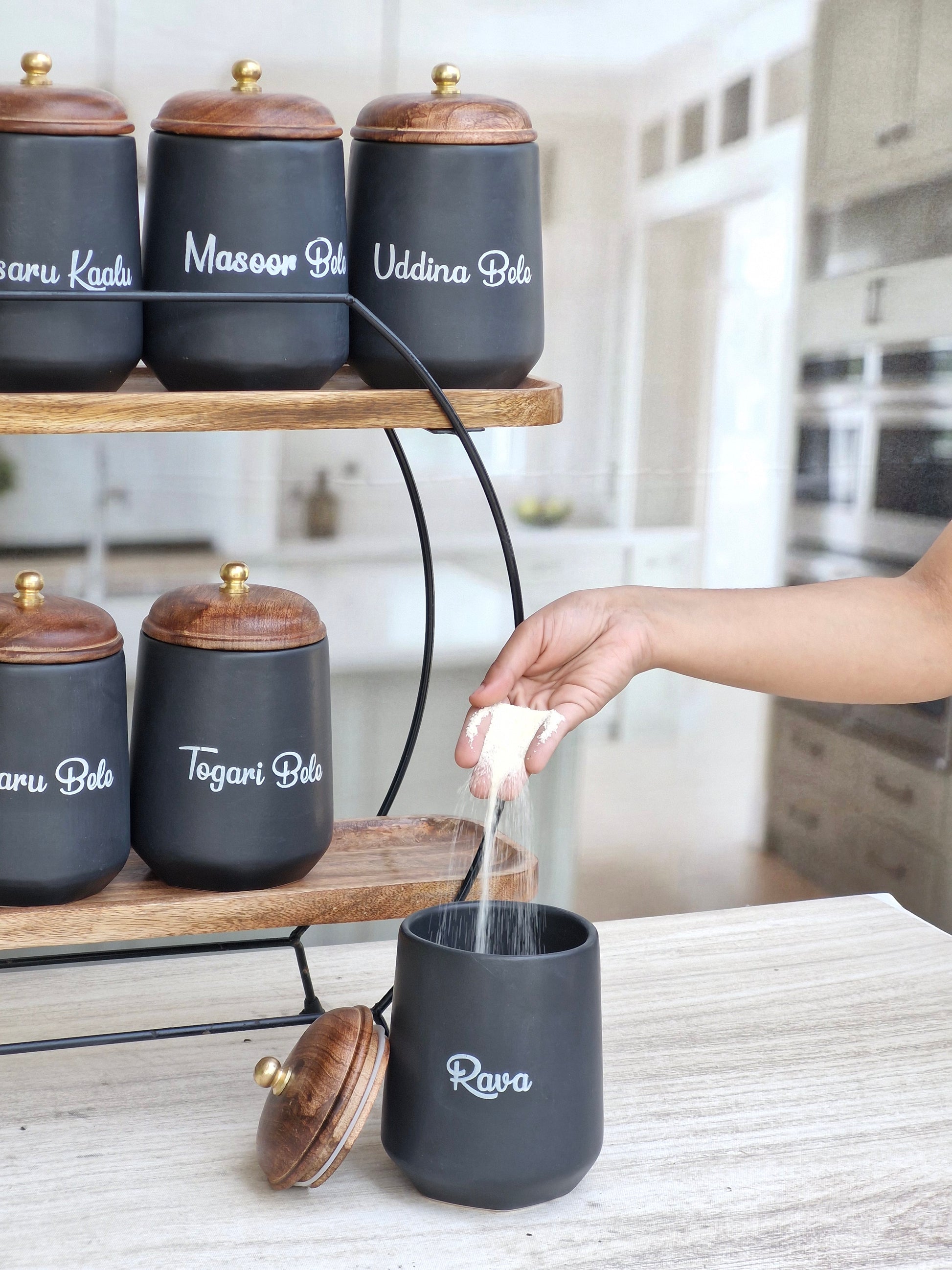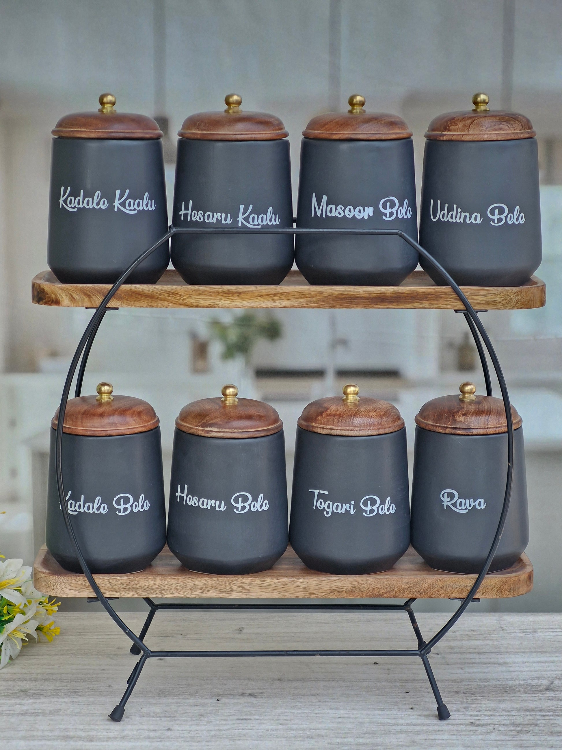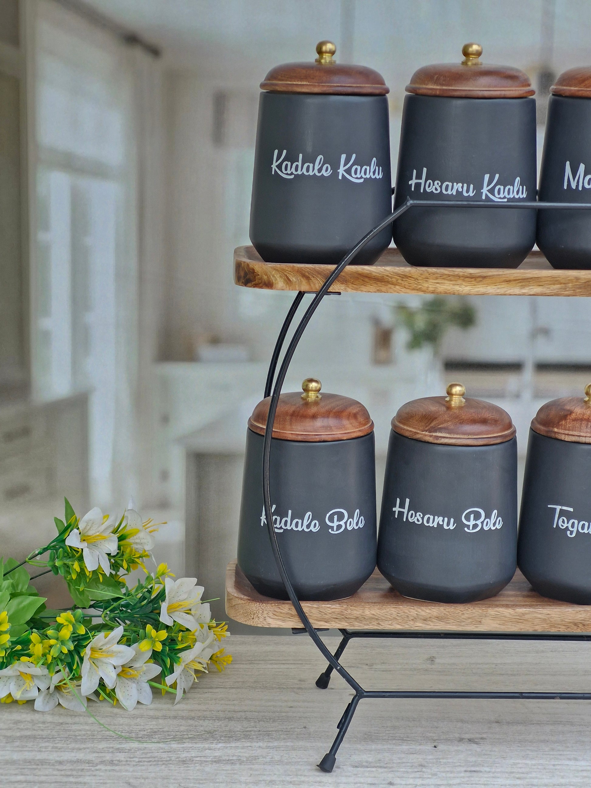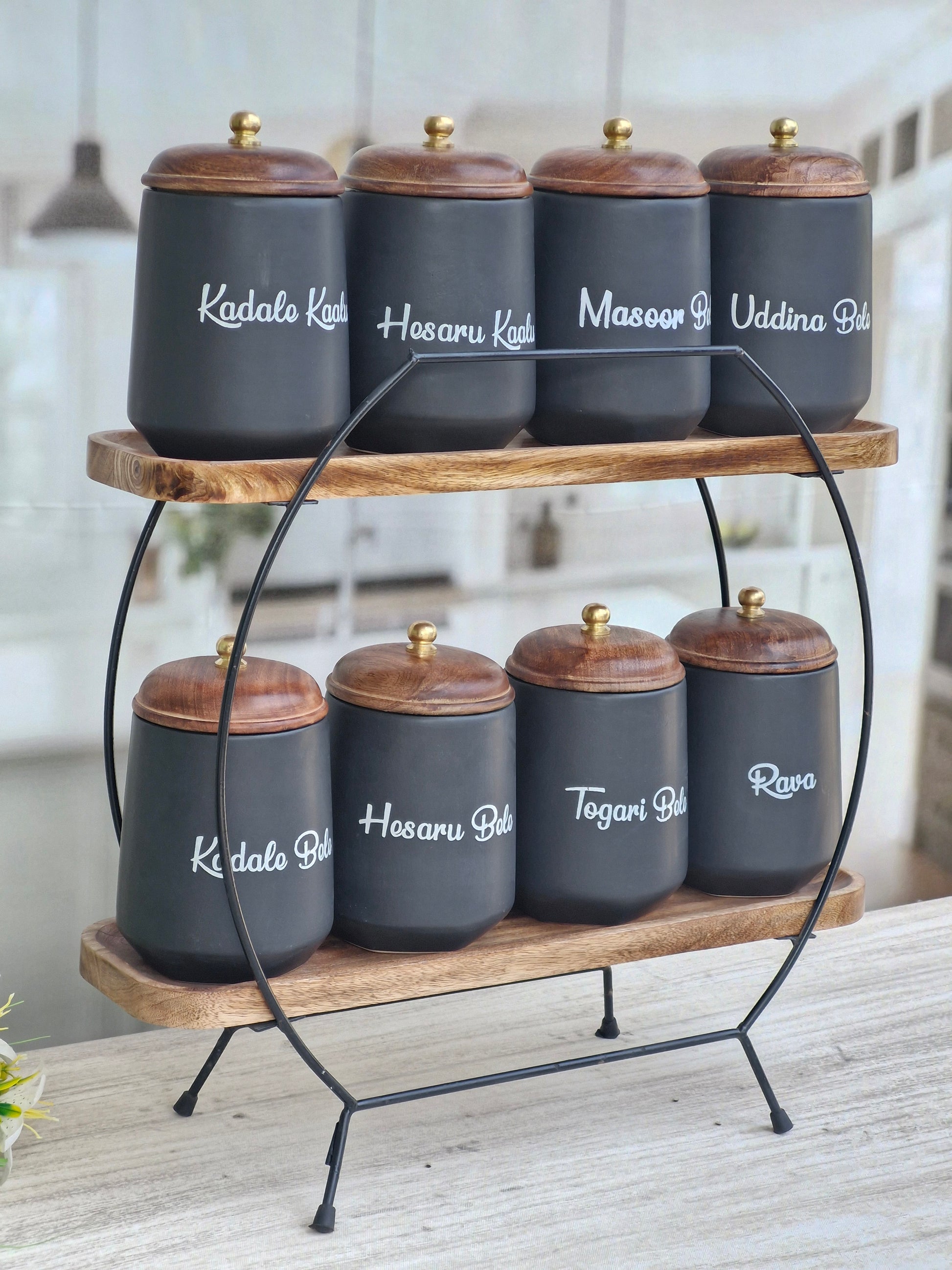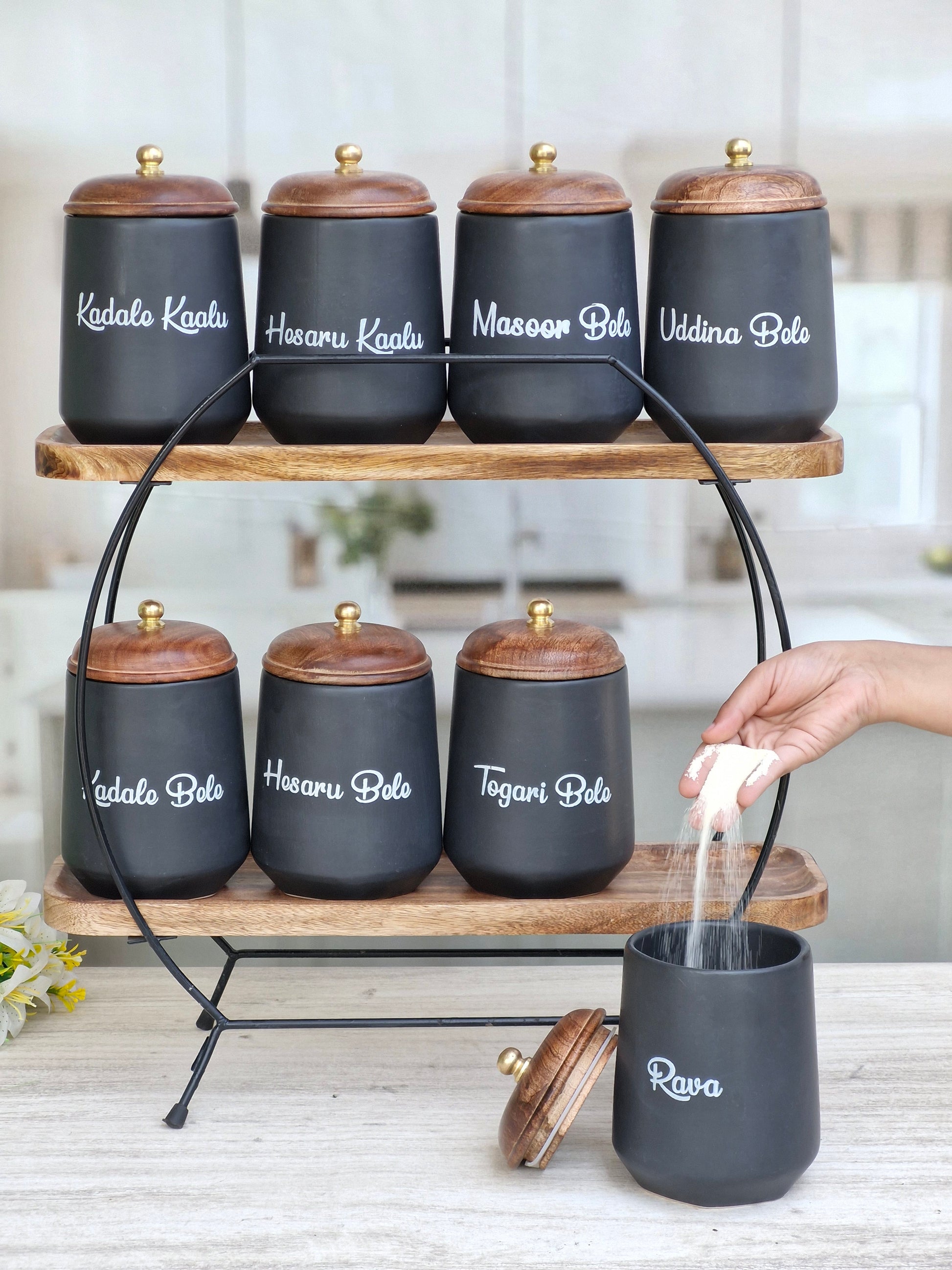 Flavor Spice Family Fusion Dal Delight Airtight Ceramic(1kg) Container with wooden Lid- Kannada