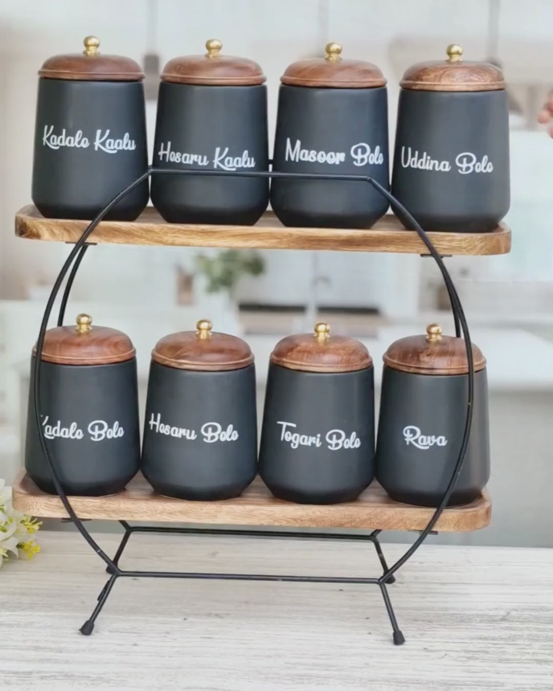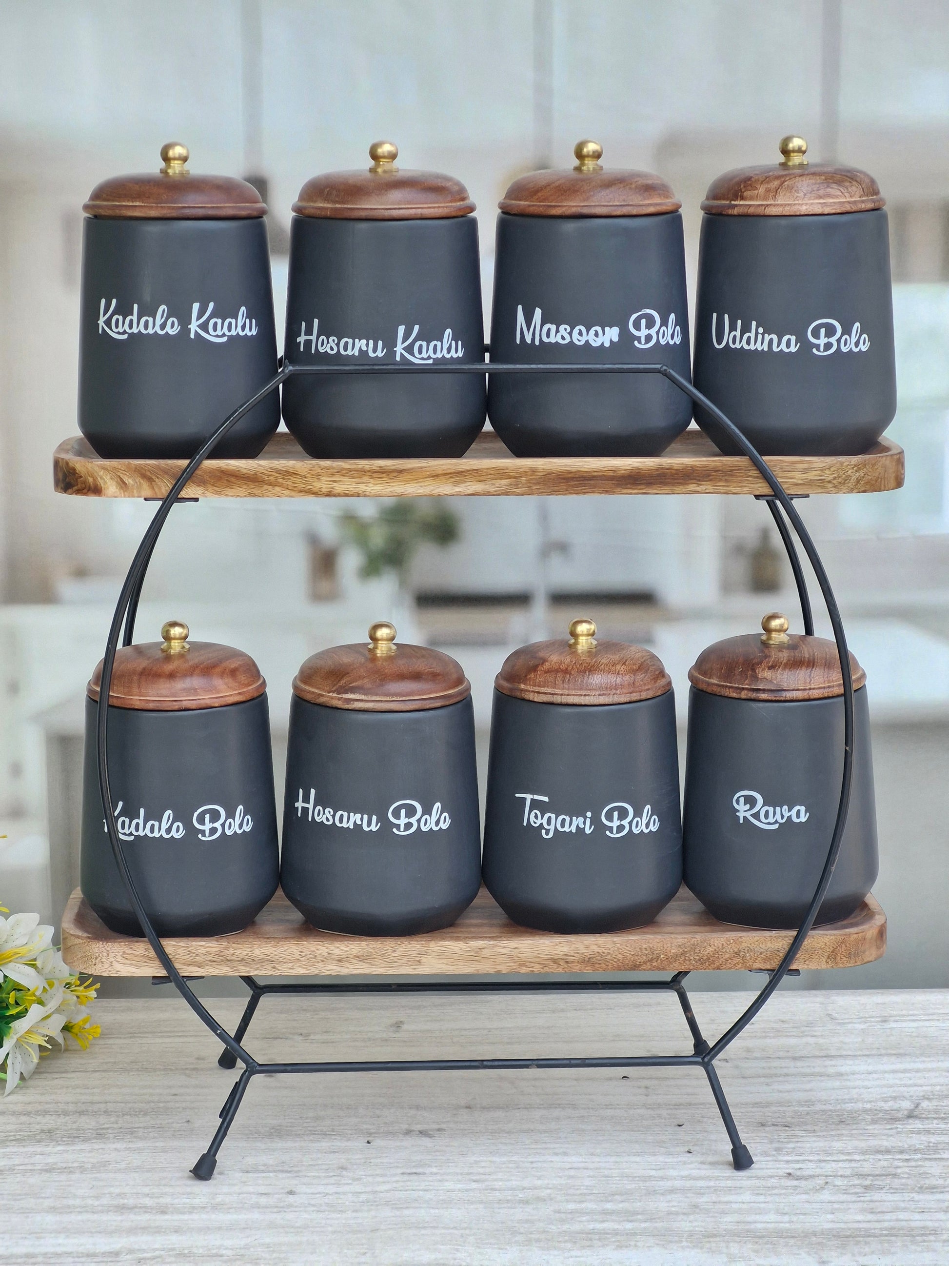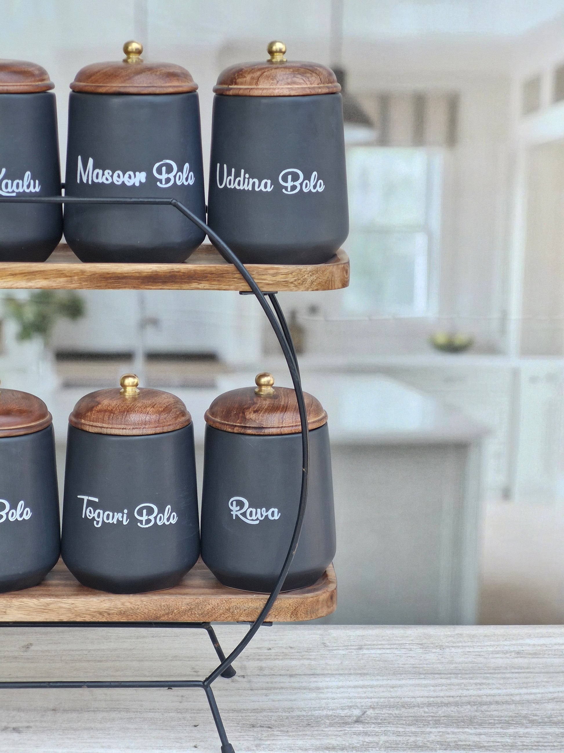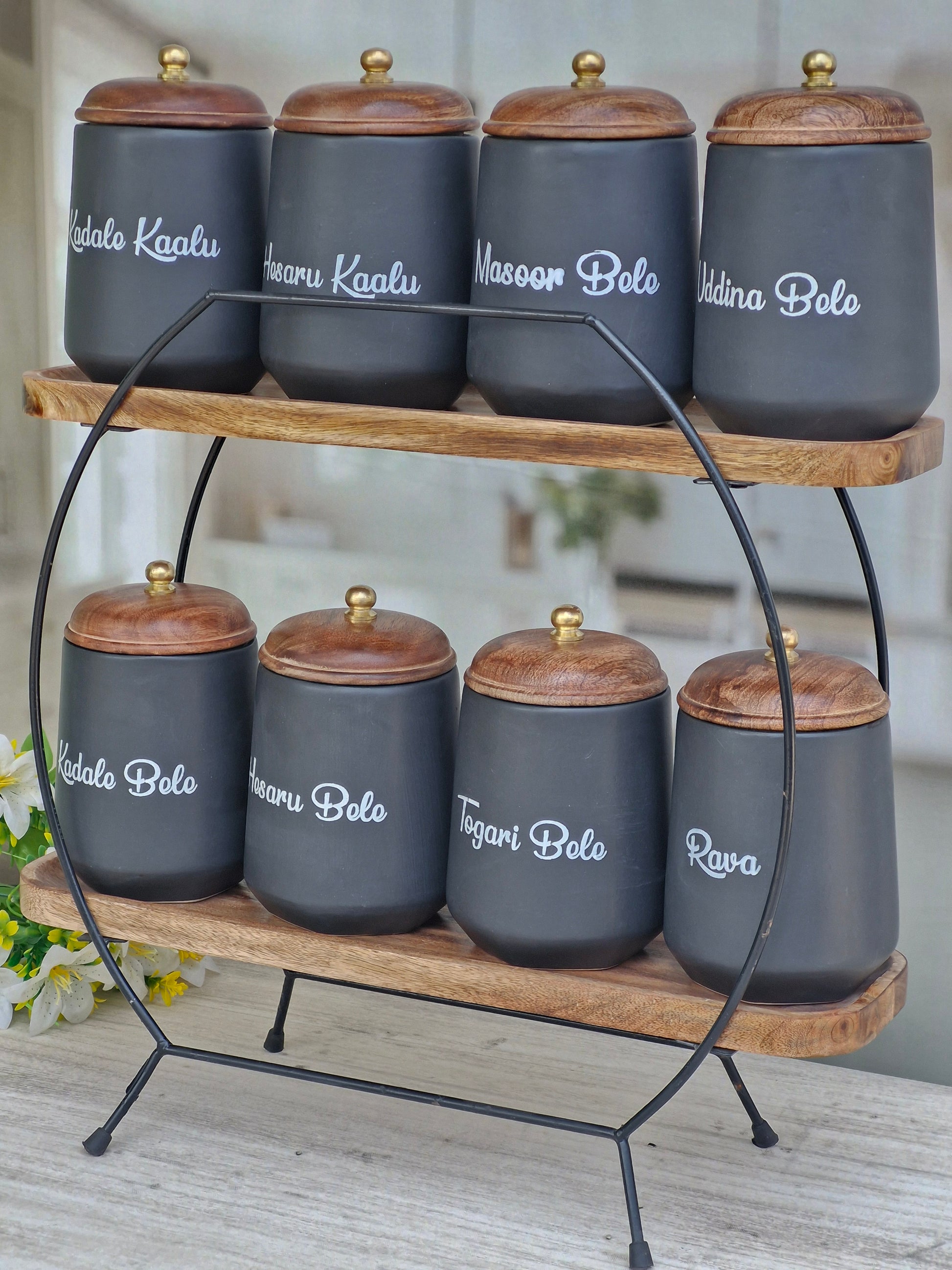 Flavor Spice Family Fusion Dal Delight Airtight Ceramic(1kg) Container with wooden Lid- Kannada