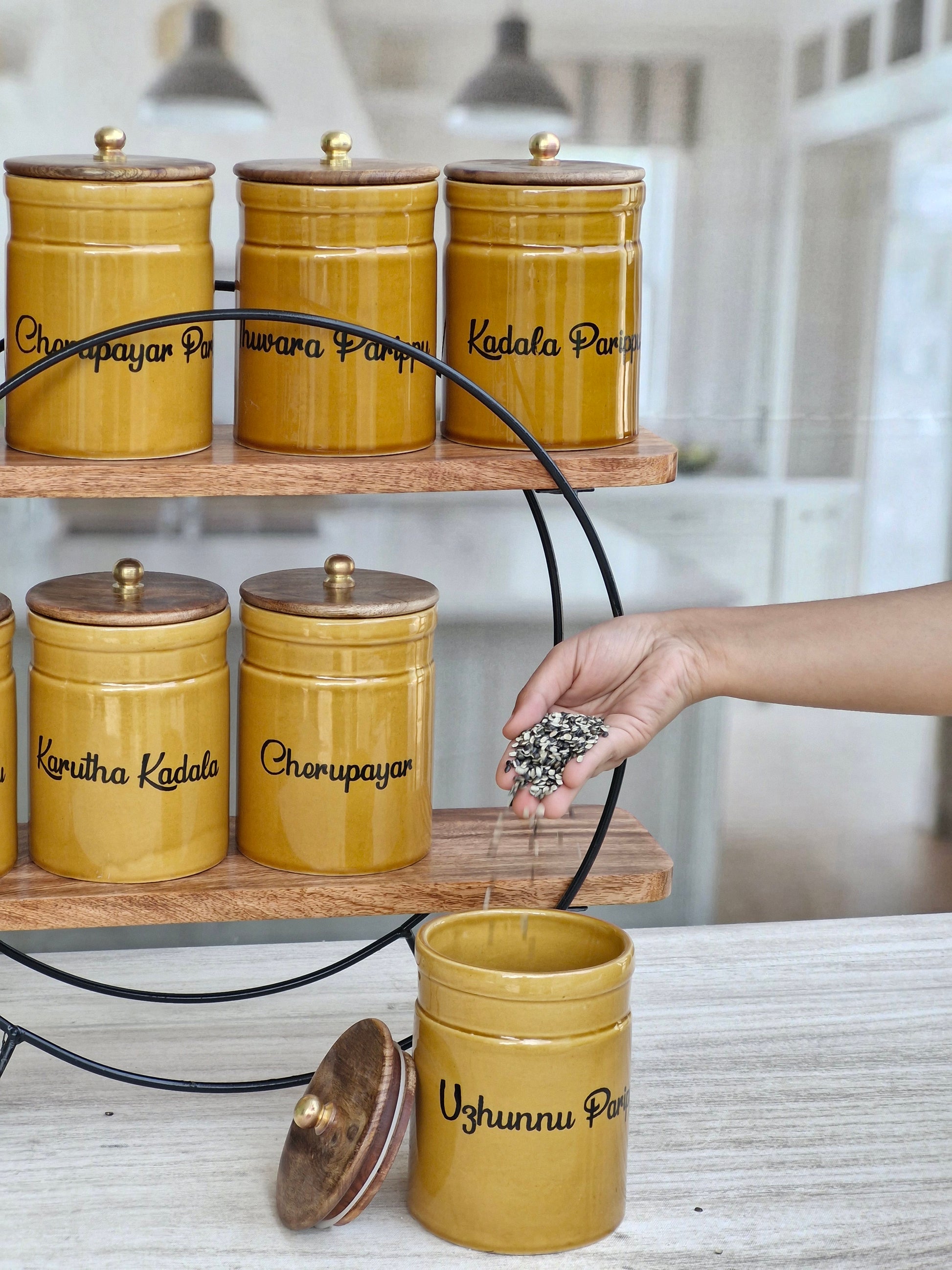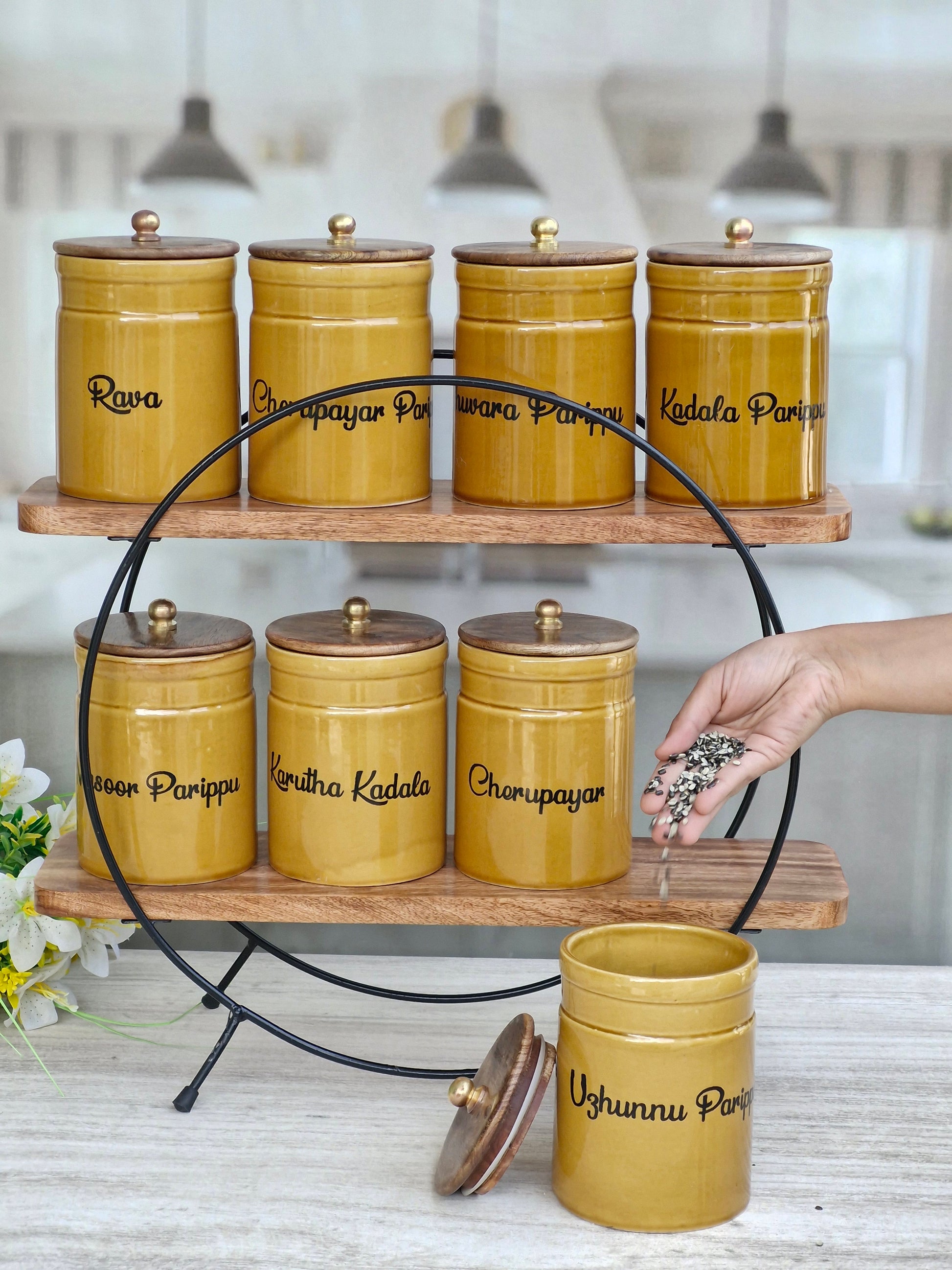 Flavorful Kitchen Companions Dal Airtight Ceramic Container Ring Pipe Jar - Malayalam