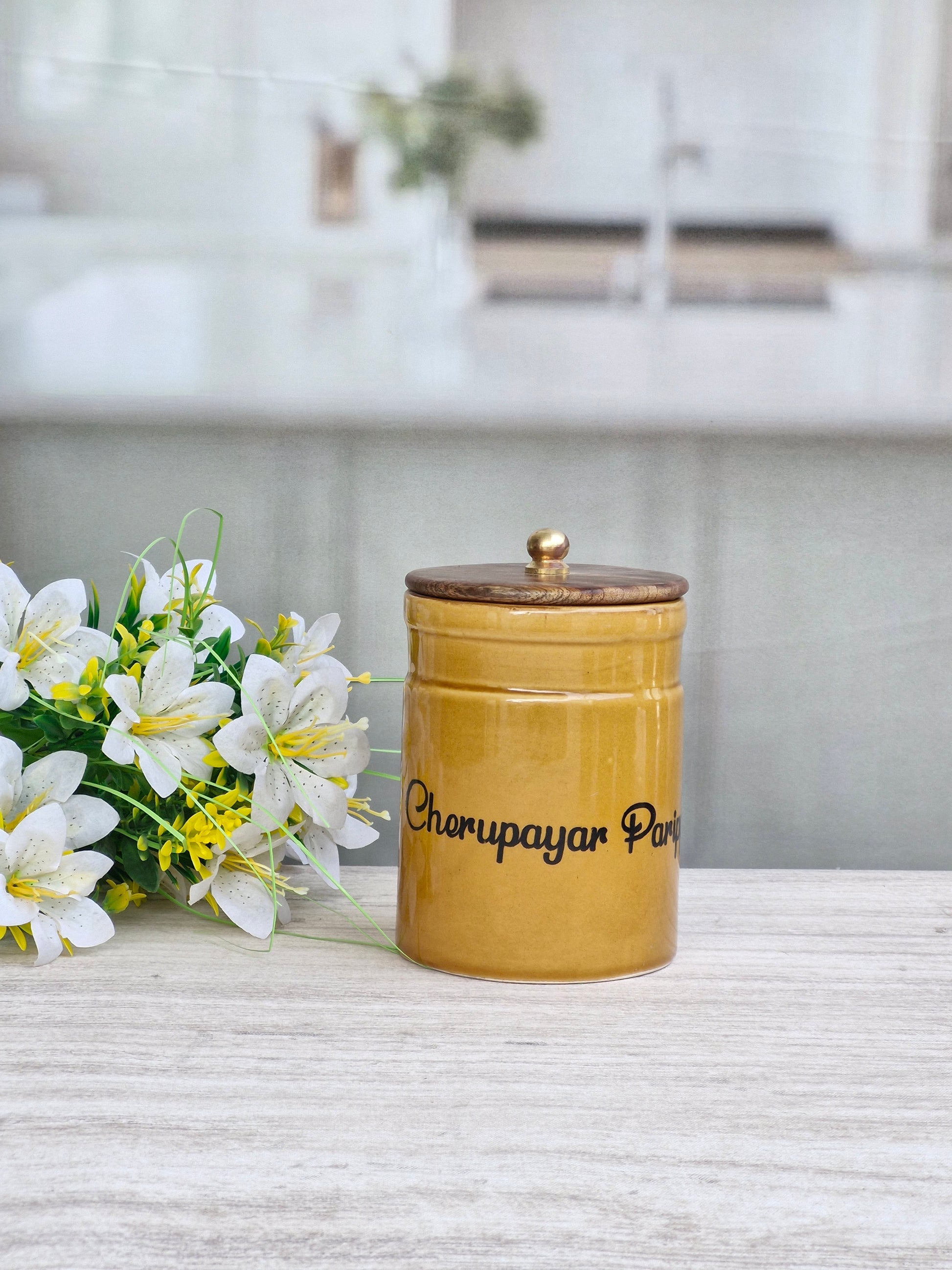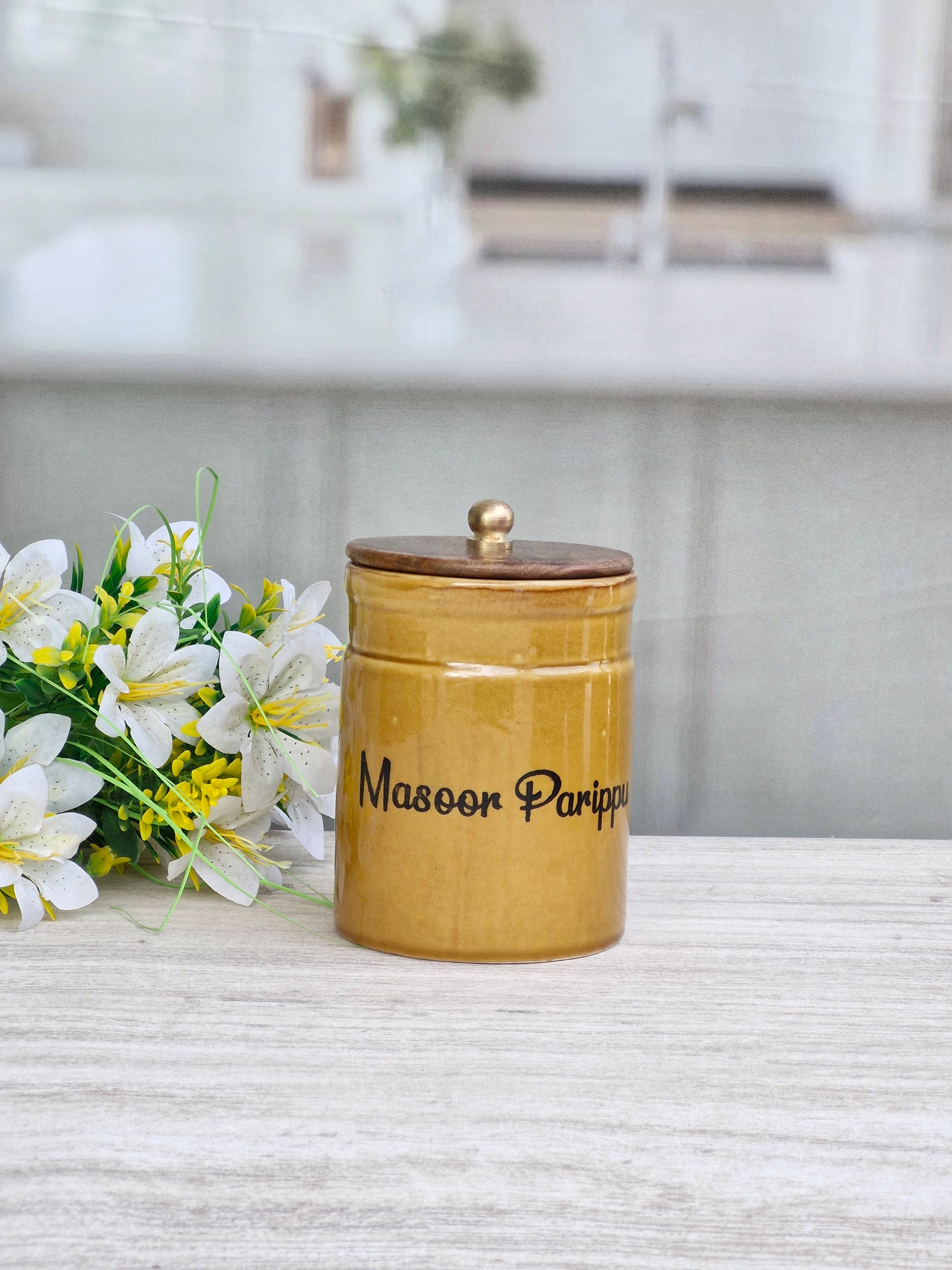 Flavorful Kitchen Companions Dal Airtight Ceramic Container Ring Pipe Jar  - Malayalam