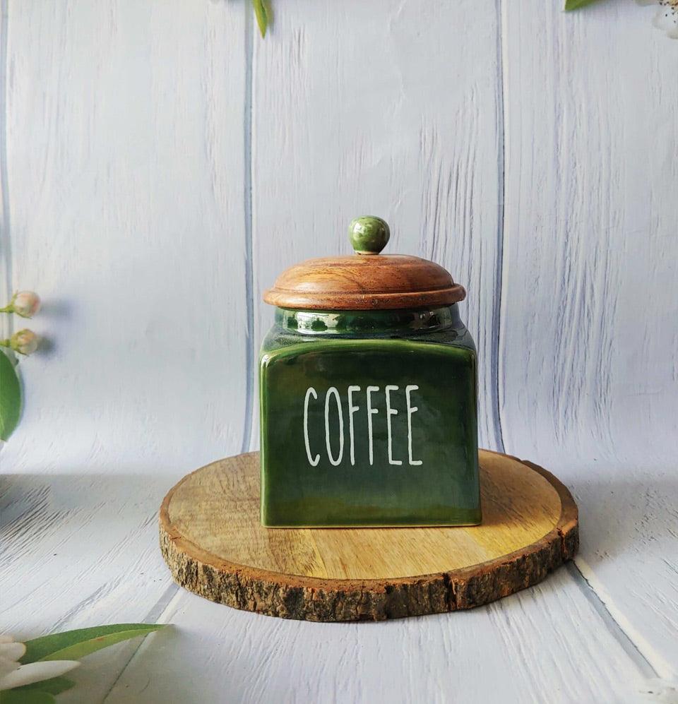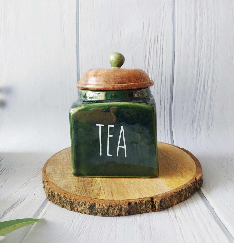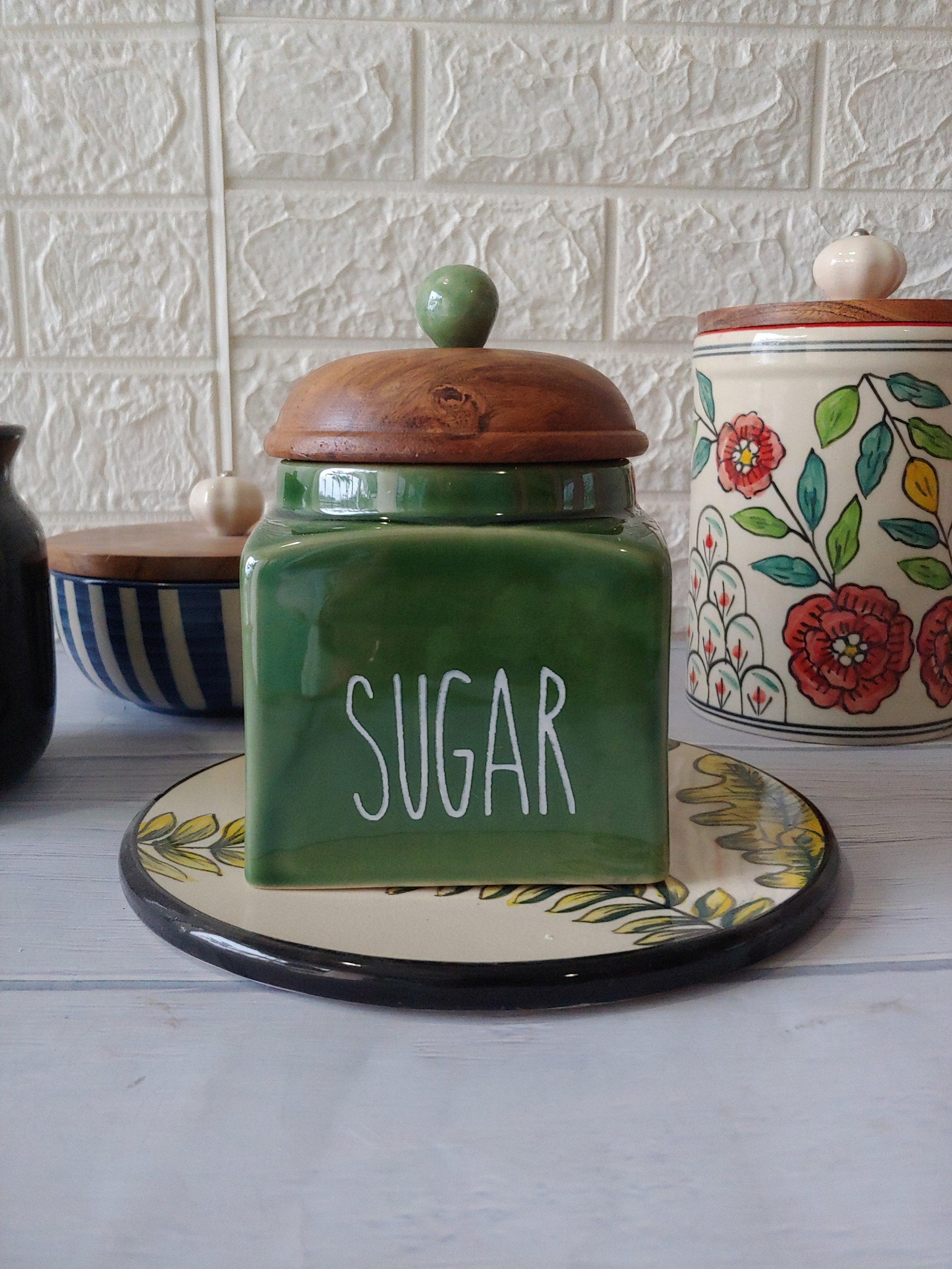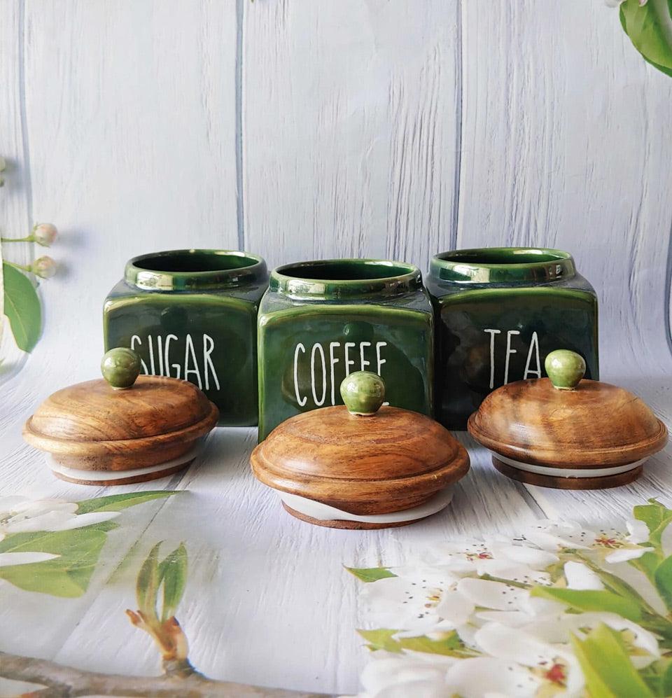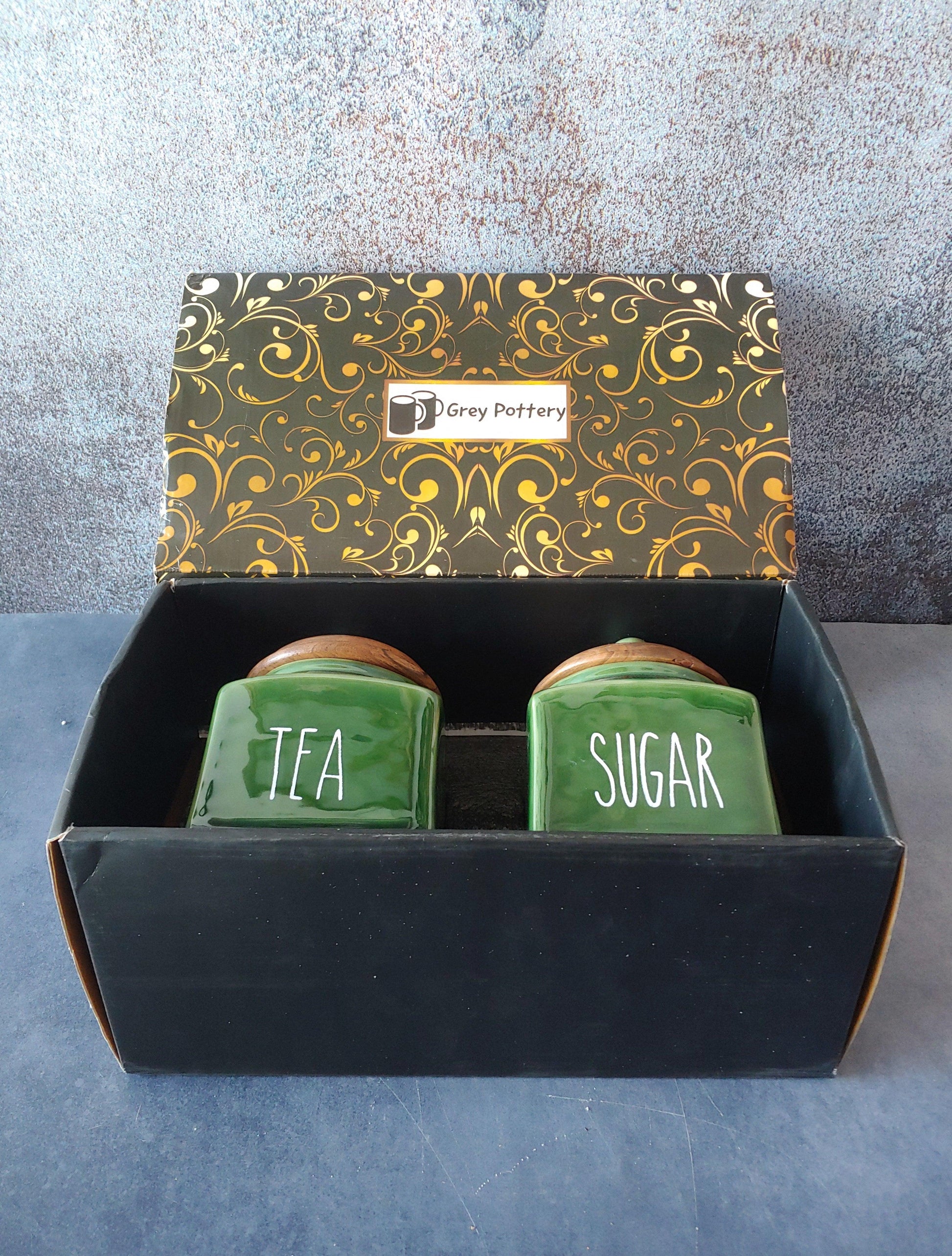 Green Square Solid Ceremic Tea Coffee Sugar Canisters 500ml