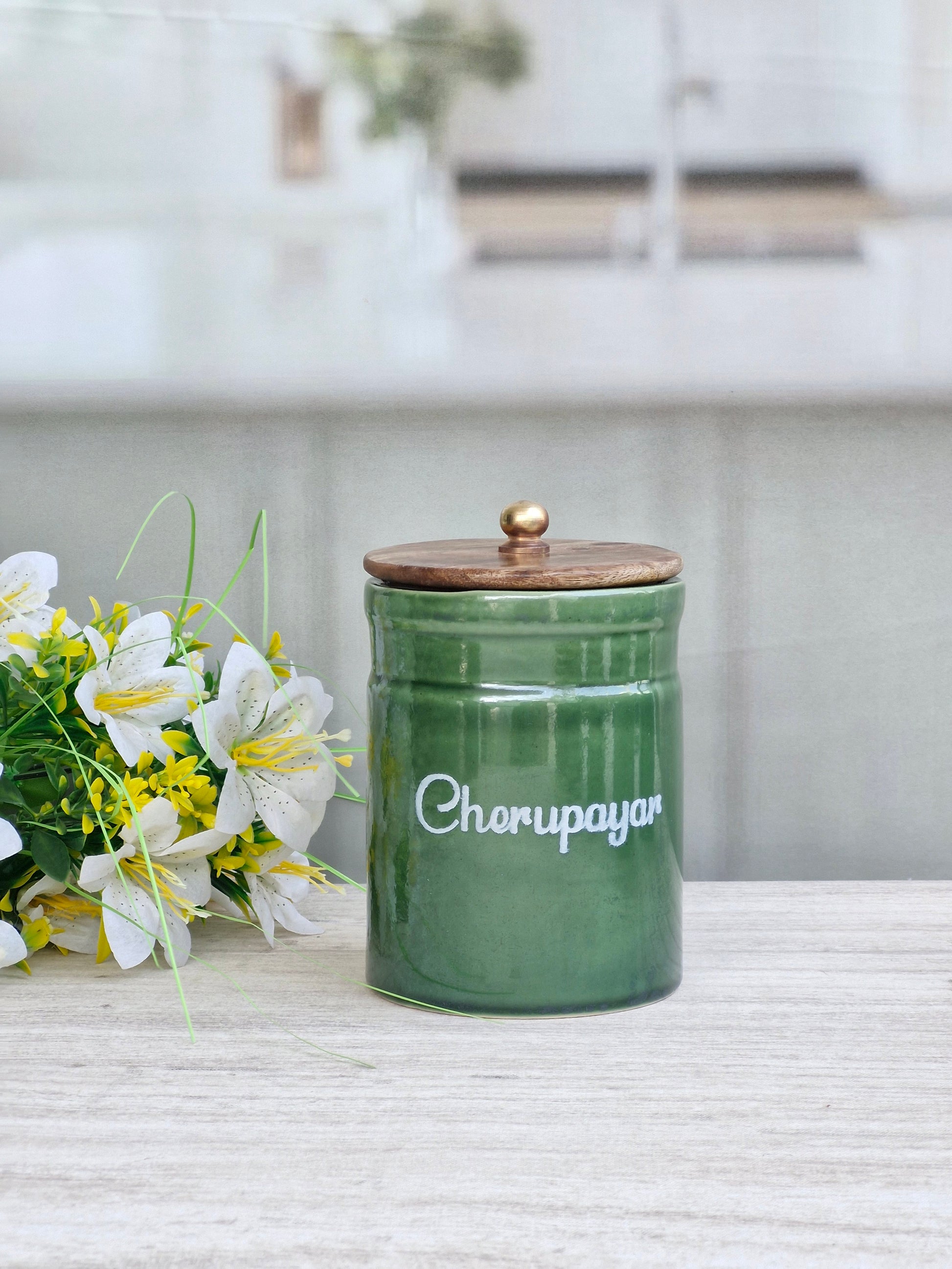 The Evergreen Pantry Dal & Pulse Airtight Ceramic Container Ring Pipe Jar - Malayalam