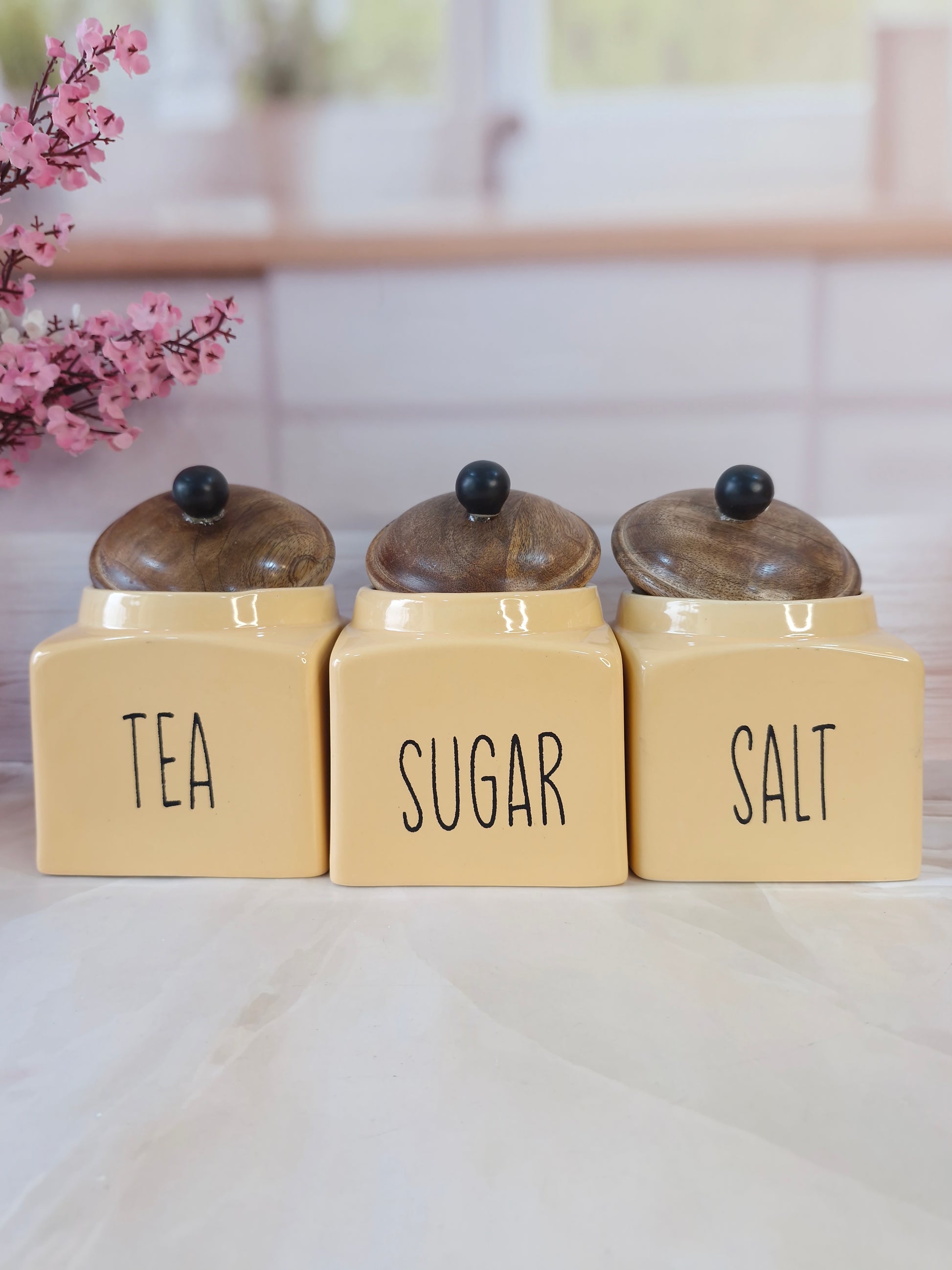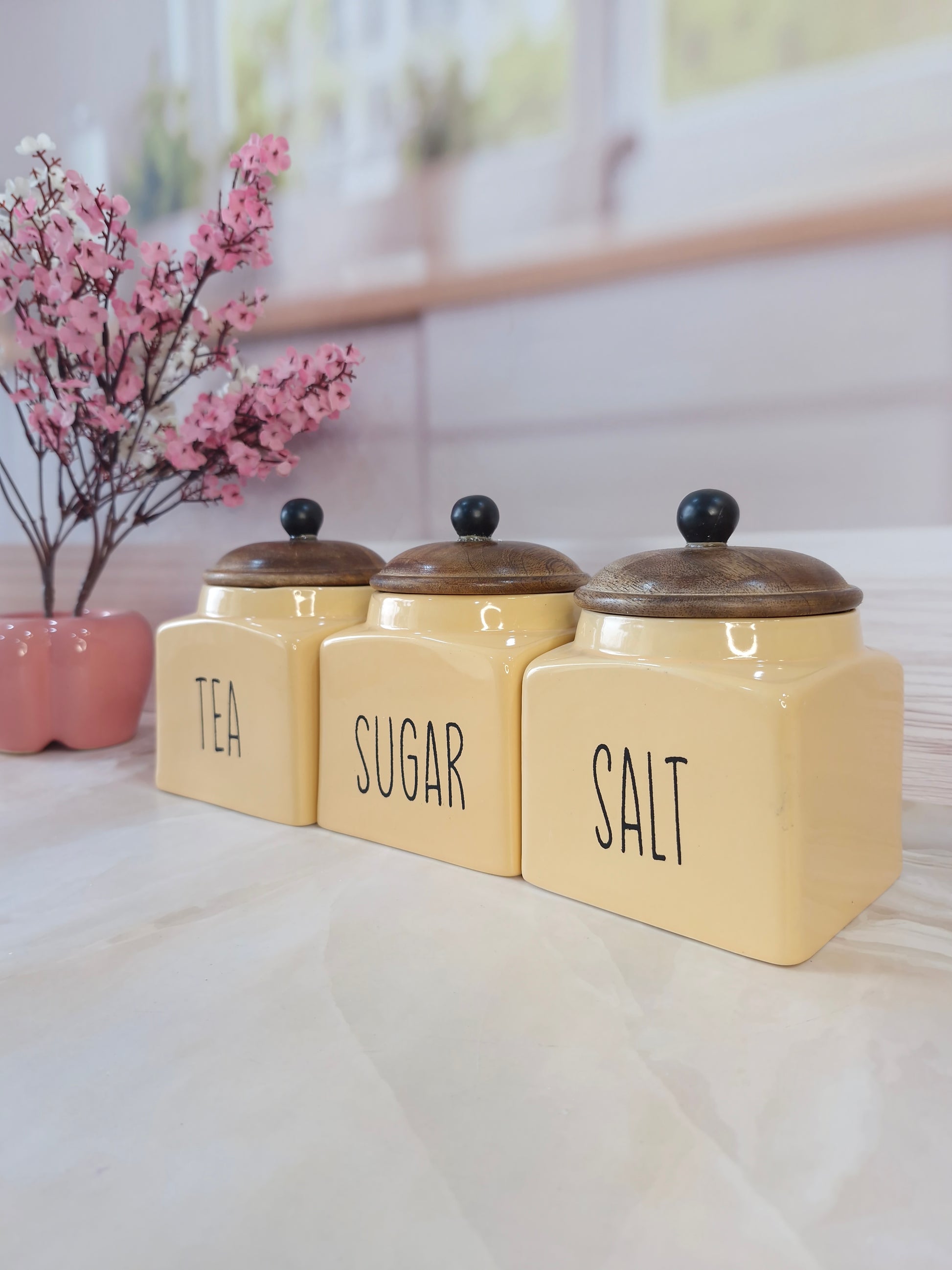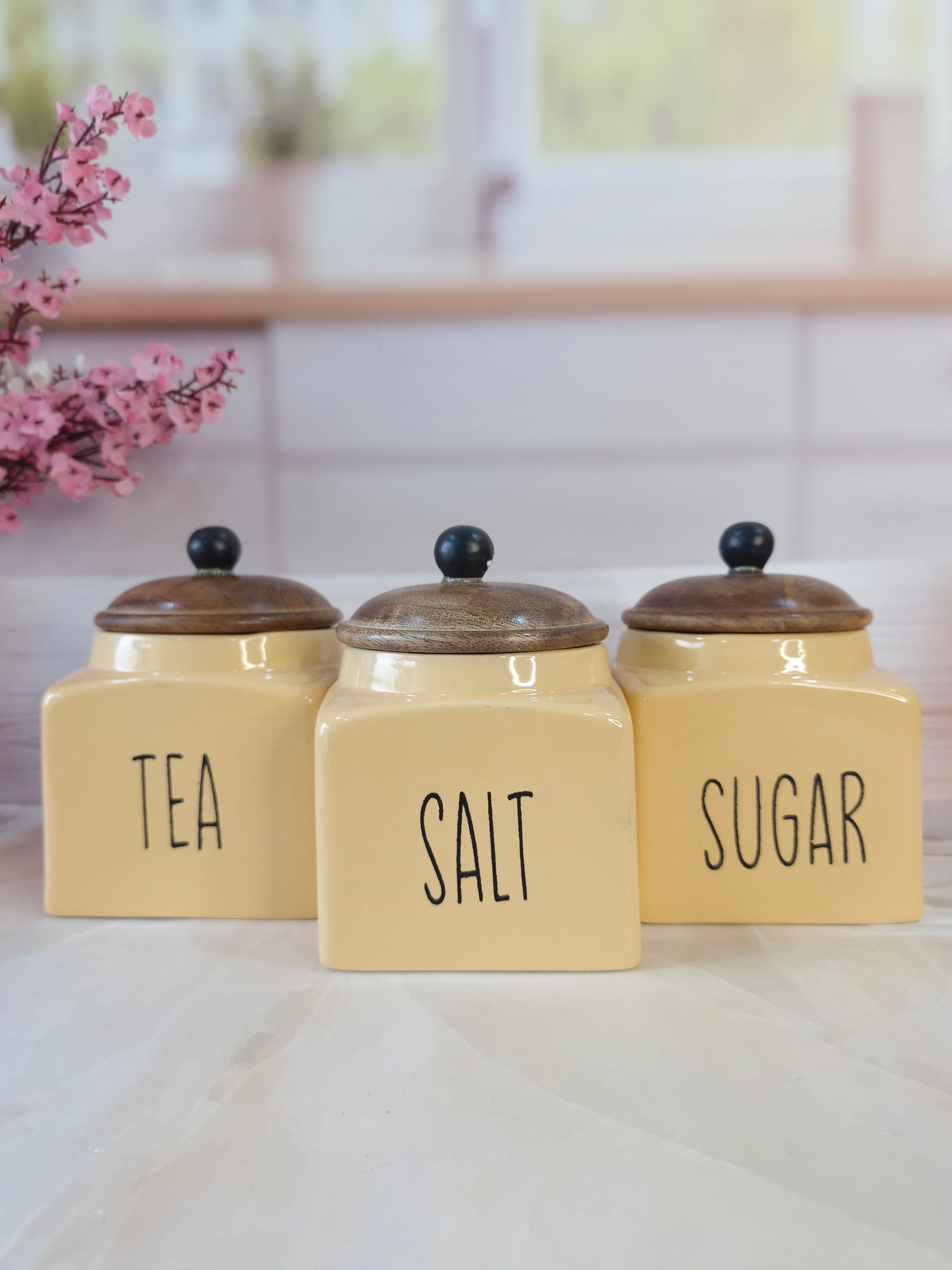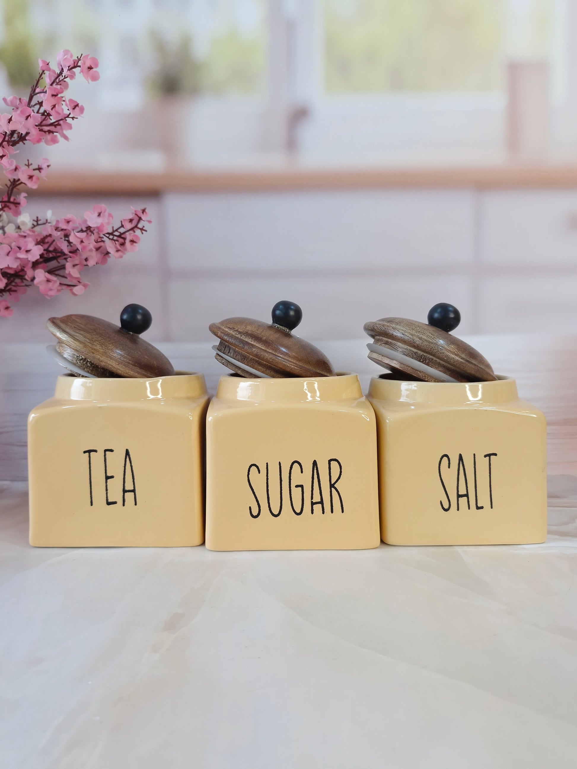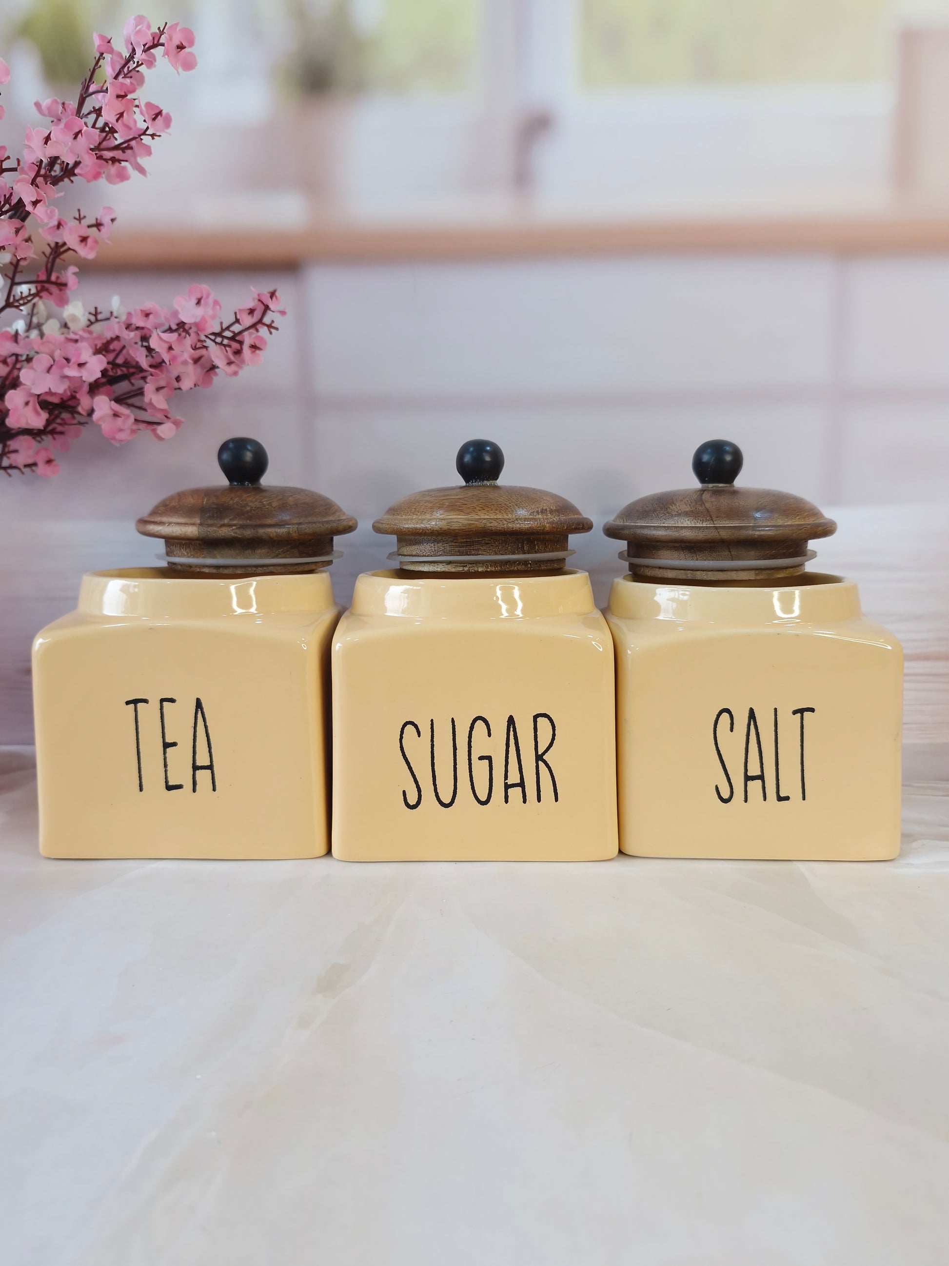 The Family Favorite Tea ,Sugar, Salt, Solid Ceramic Square Airtight Canisters 500ml