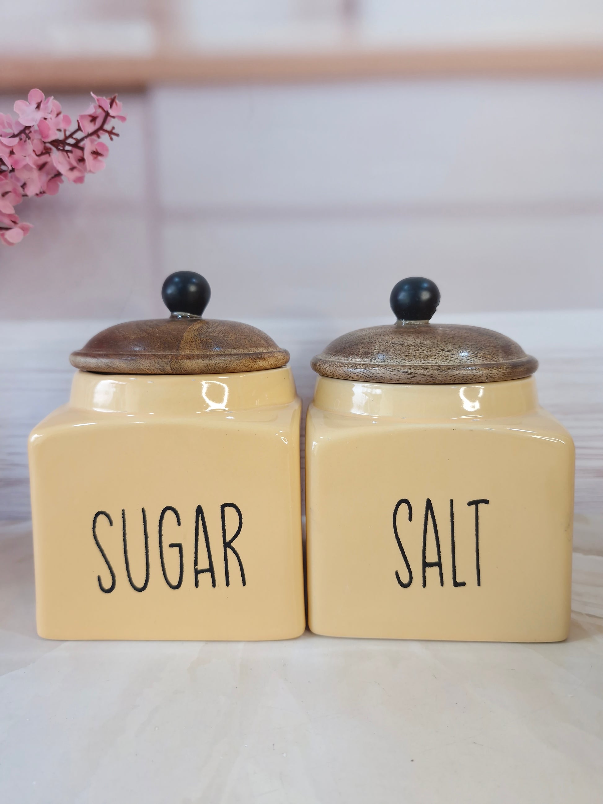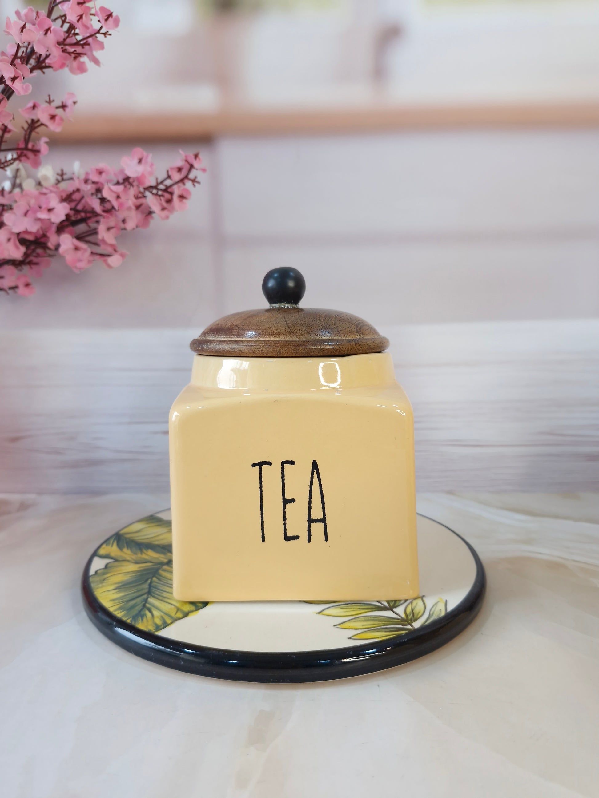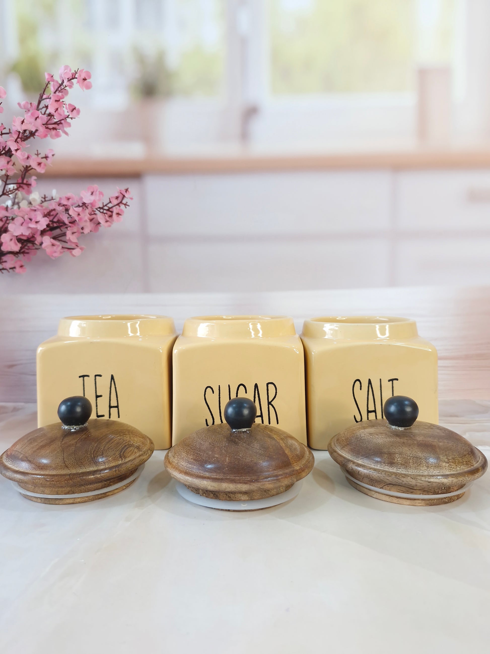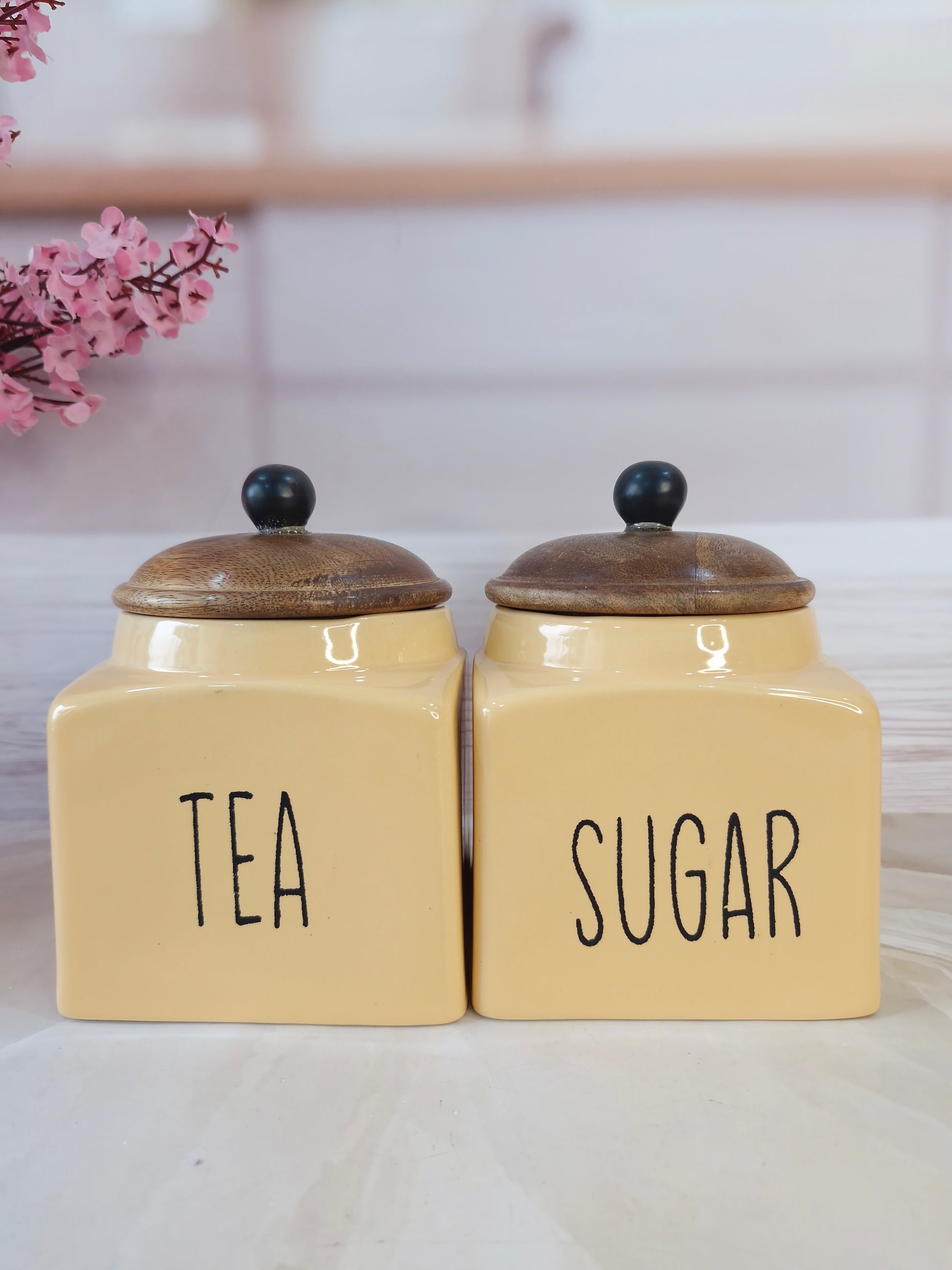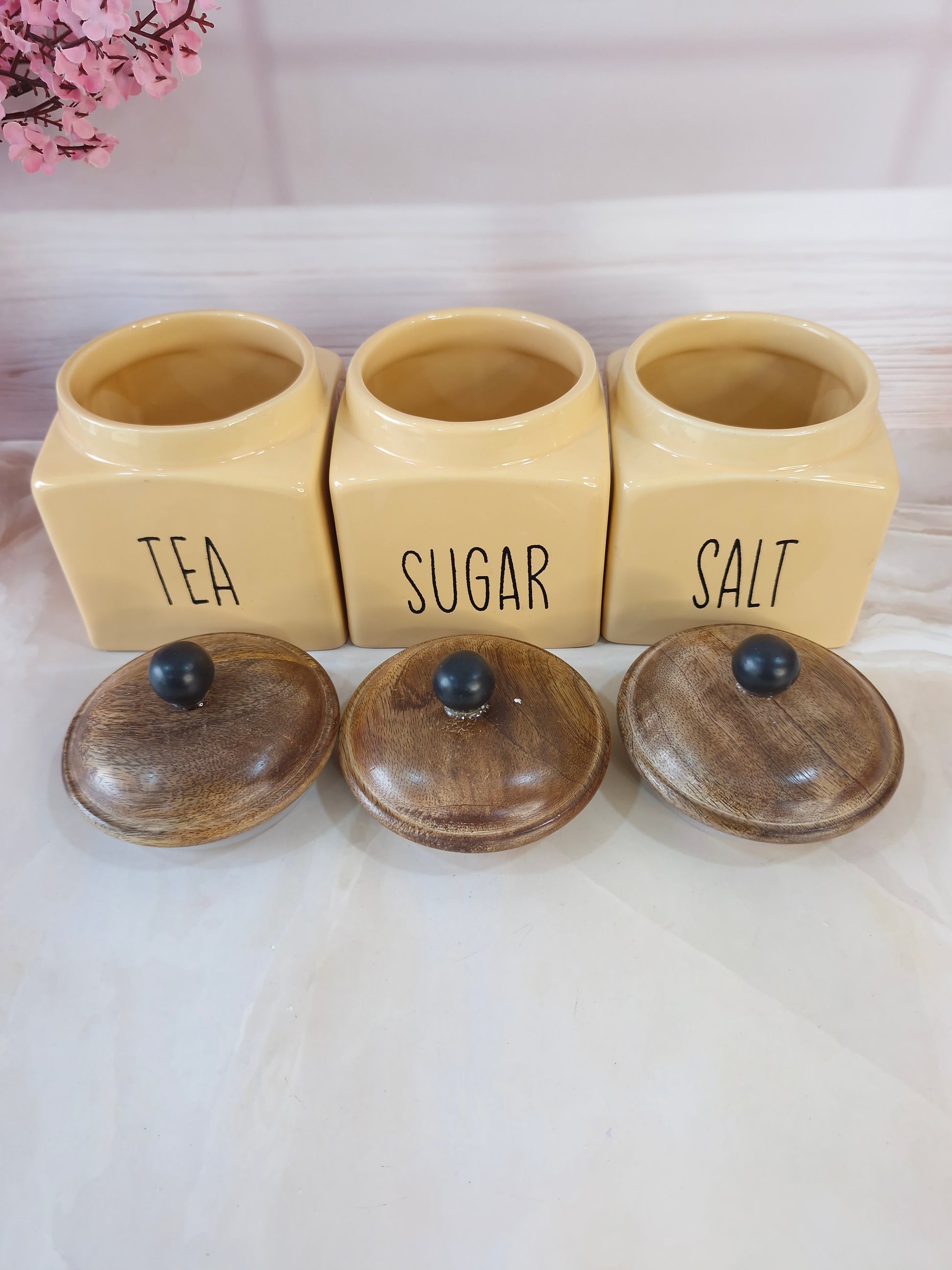 The Family Favorite Tea ,Sugar, Salt, Solid Ceramic Square Airtight Canisters 500ml